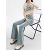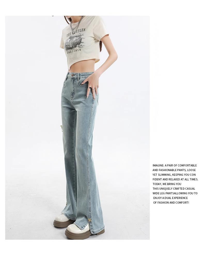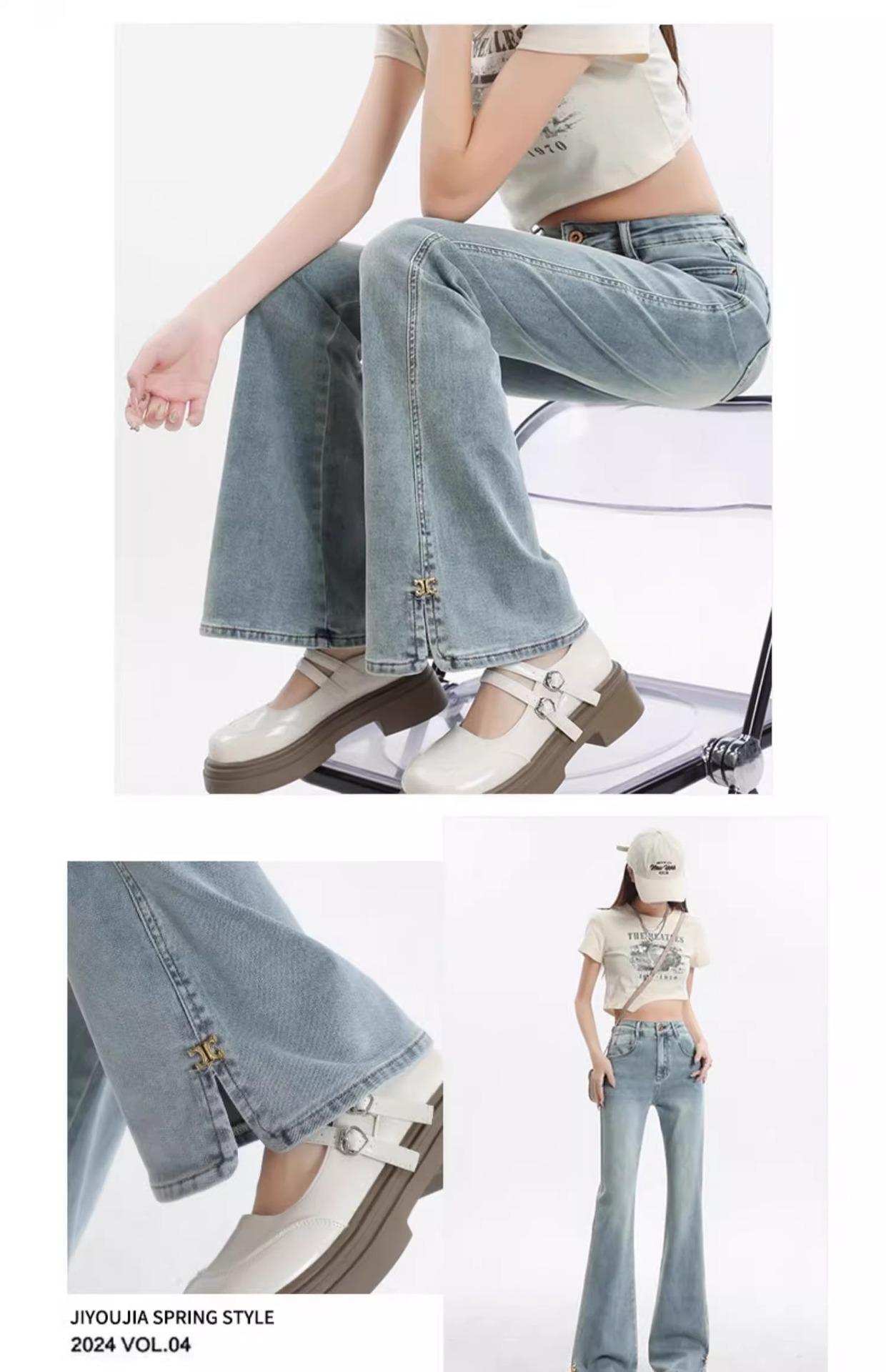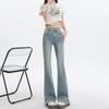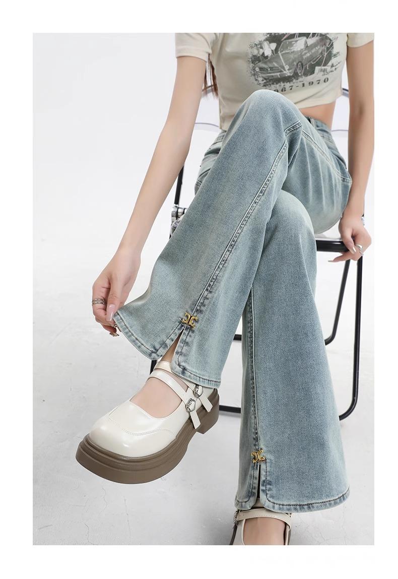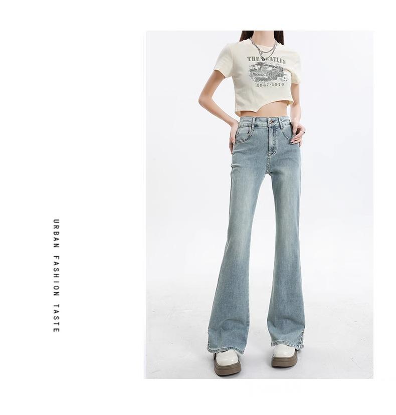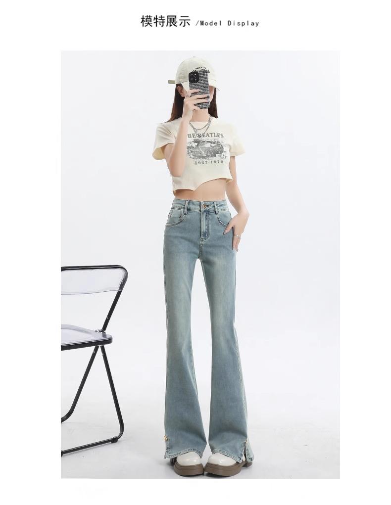 Jeans de Micro-acampanados de Cintura Alta de Color Claro para Mujer, Modernos, Combinables, Nuevos, Retro, Elásticos, Skinny, con Pequeña Abertura, Pantalones de Herradura