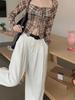 Jeans blancos vintage plisados de cintura alta y pierna ancha para mujer, ropa de primavera y verano, pantalones adelgazantes para cuerpo en forma de pera