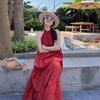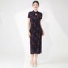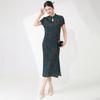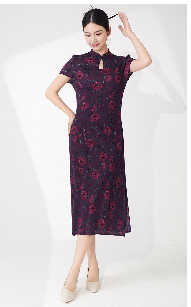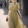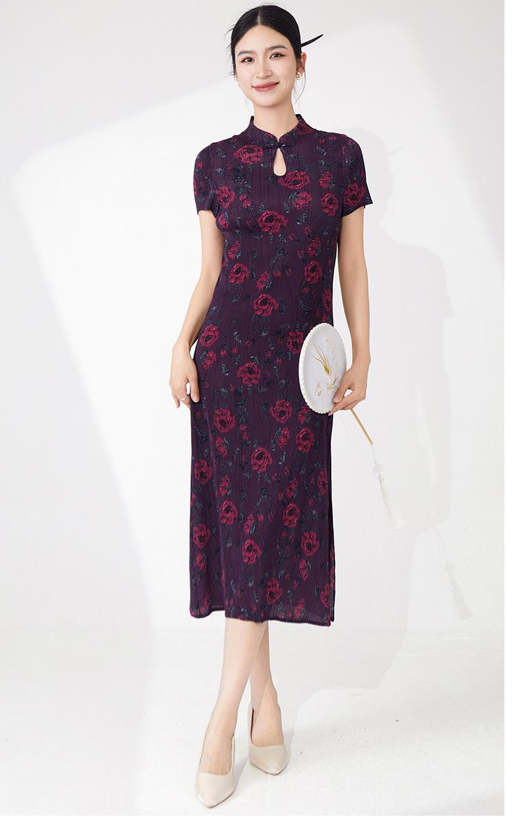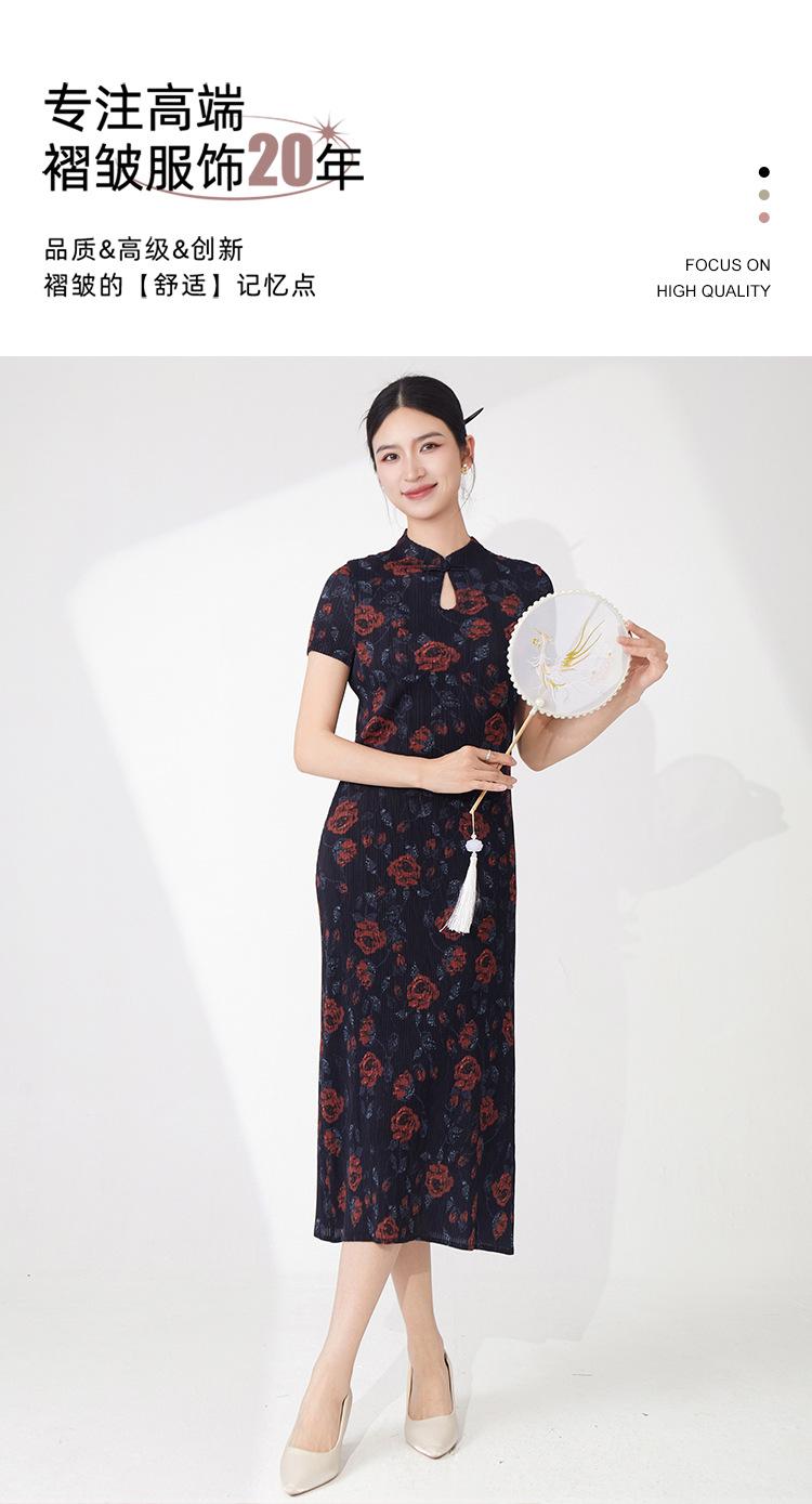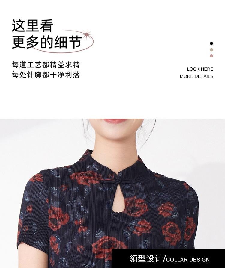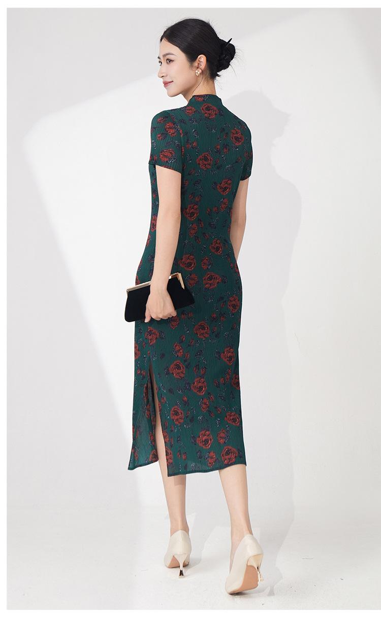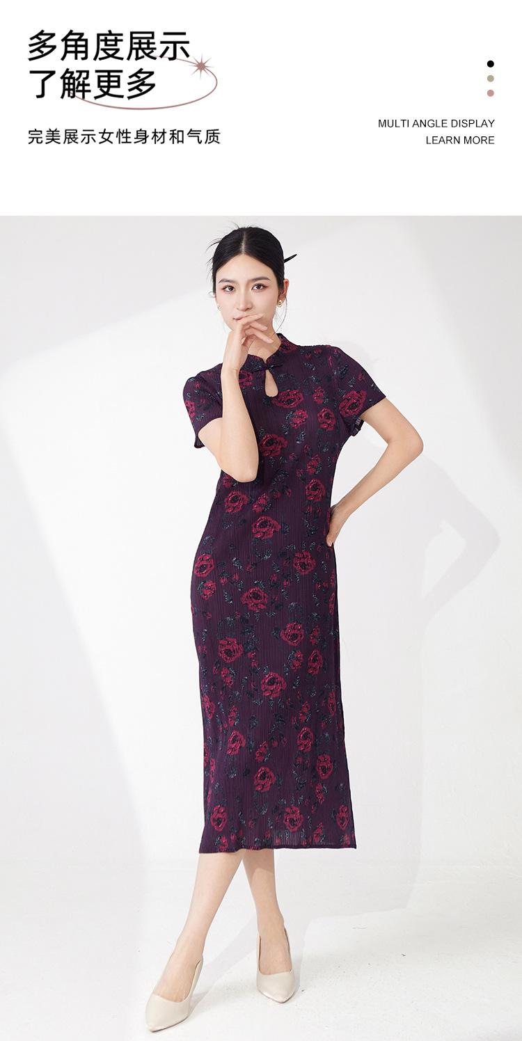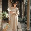 Vestido de mujer de estilo nacional chino nuevo, estilo de alta gama, abertura lateral, cuello vertical con hebilla, largo medio, falda plisada retro para verano