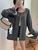Selección Estricta Cárdigan Holgado de Estilo Coreano a Rayas para Mujer Verano Adelgazante de Largo Medio Manga Larga Casual Top Delgado