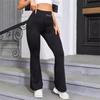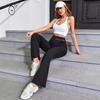 Pantalones Deportivos Europeos y Americanos de Alta Elasticidad Micro-Sudor para Mujer de Cintura Alta Vientre Pierna Ancha Levantamiento de Cadera Adelgazantes Yoga Acampanados Pantalones Deportivos