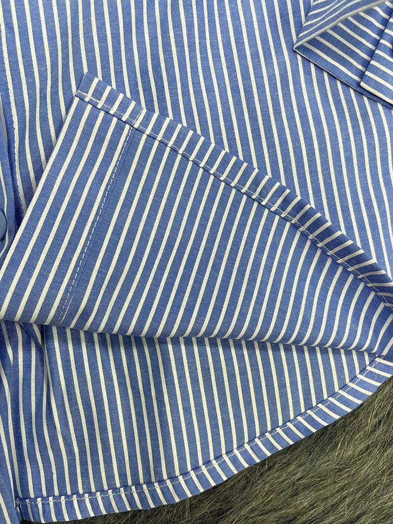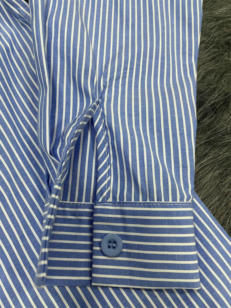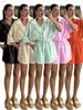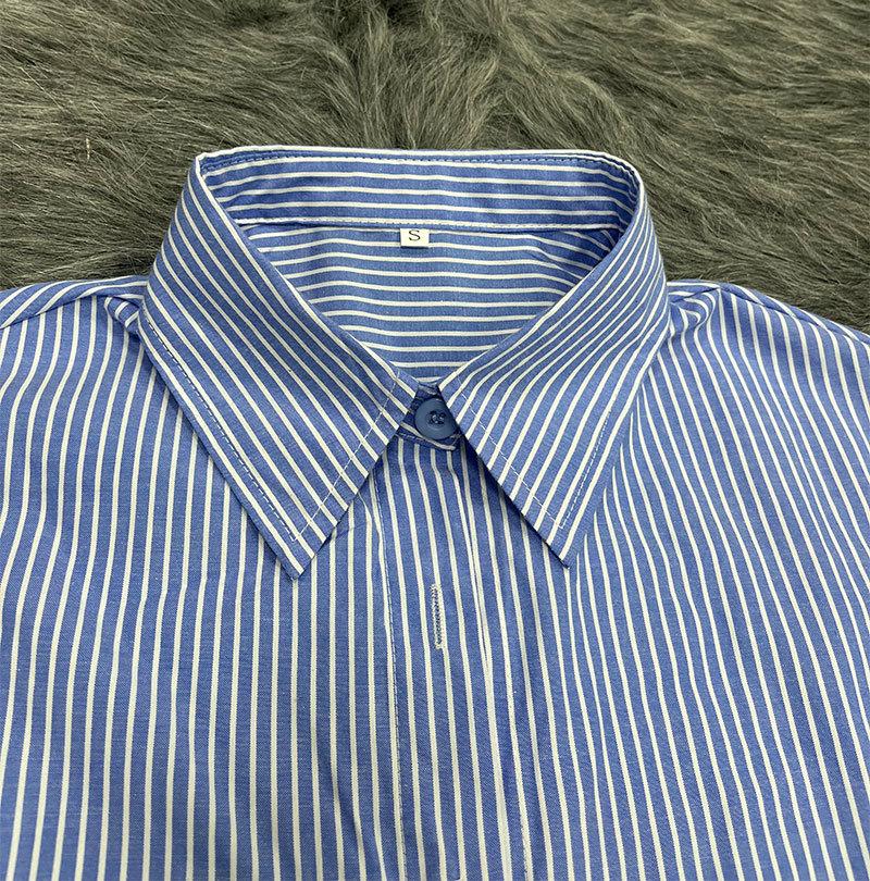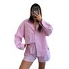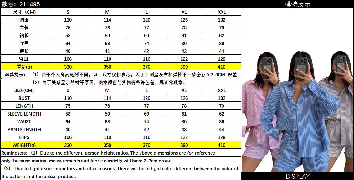 211495 Verano Nuevo Cárdigan Rayado Transfronterizo Europeo y Americano Camisa de Manga Larga para Mujer Traje Shorts de Moda Conjunto de Dos Piezas