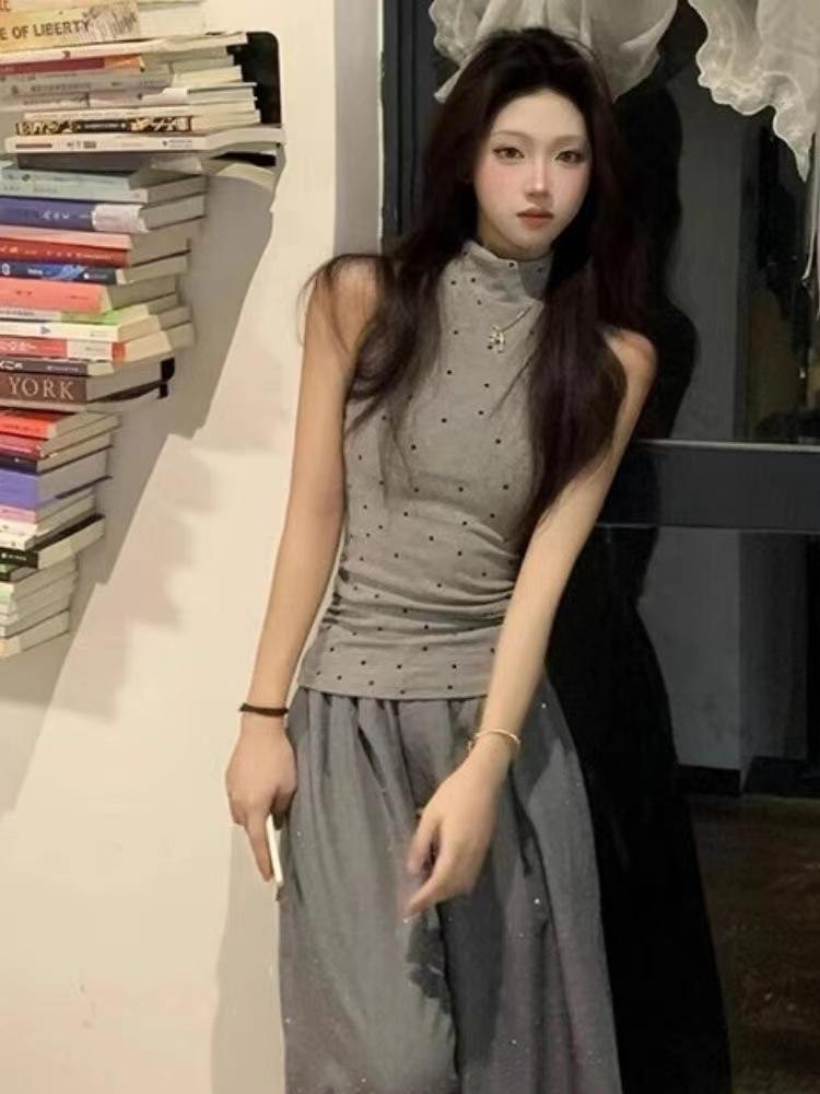Verano Elegante Chic Diseño de Lunares Chaleco sin Mangas Femenino Sexy Sexy Look Adelgazante Top Ins