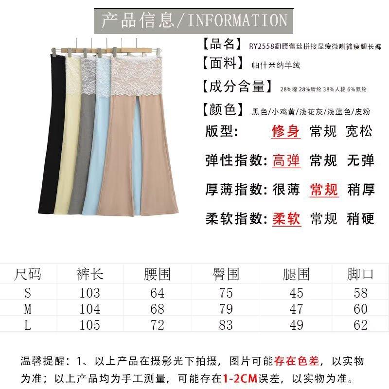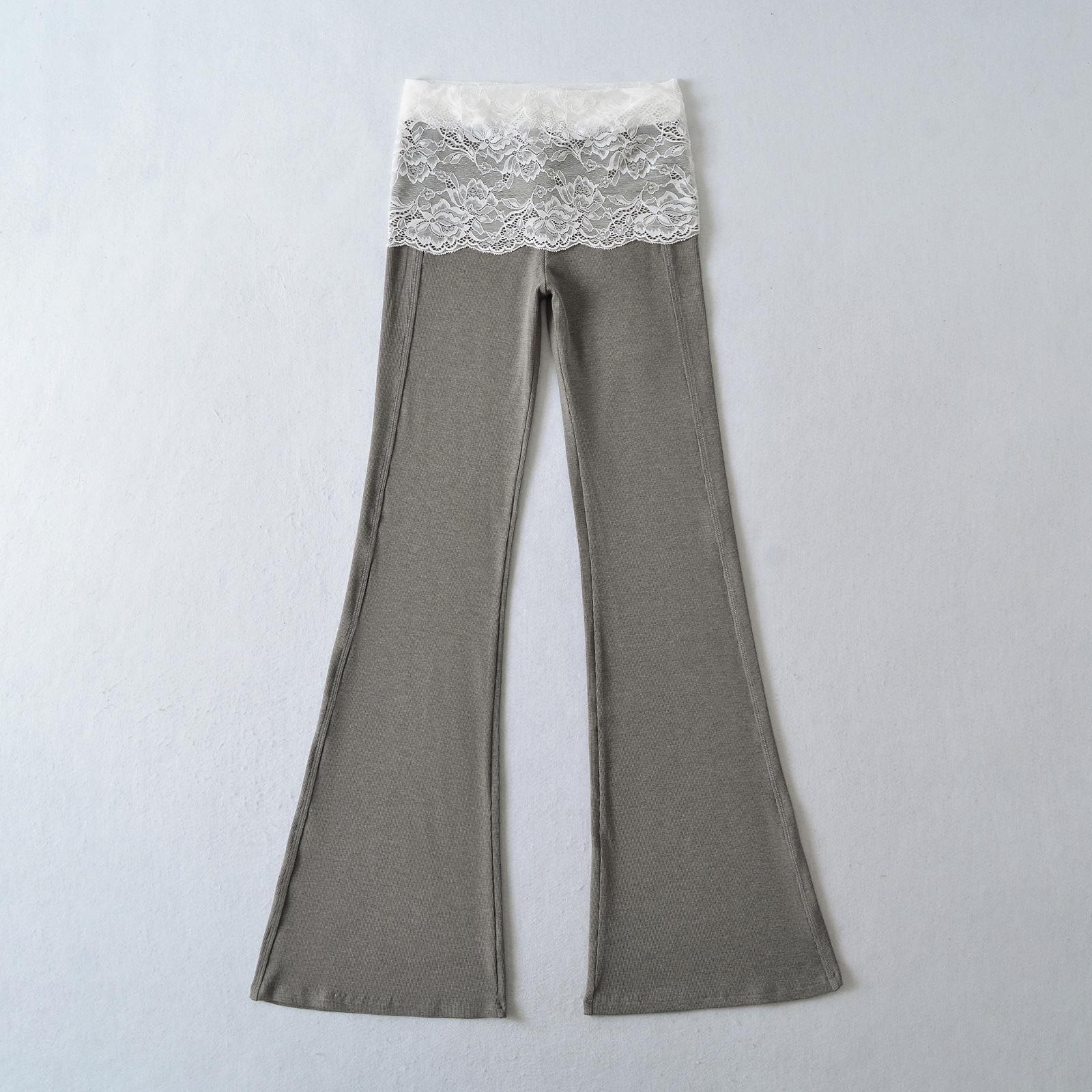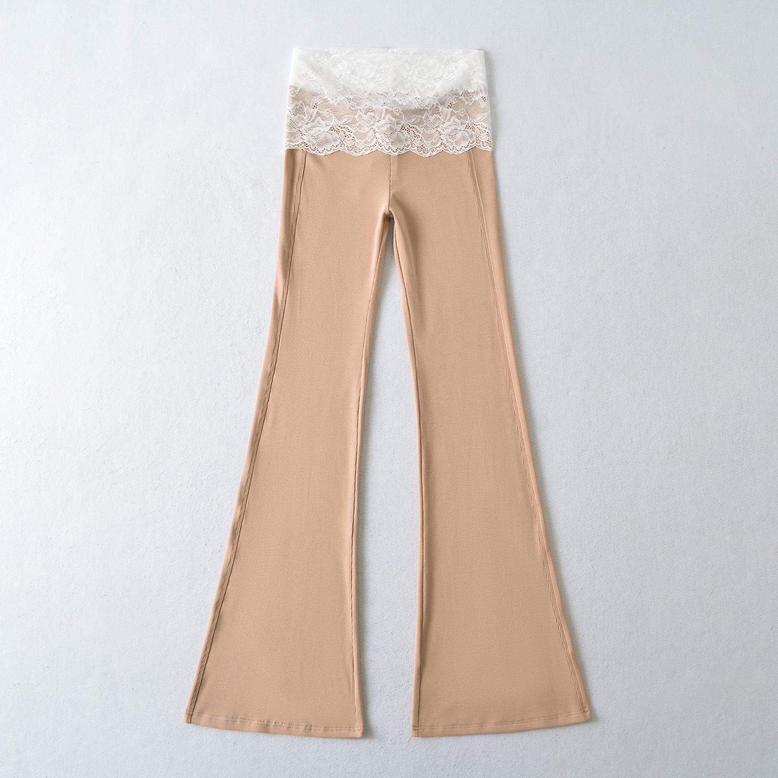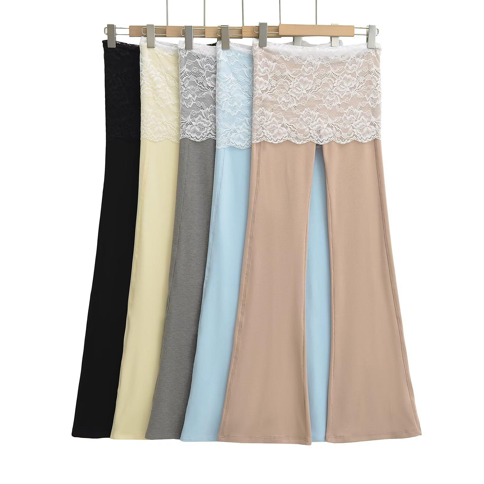 2558-2025 Nuevos Pantalones Acampanados de Encaje para Mujer Estilo Europeo y Americano Versátiles Pantalones Largos Pantalones Sexy Casuales