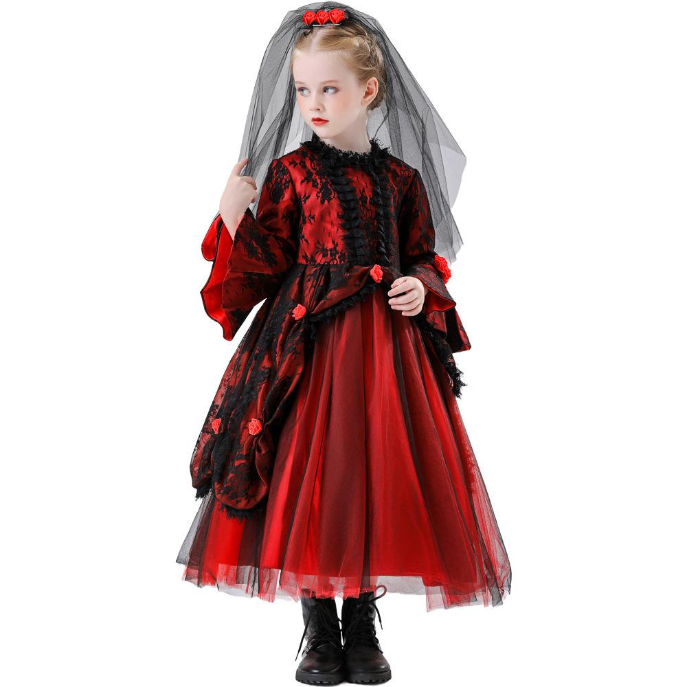 Disfraz de Vampiro de Malla para Niños de Halloween Vestido de Princesa para Niñas Disfraz de Capa de Vampiro de Terror