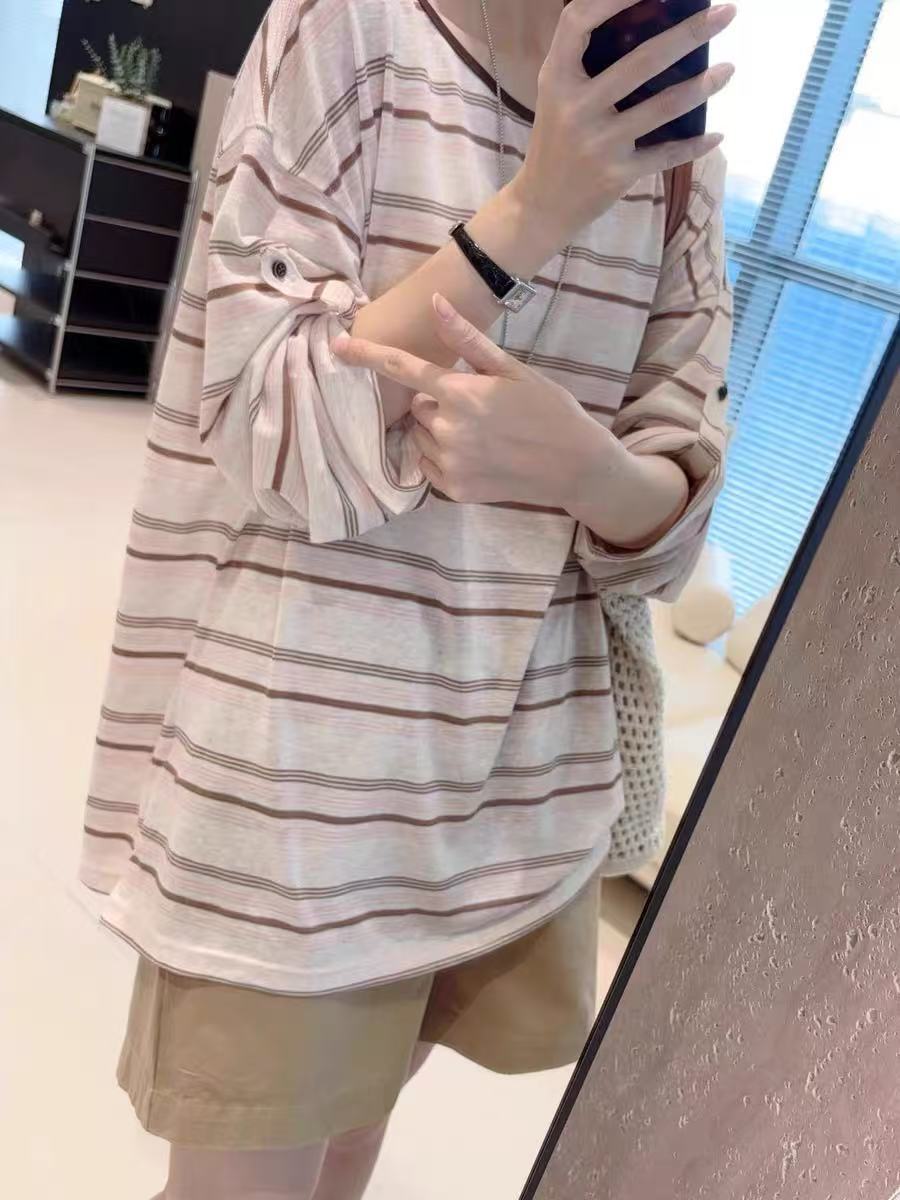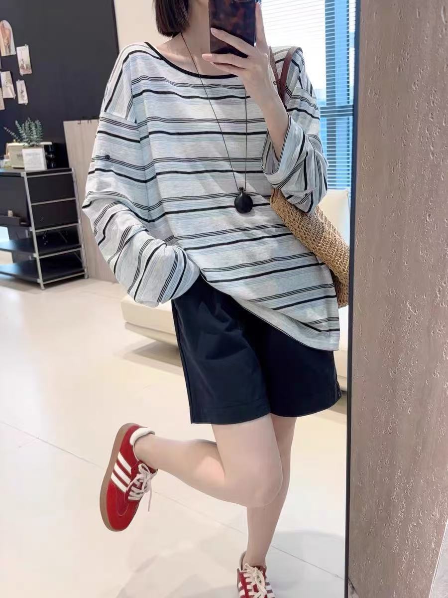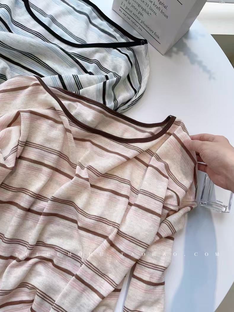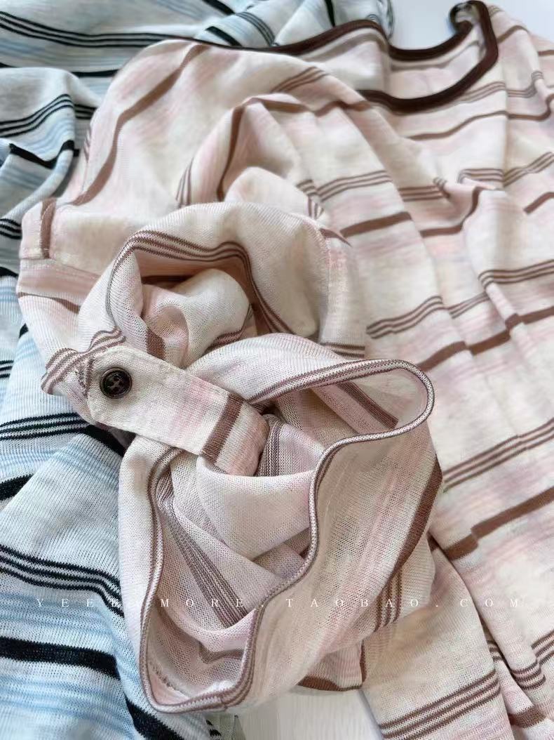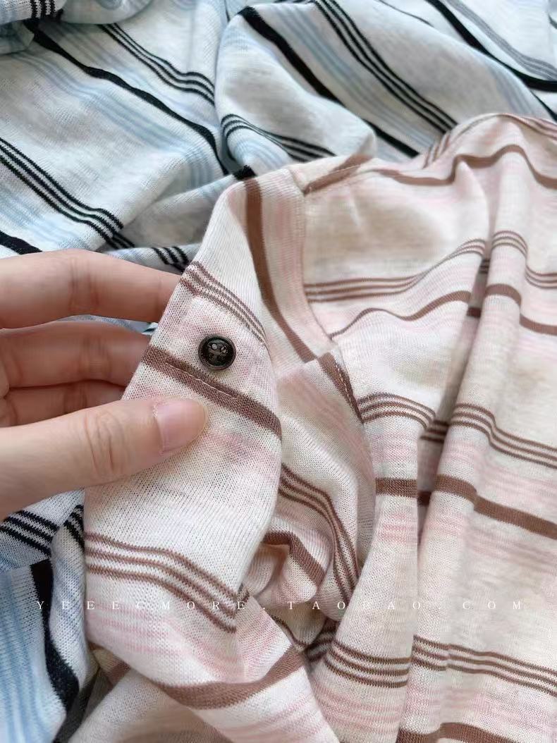 Blusa Protector Solar Ligera de Oxígeno/Delgada Suave Suelta a Rayas Tejida de Manga Larga Z0509S