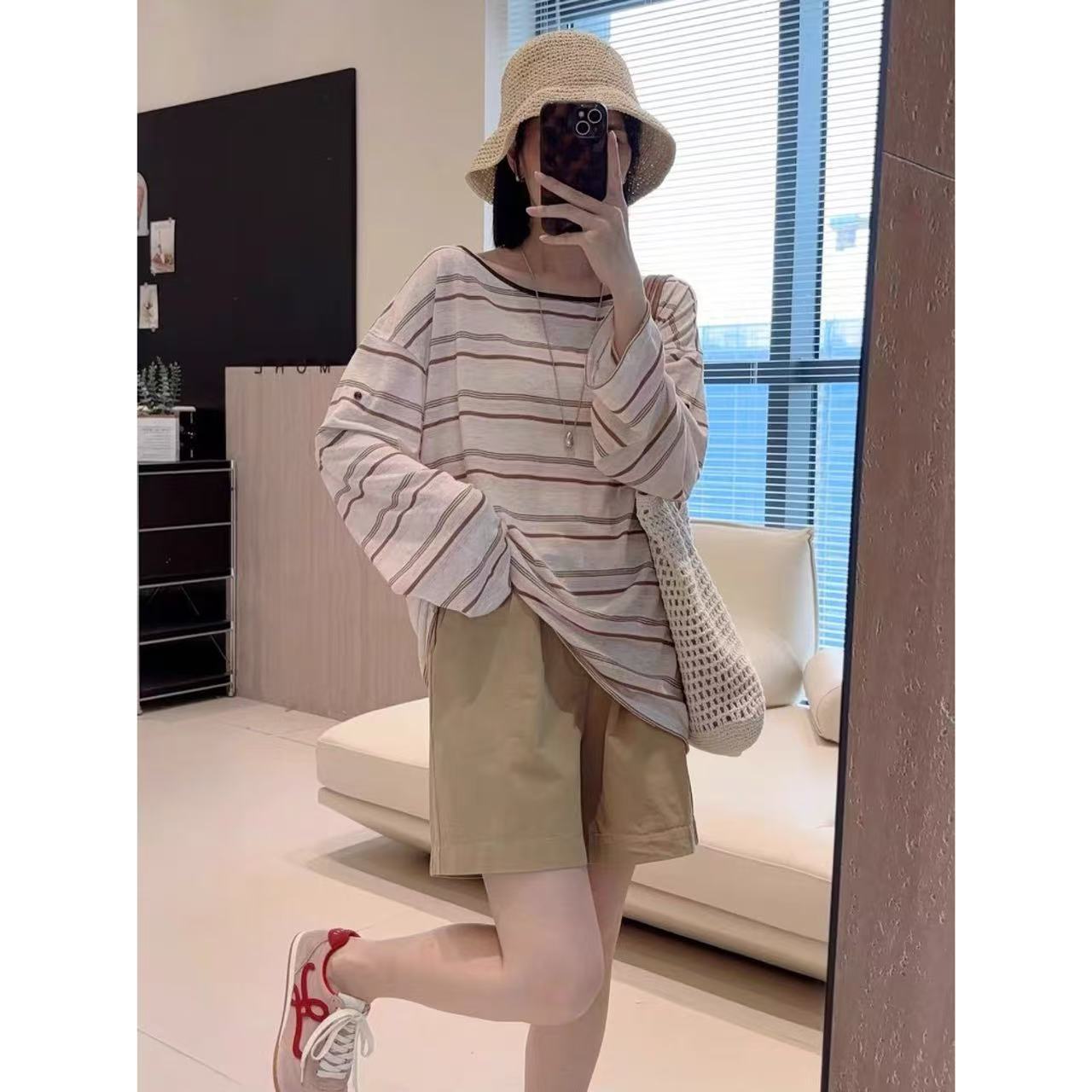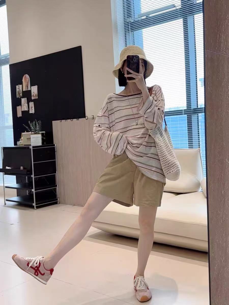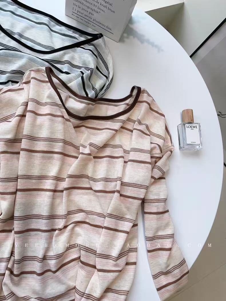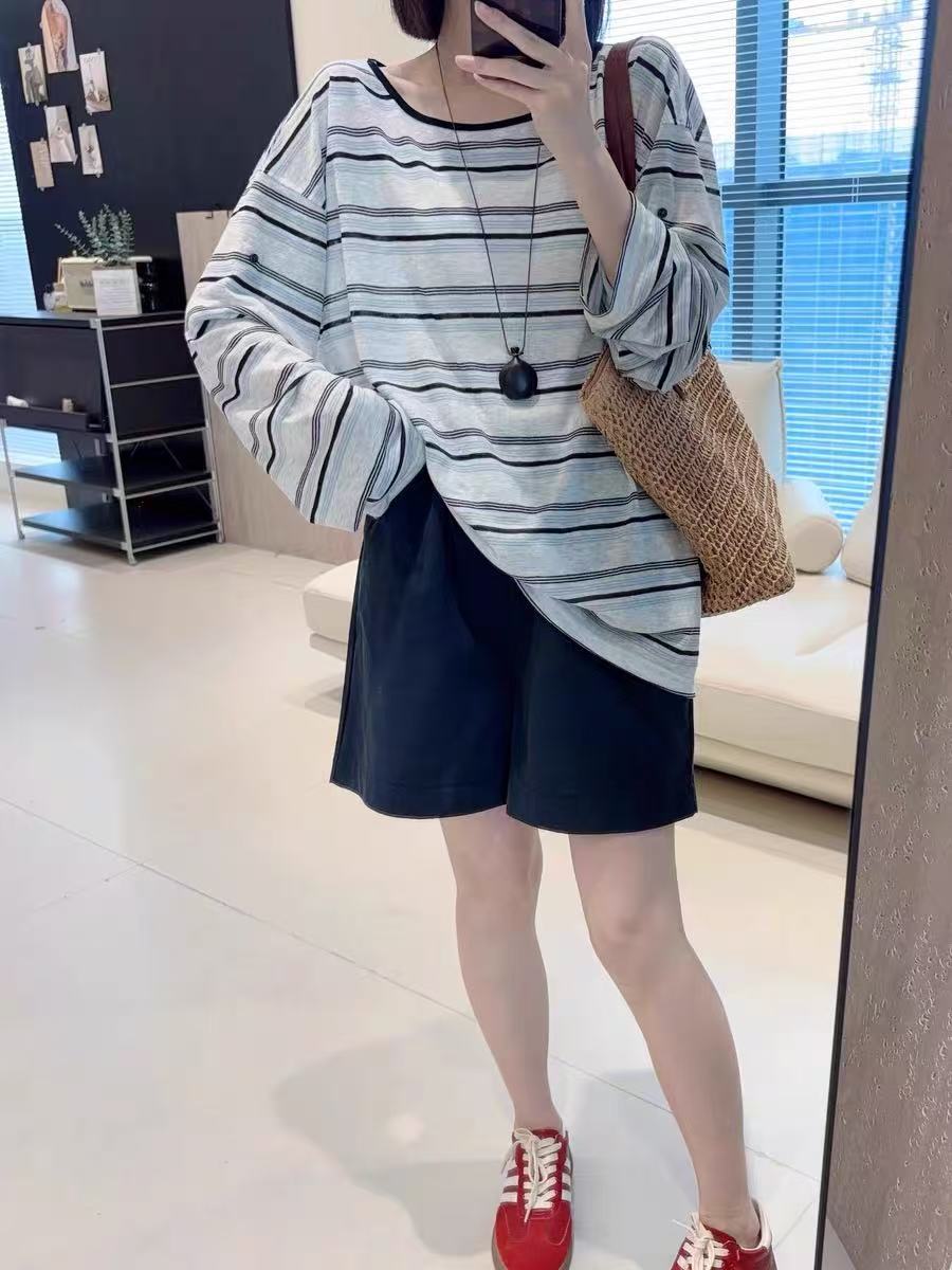 Blusa Protector Solar Ligera de Oxígeno/Delgada Suave Suelta a Rayas Tejida de Manga Larga Z0509S