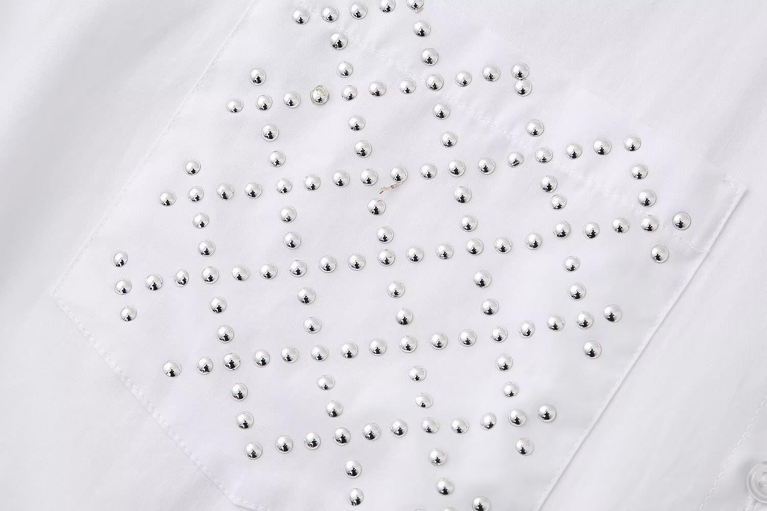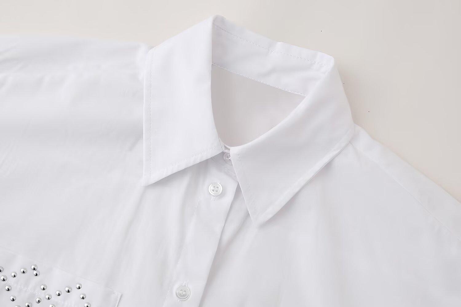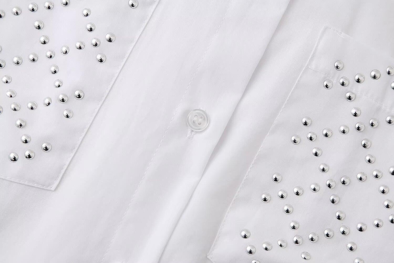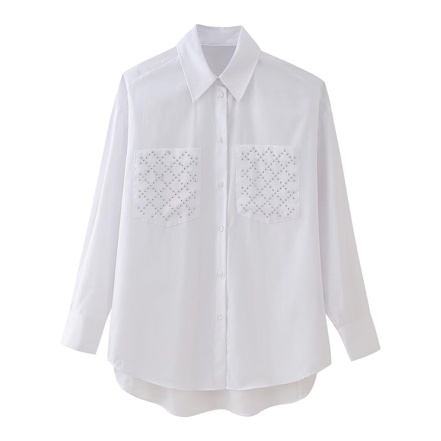 Ropa de Mujer de Exportación Transfronteriza Europea y Americana 2025 Verano Nueva Moda Diseño de Remaches Camisa Casual Holgada de Manga Larga