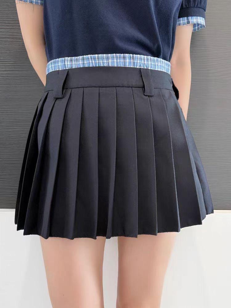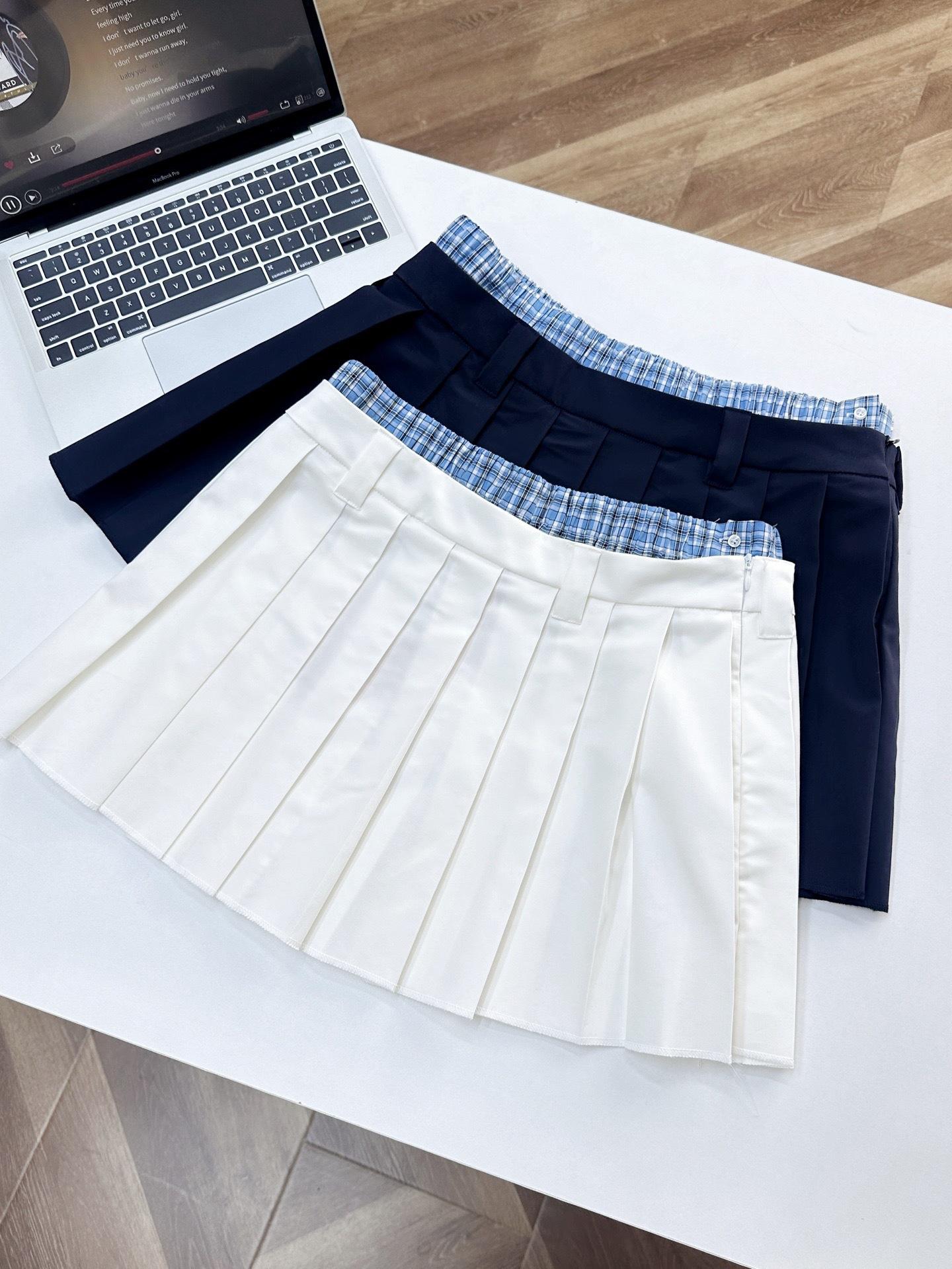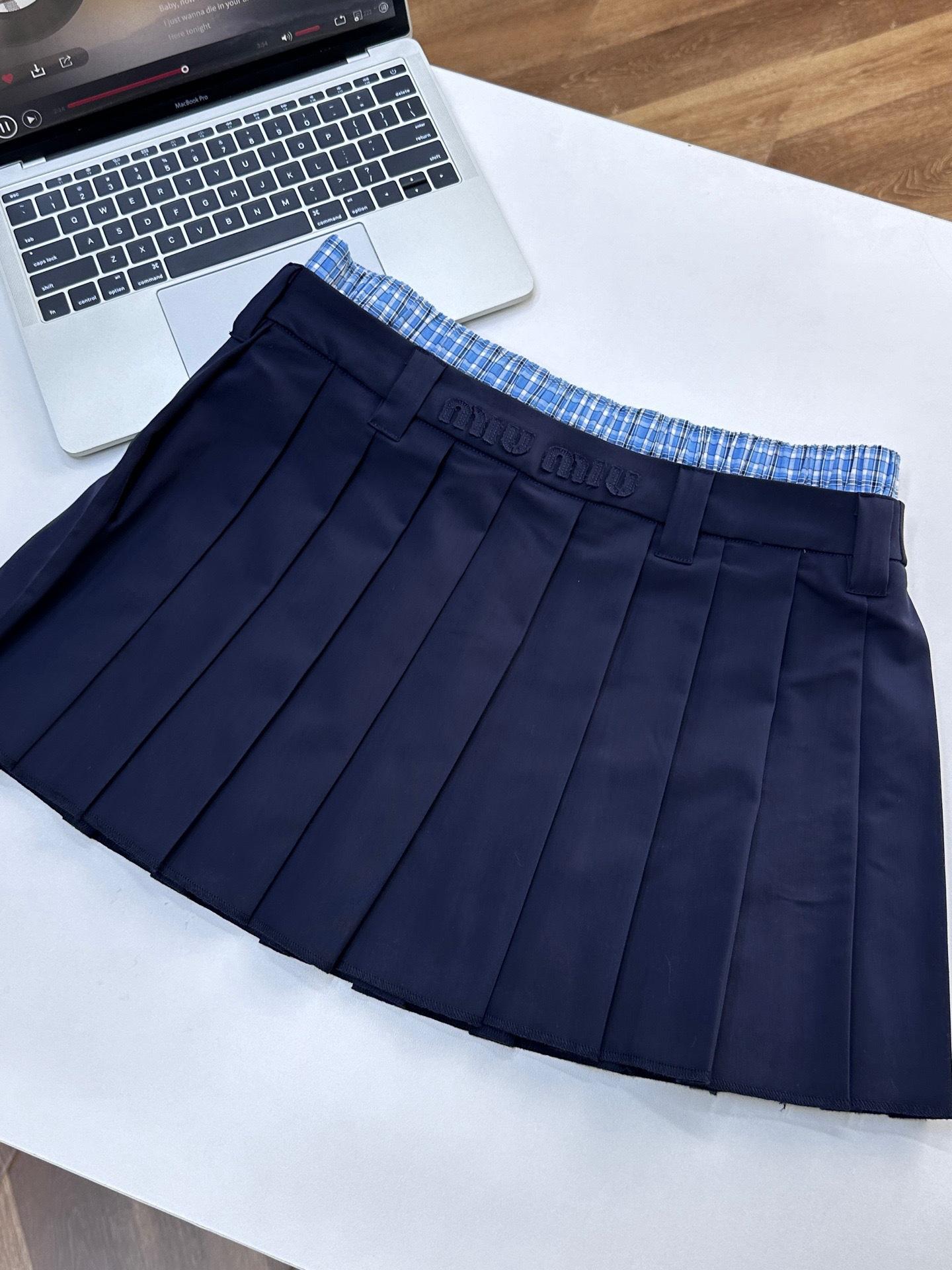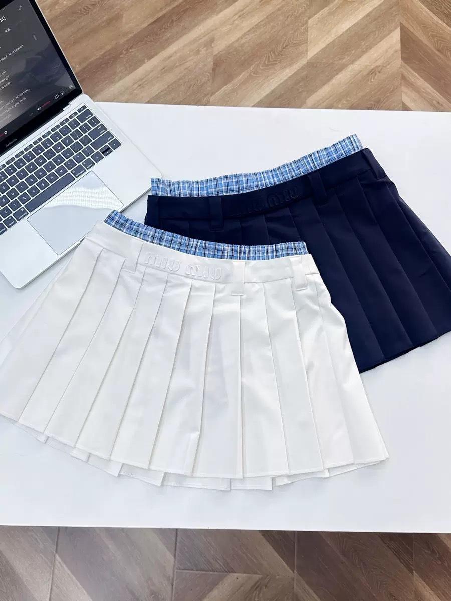 25 Primavera y Verano Miumiu Nueva Falda Corta para Mujer Falso Dos Piezas Falda Plisada en Contraste