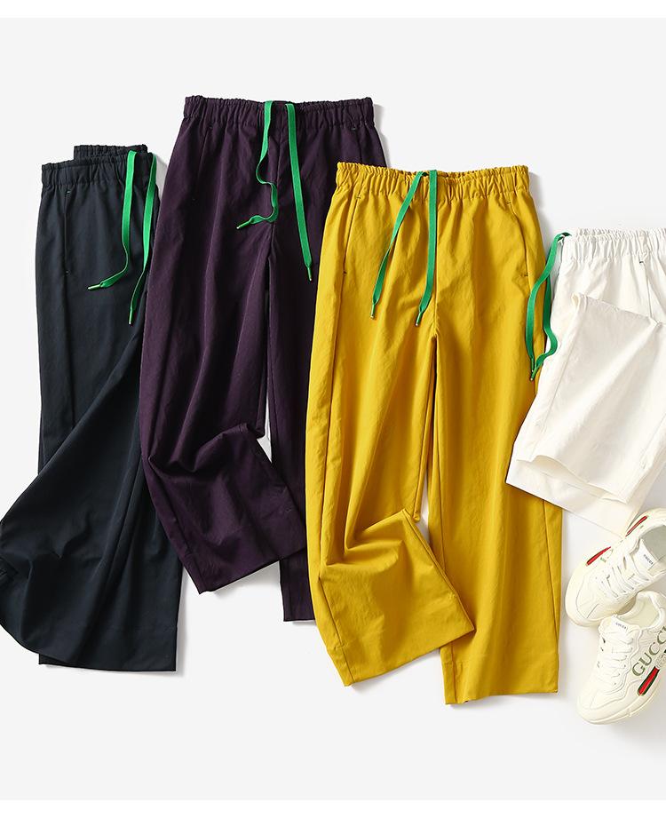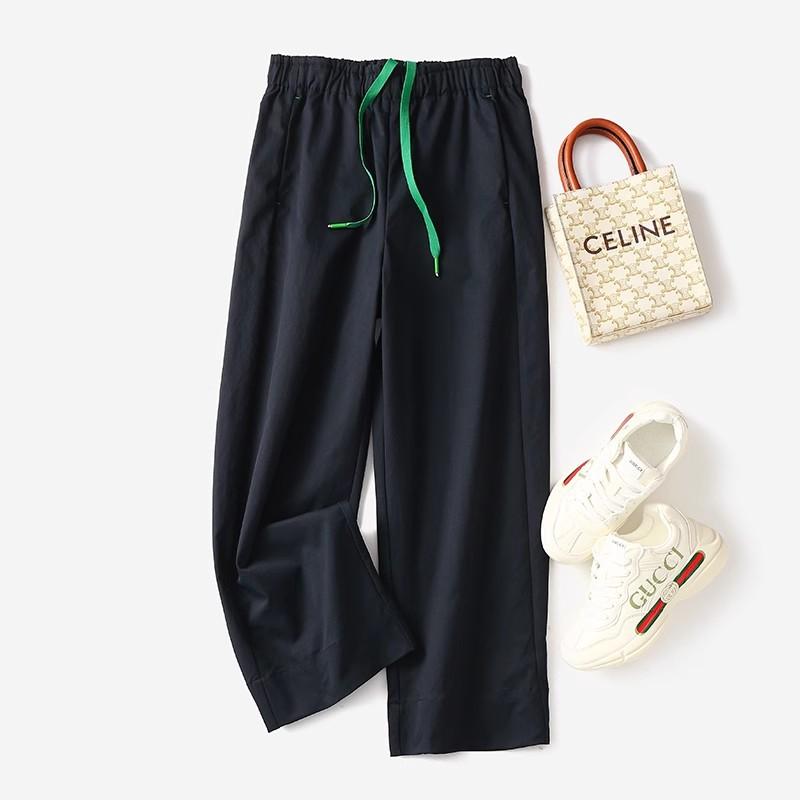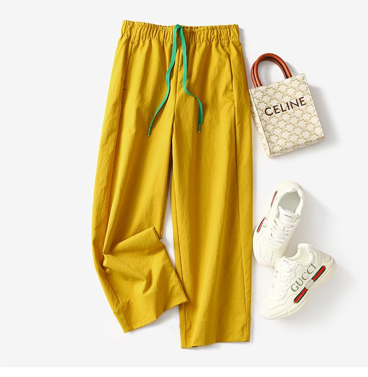 Elathe Cintura Cordón Ajustable Combinable Adelgazante Casual Pierna Ancha Pantalones Banana de Mujer Verano 2025 Nuevo Suelto Recortado Pantalón Recto
