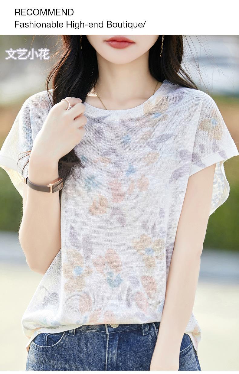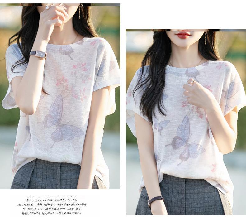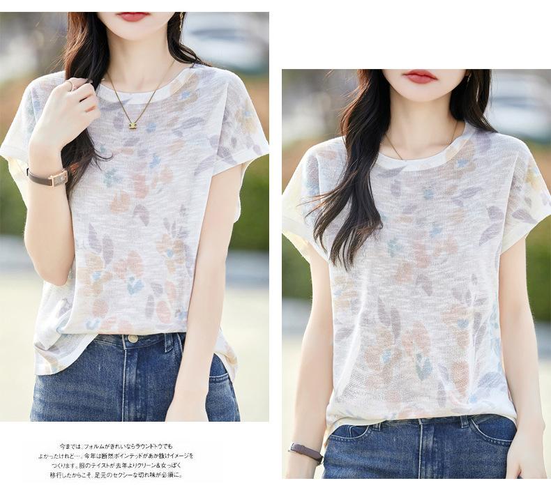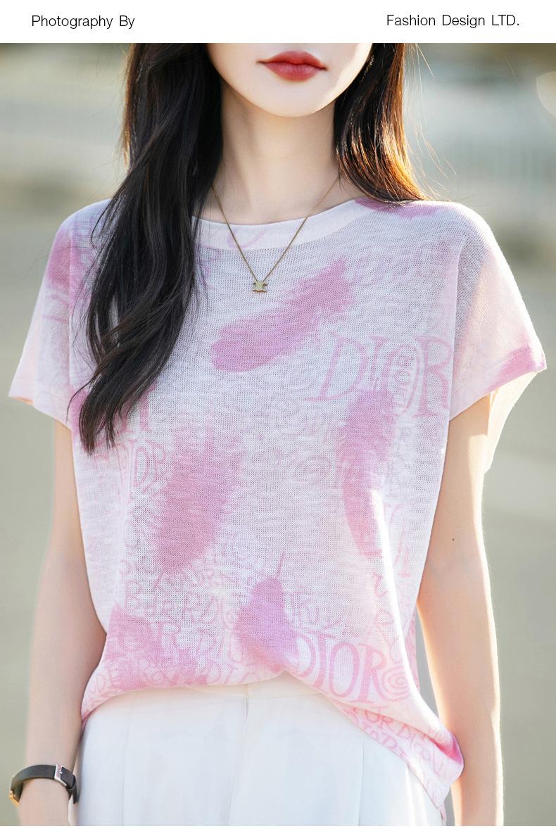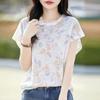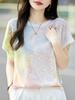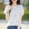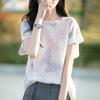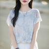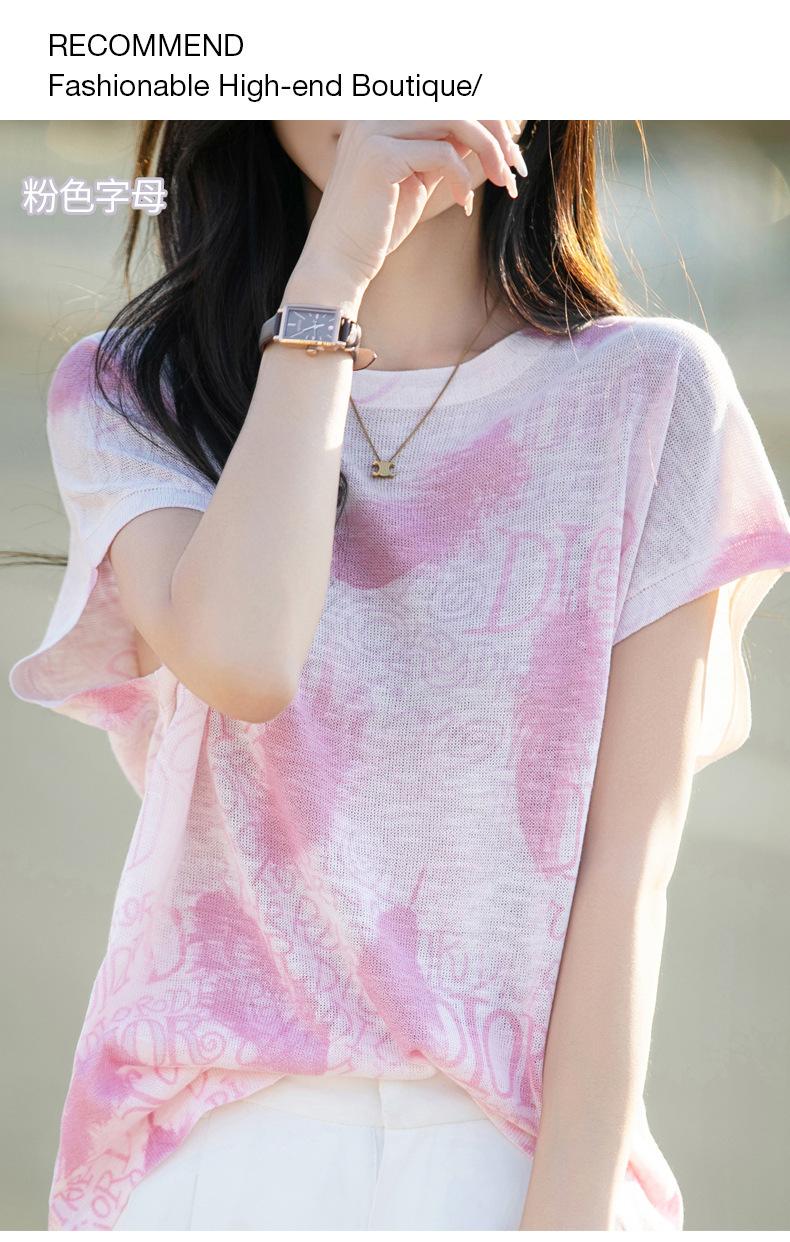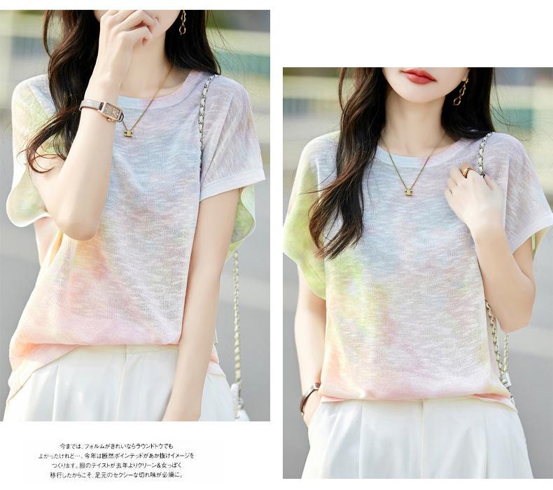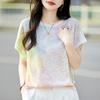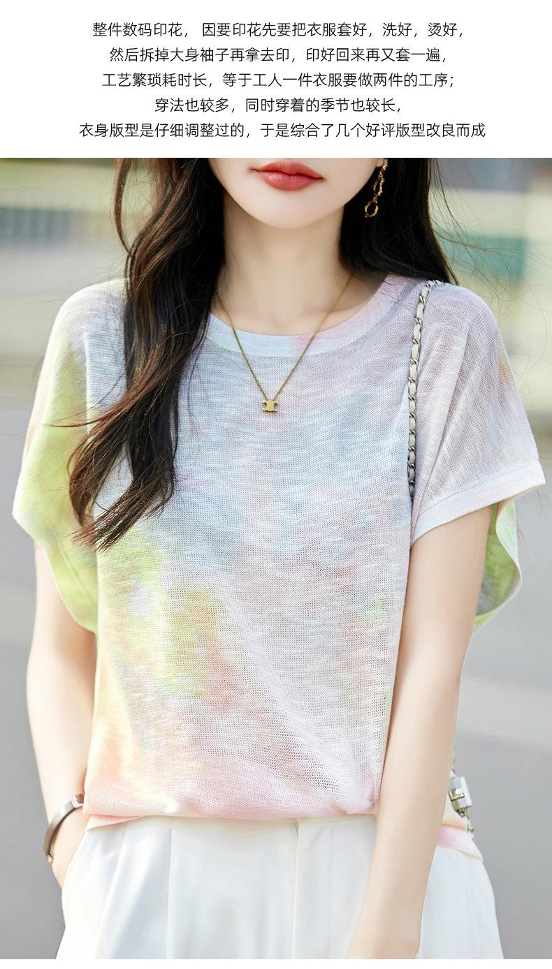 Venta al por mayor Slub 2025 Verano Mujer Nuevo Cuello Redondo Tie-Dye Camiseta Corta Suelta Versátil Elegante Comercio Exterior