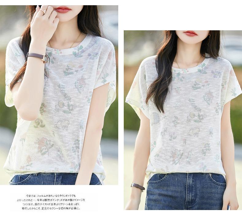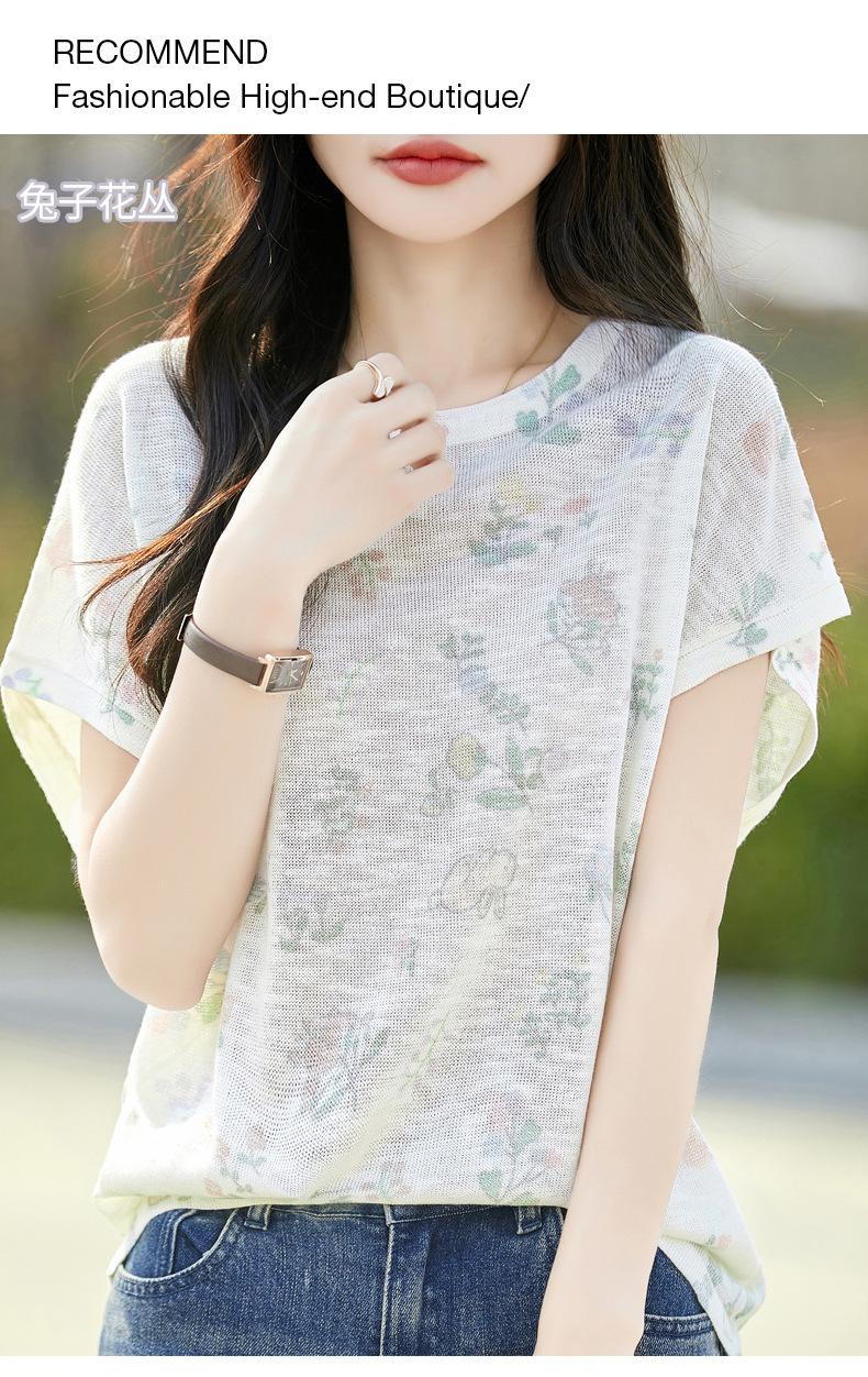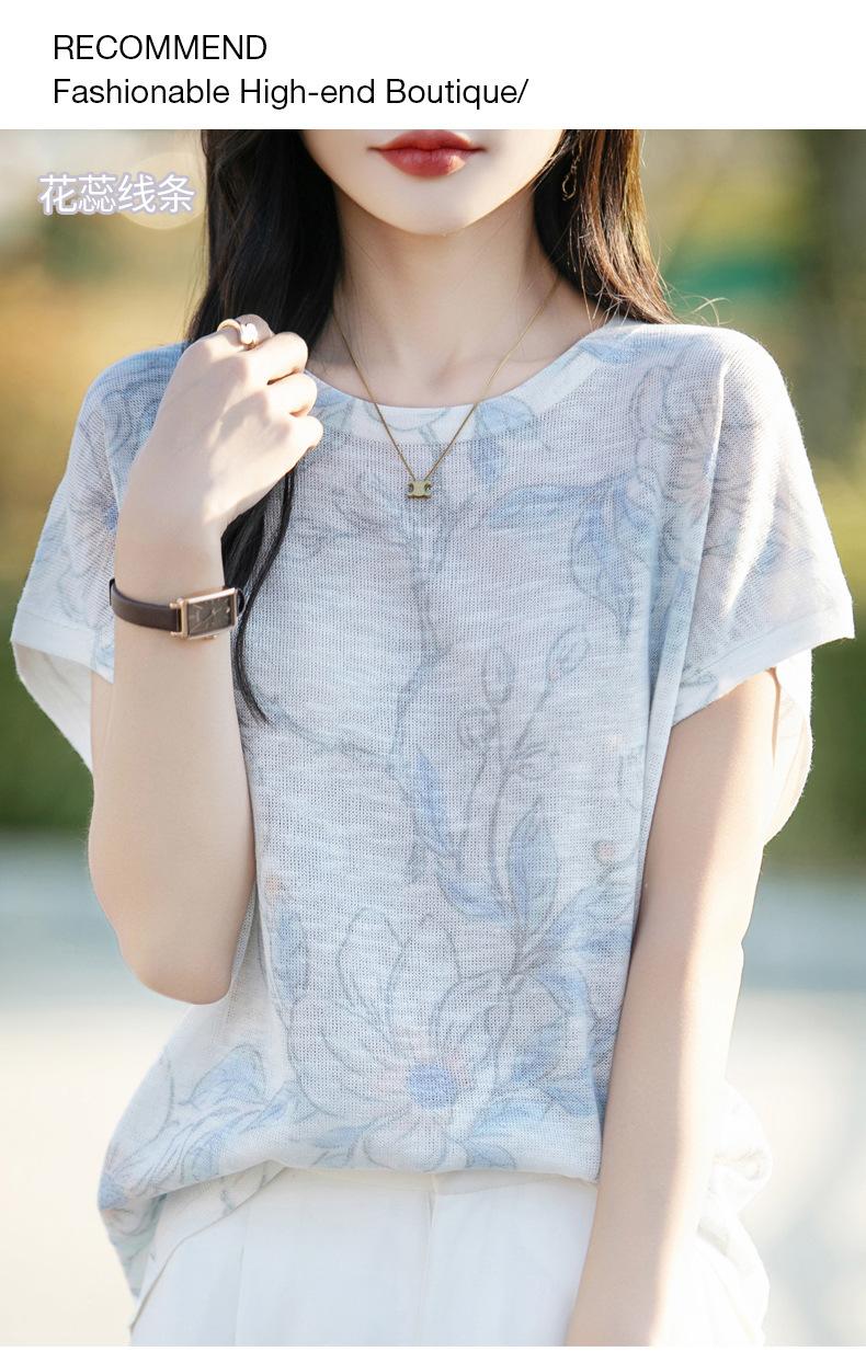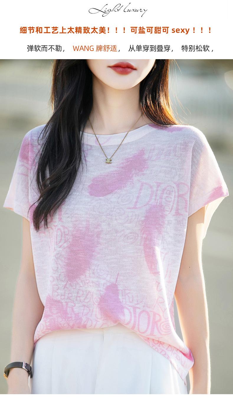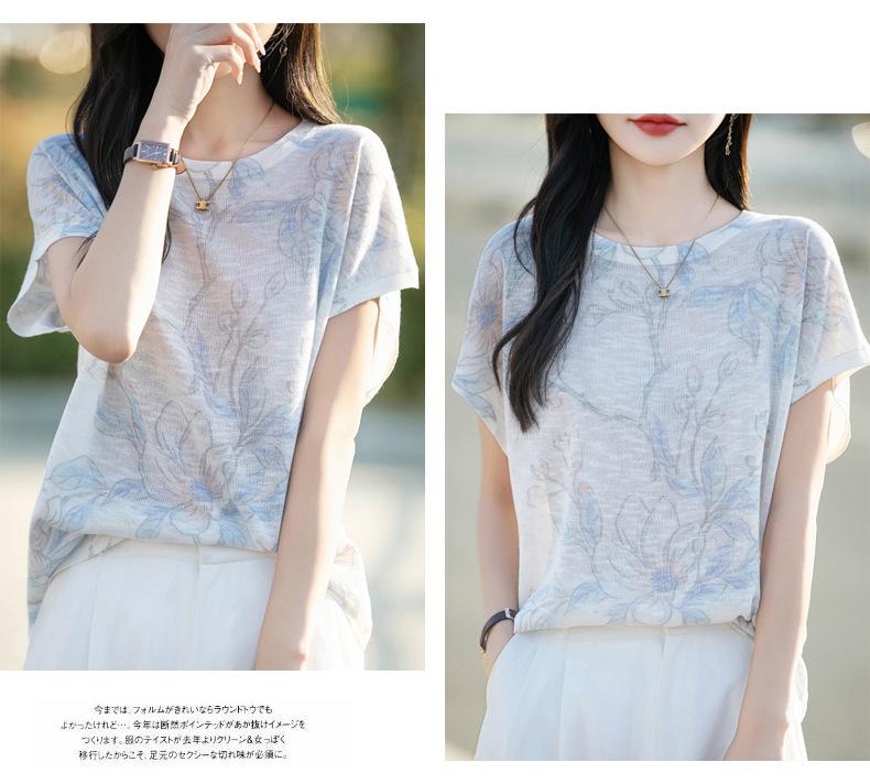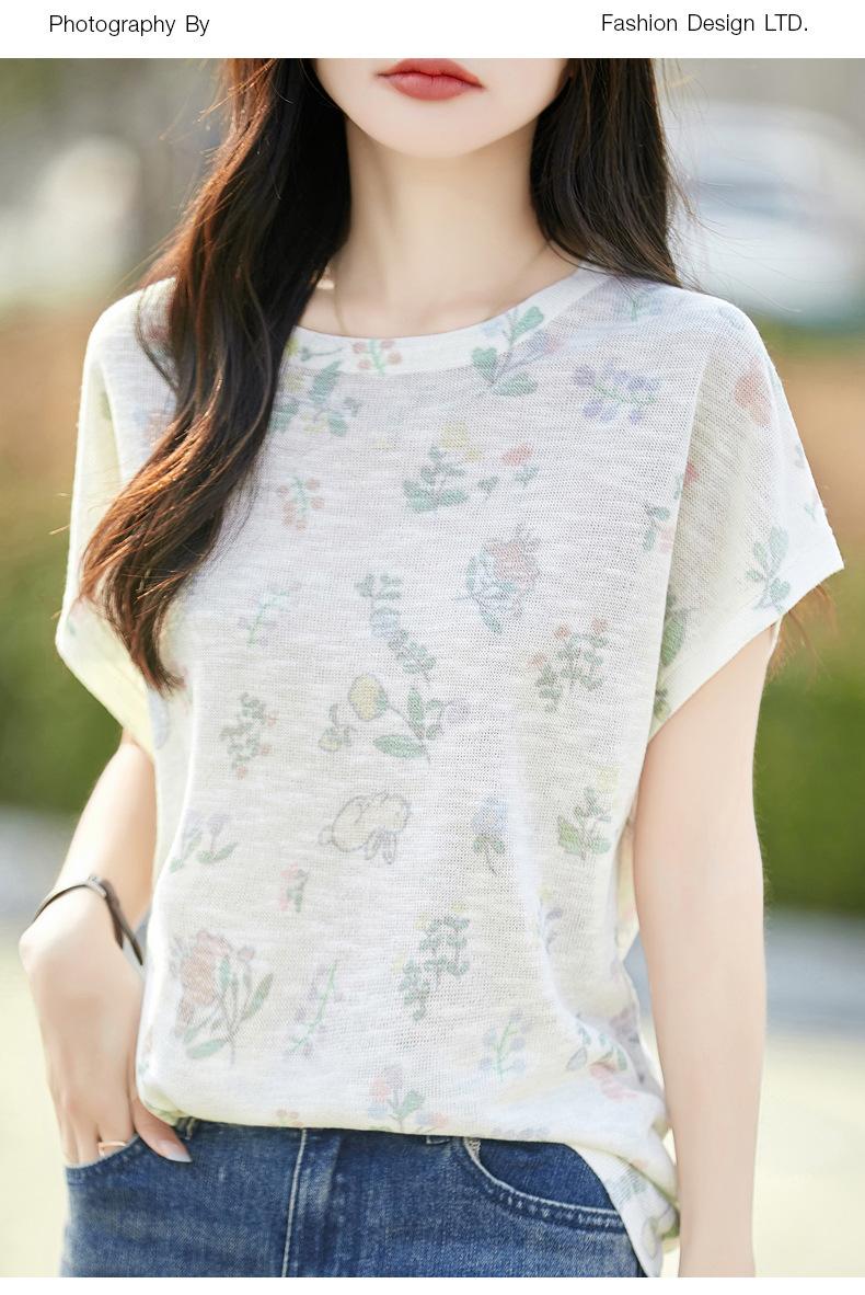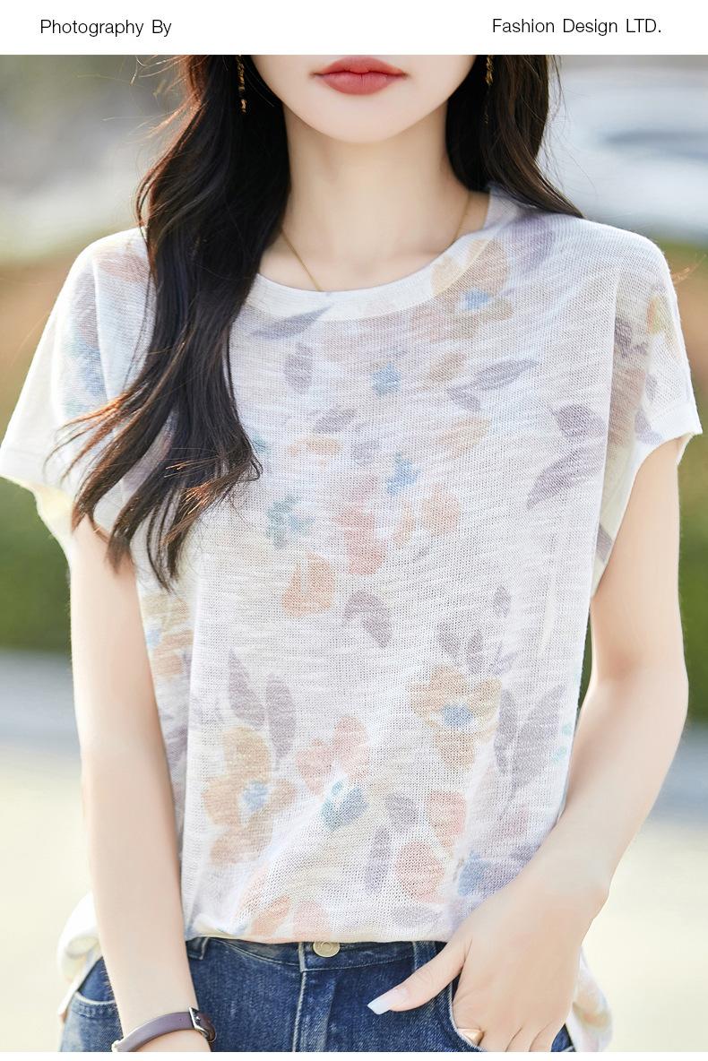 Venta al por mayor Slub 2025 Verano Mujer Nuevo Cuello Redondo Tie-Dye Camiseta Corta Suelta Versátil Elegante Comercio Exterior