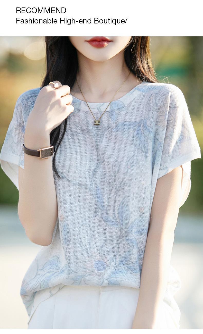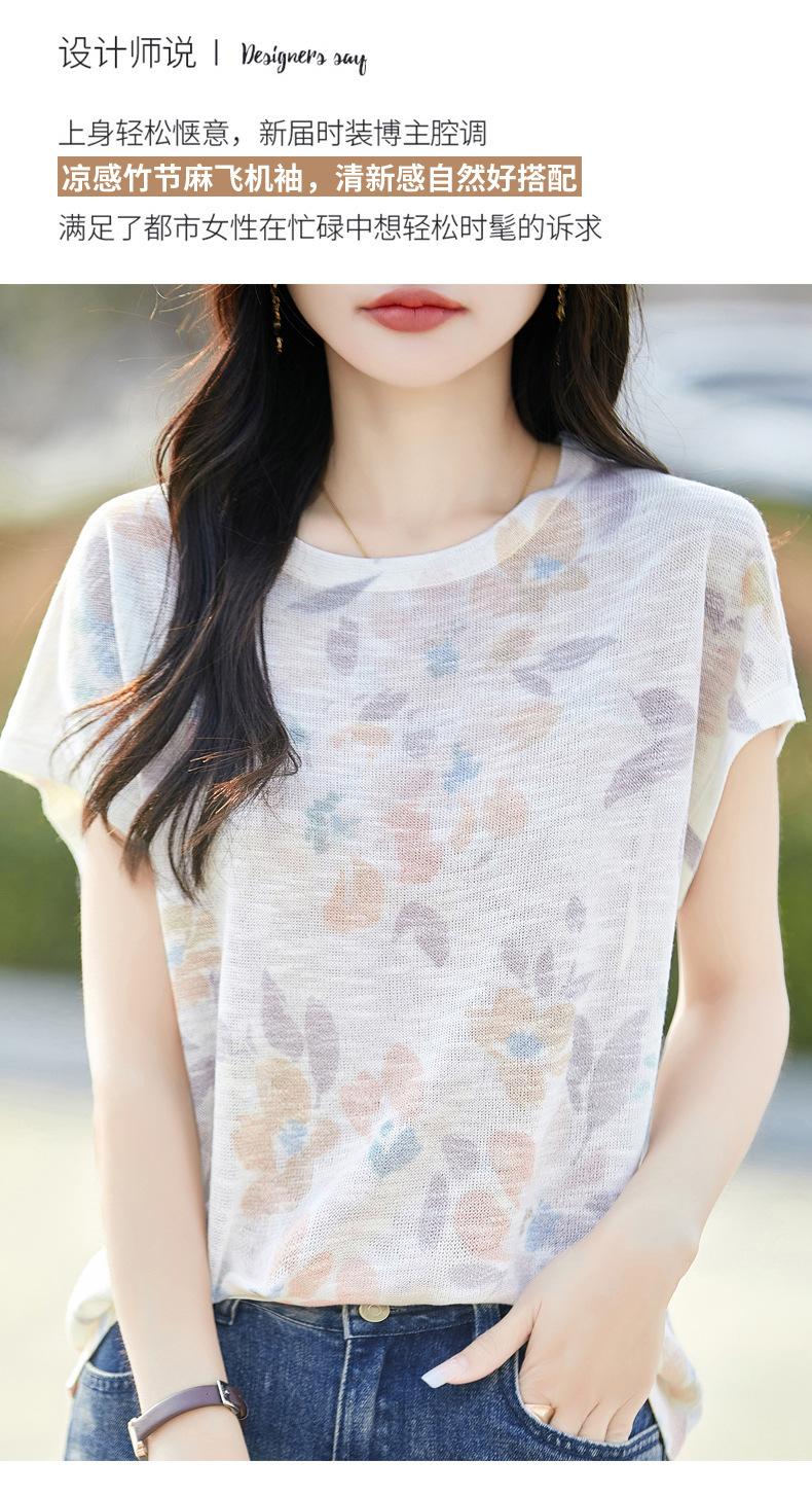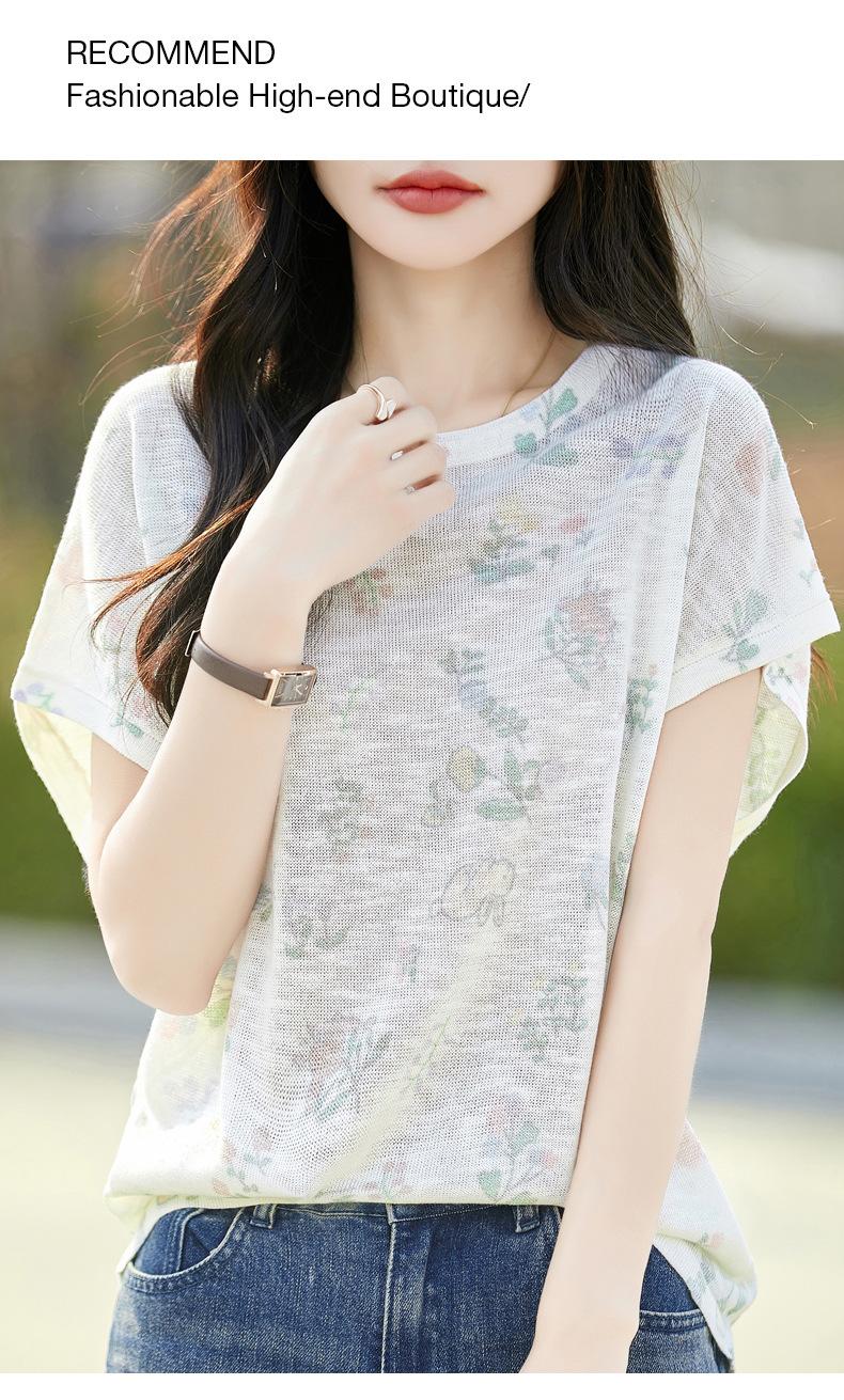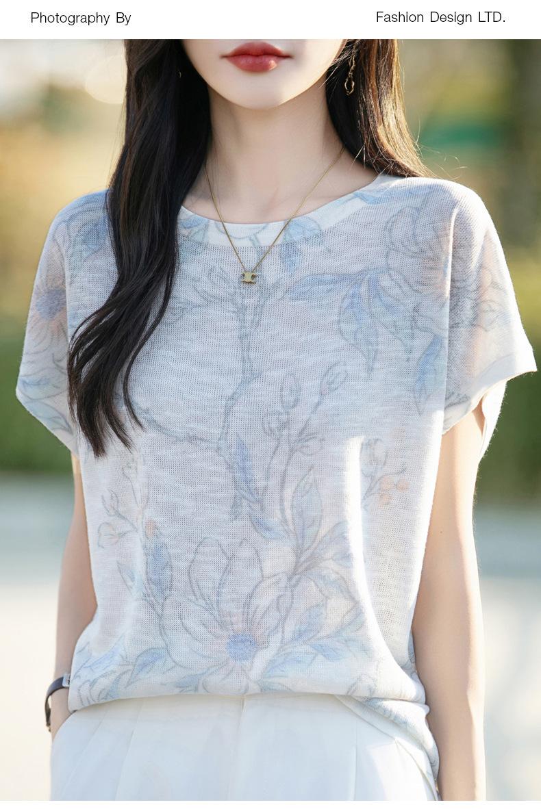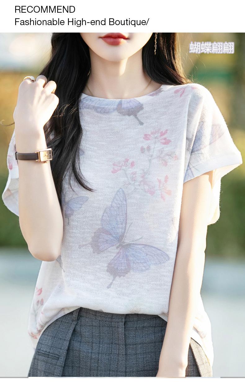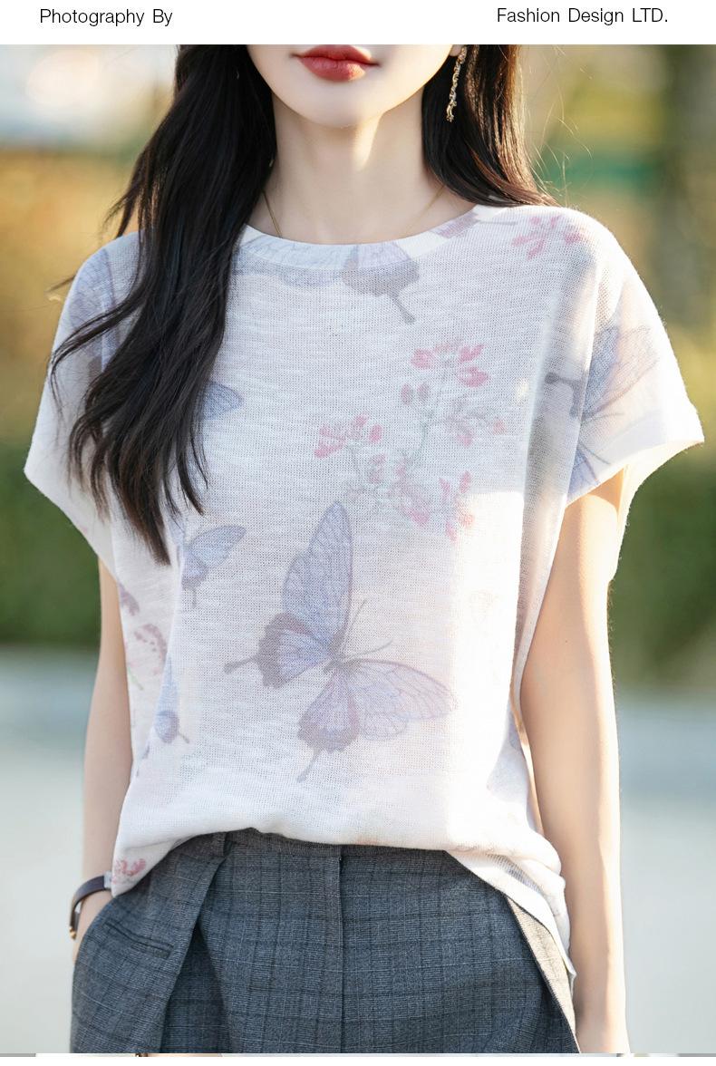 Venta al por mayor Slub 2025 Verano Mujer Nuevo Cuello Redondo Tie-Dye Camiseta Corta Suelta Versátil Elegante Comercio Exterior