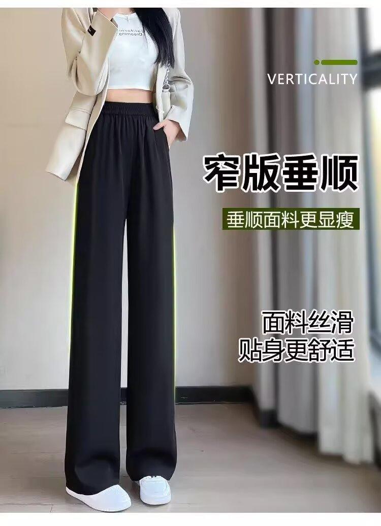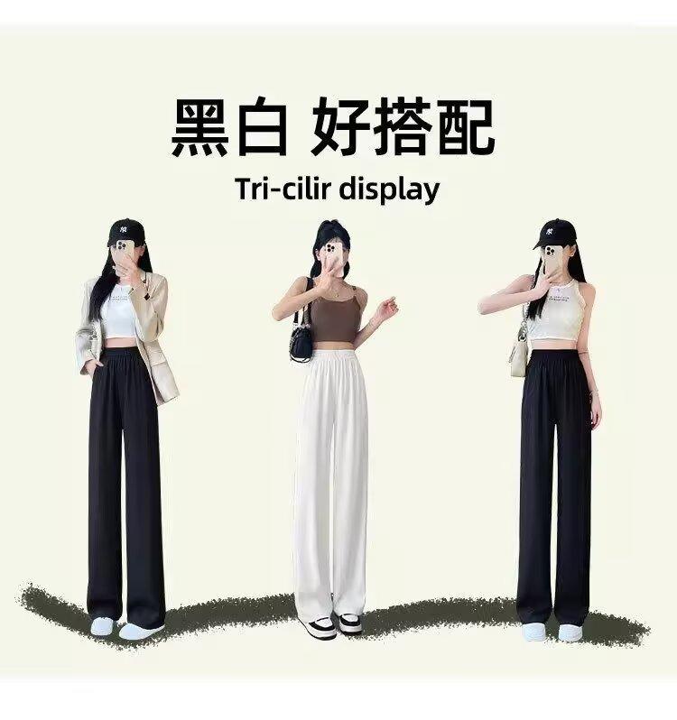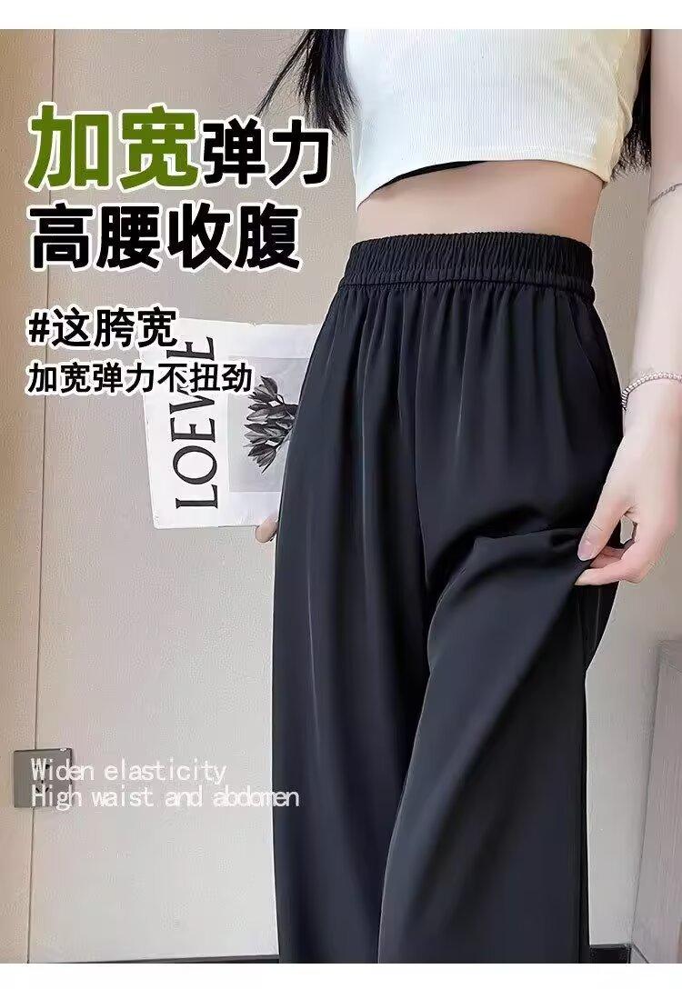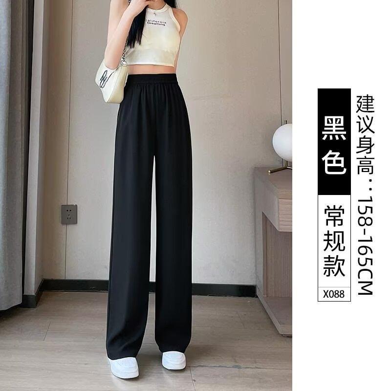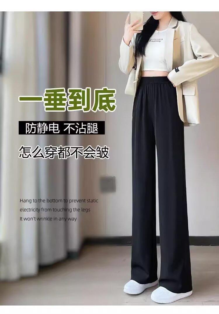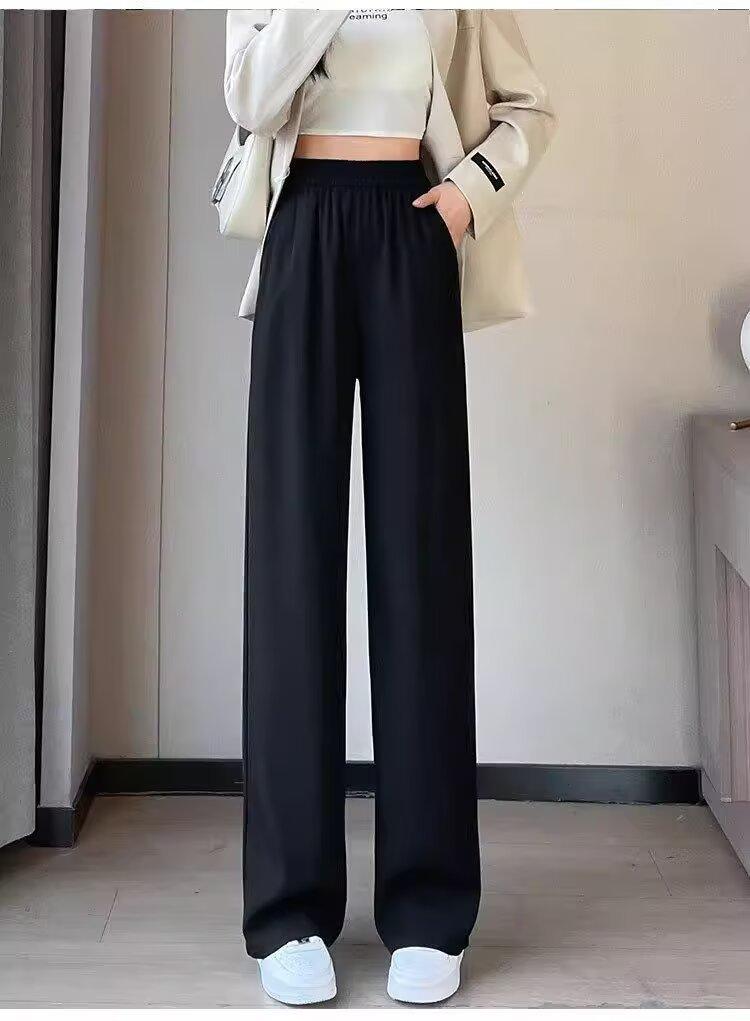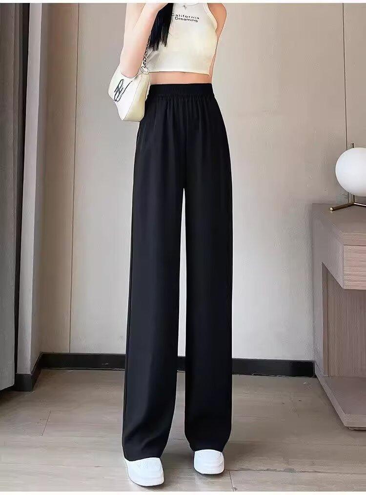 Pantalones Negros Slim de Pierna Ancha para Mujer, Verano 2025 Nuevo Casual Tiro Alto Drapeado Recto Petite Pantalones de Traje de Seda Helada