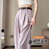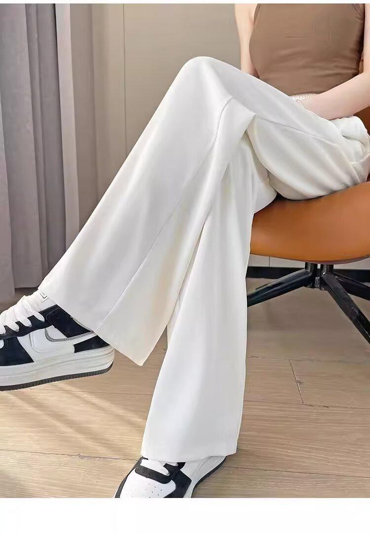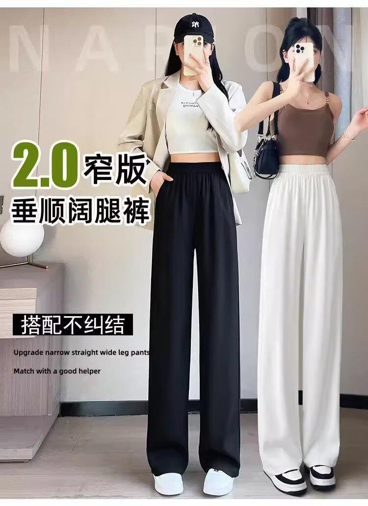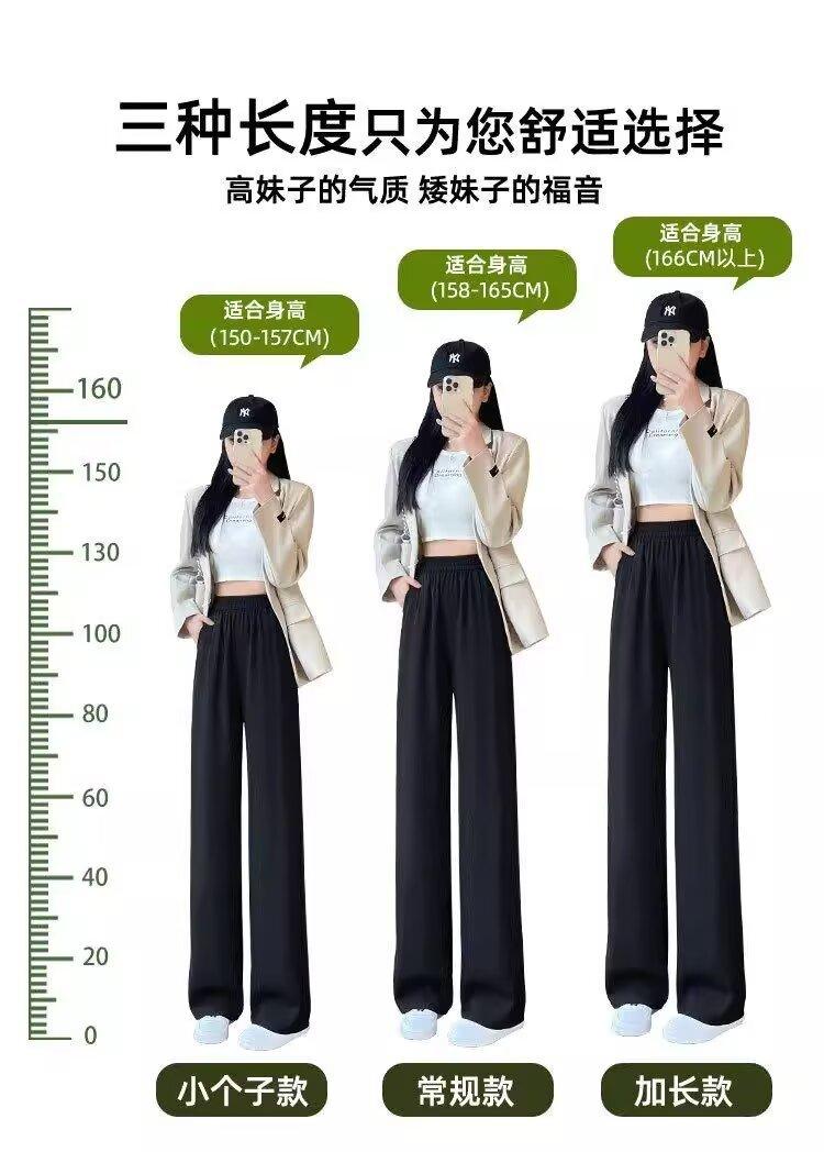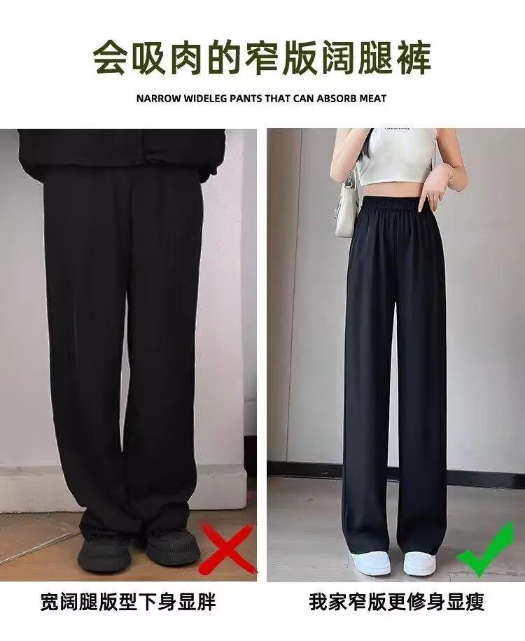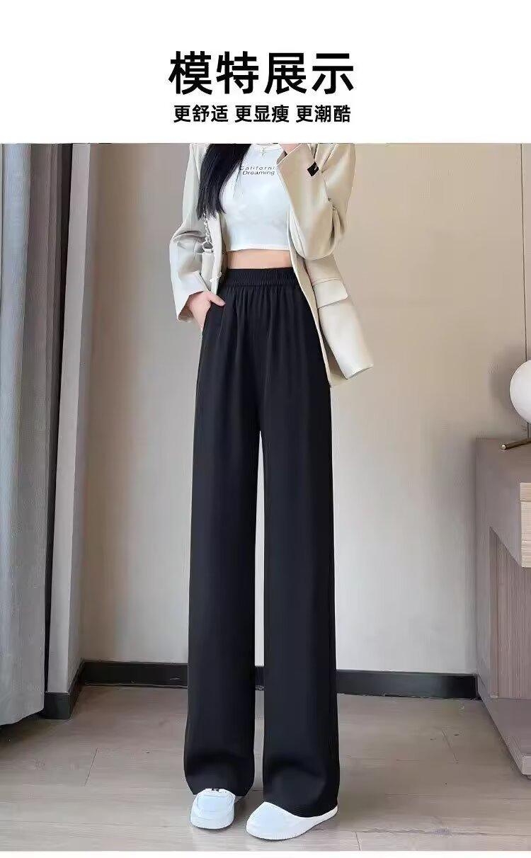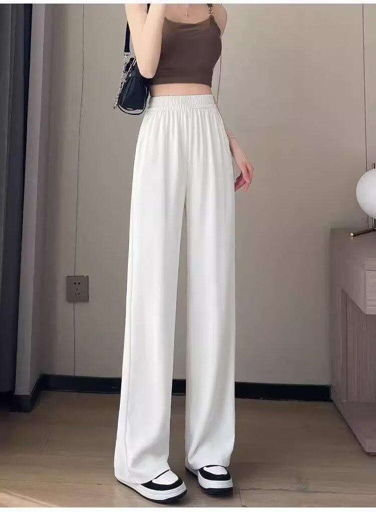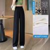 Pantalones Negros Slim de Pierna Ancha para Mujer, Verano 2025 Nuevo Casual Tiro Alto Drapeado Recto Petite Pantalones de Traje de Seda Helada