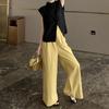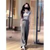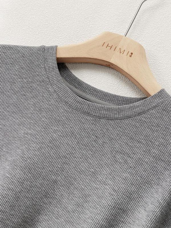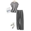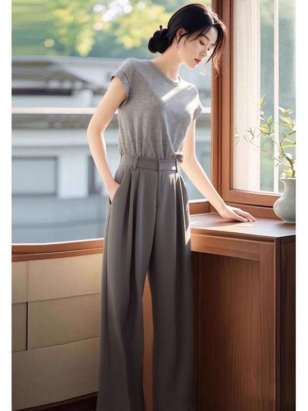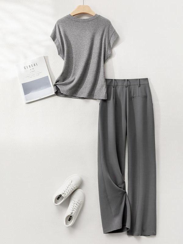 Traje informal de moda 2025, conjunto de dos piezas de camiseta gris de manga corta y pantalones anchos, estilo de alta gama, para viajeros.
