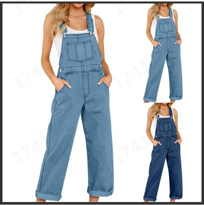 Overol de mezclilla casual holgado de talla grande para mujer de comercio exterior europeo y americano