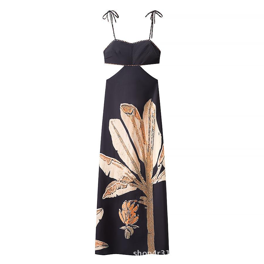 Amazon Comercio Exterior Transfronterizo Venta al por Mayor Ropa de Mujer 2025 Verano Nuevo Estilo Casual Cintura Descubierta Encaje con Cordones Vestido Estampado