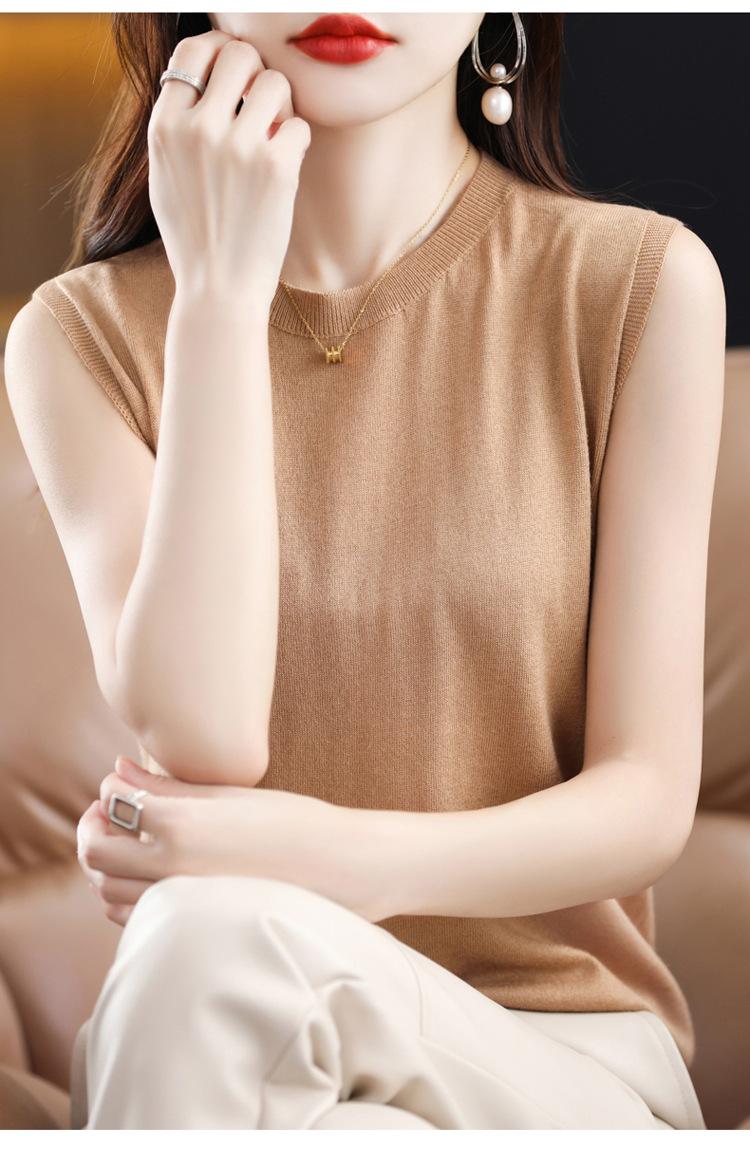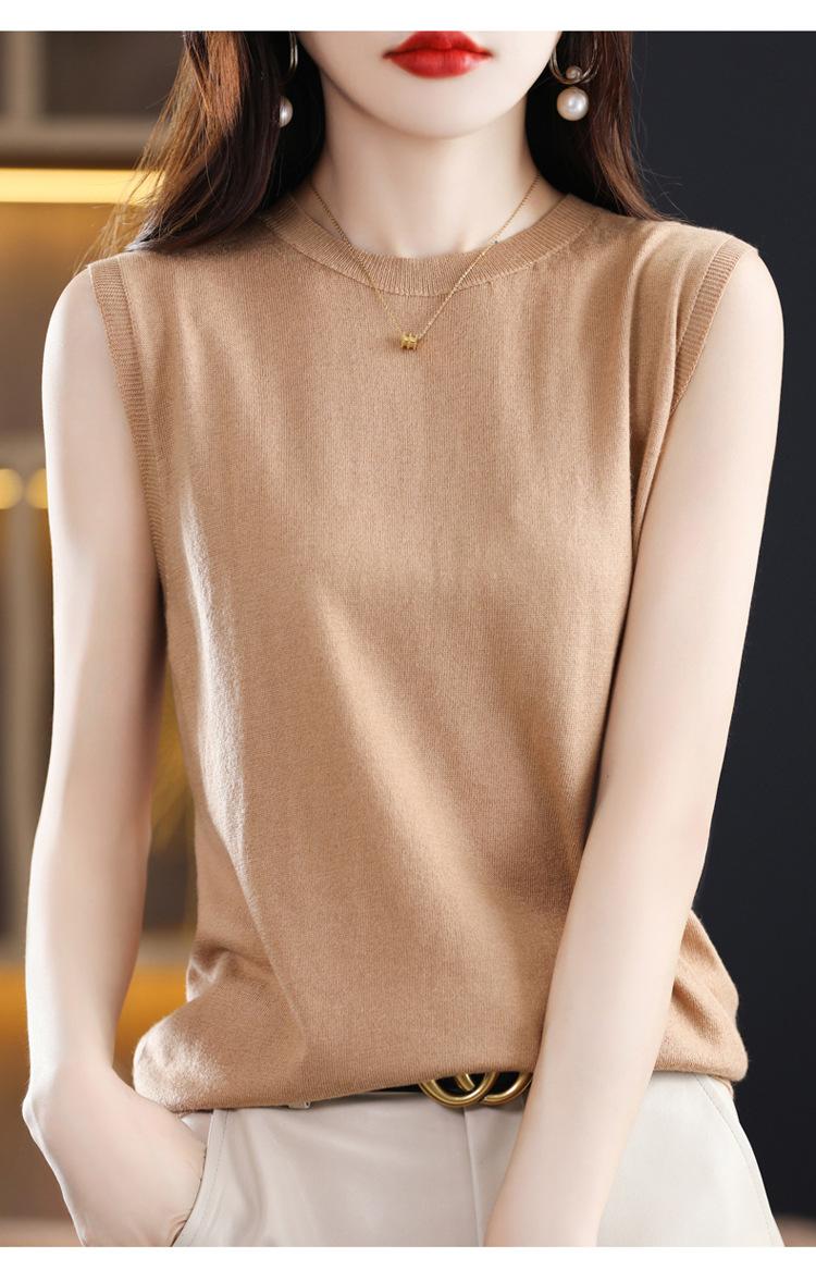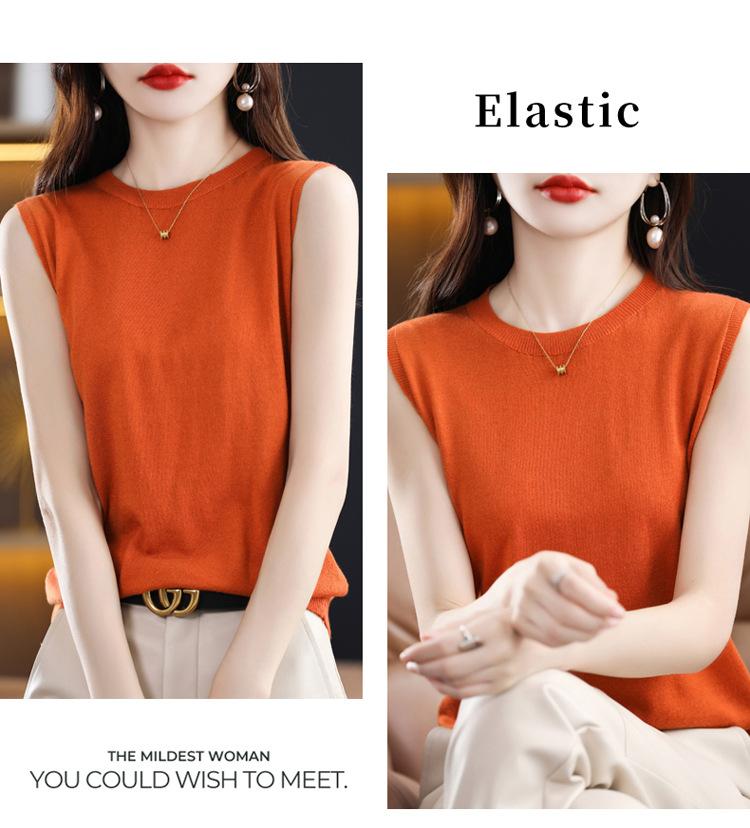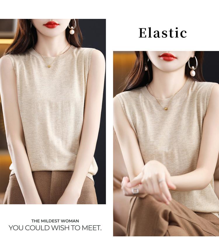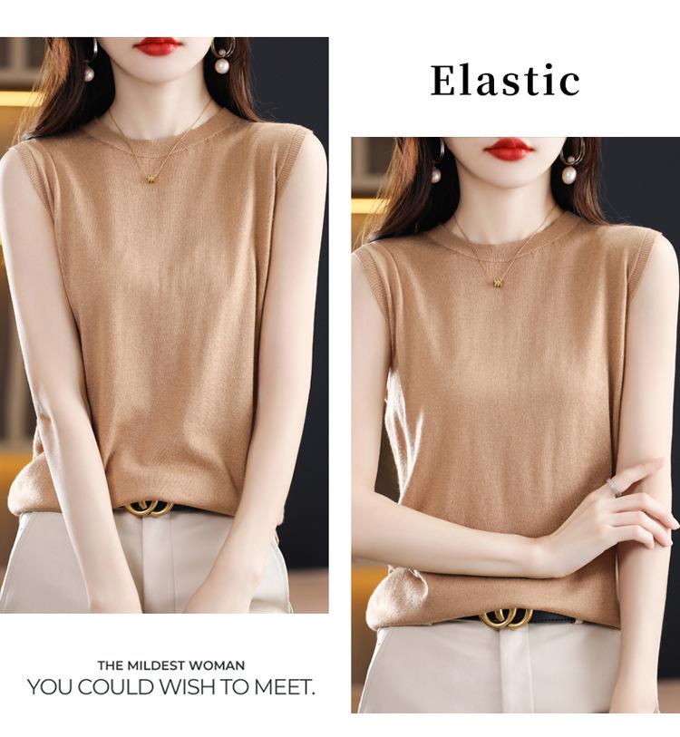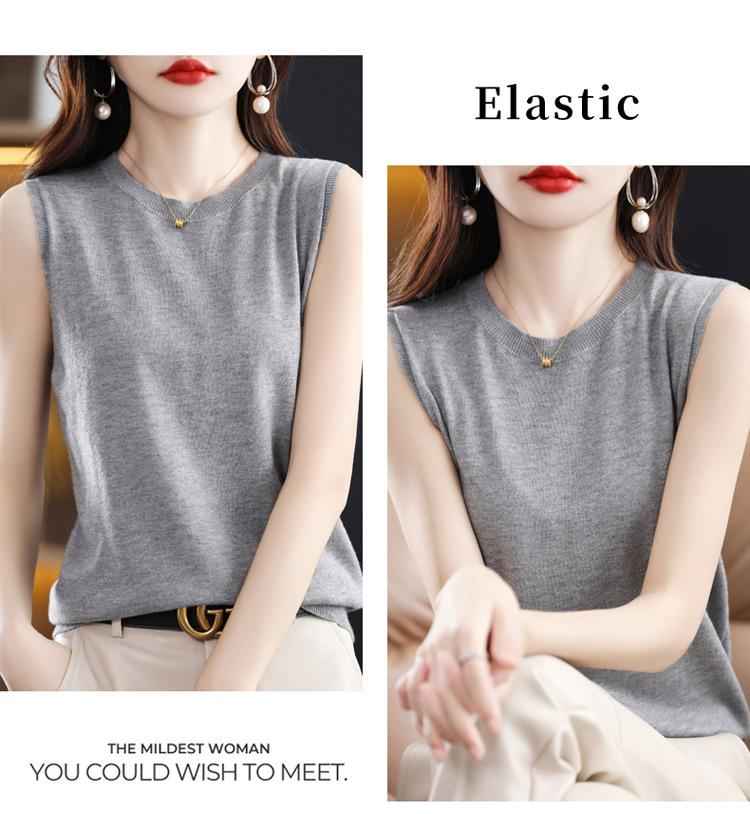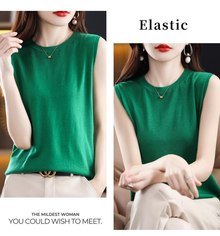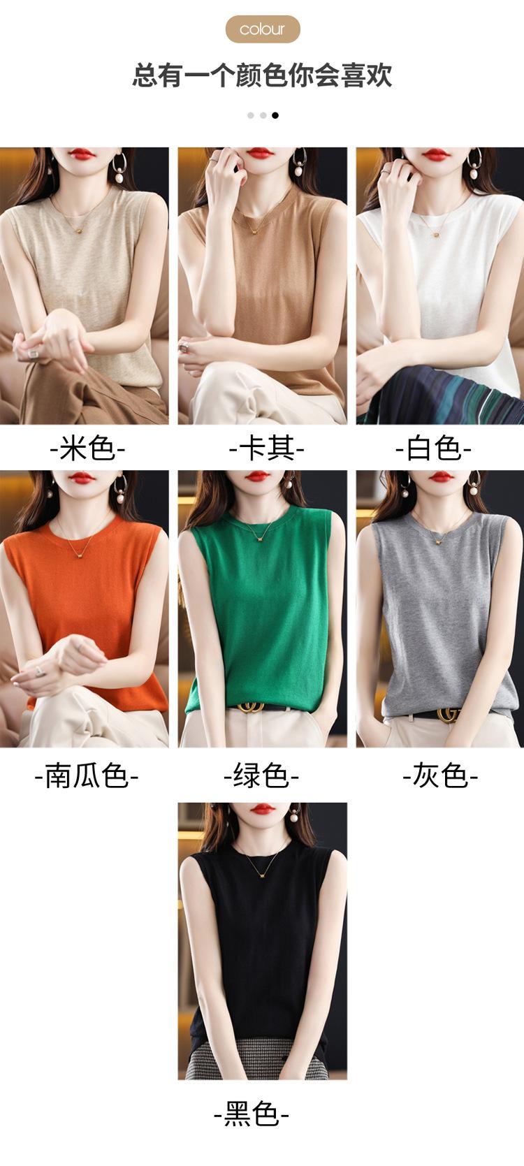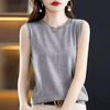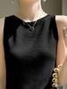 2025 Primavera y Verano Nuevo Cuello Redondo Color Puro Tejido Chaleco sin Mangas Ropa Exterior para Mujer Camiseta Delgada de Fondo Top Versátil