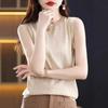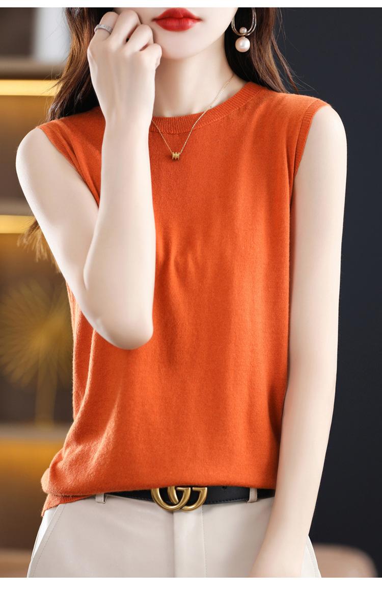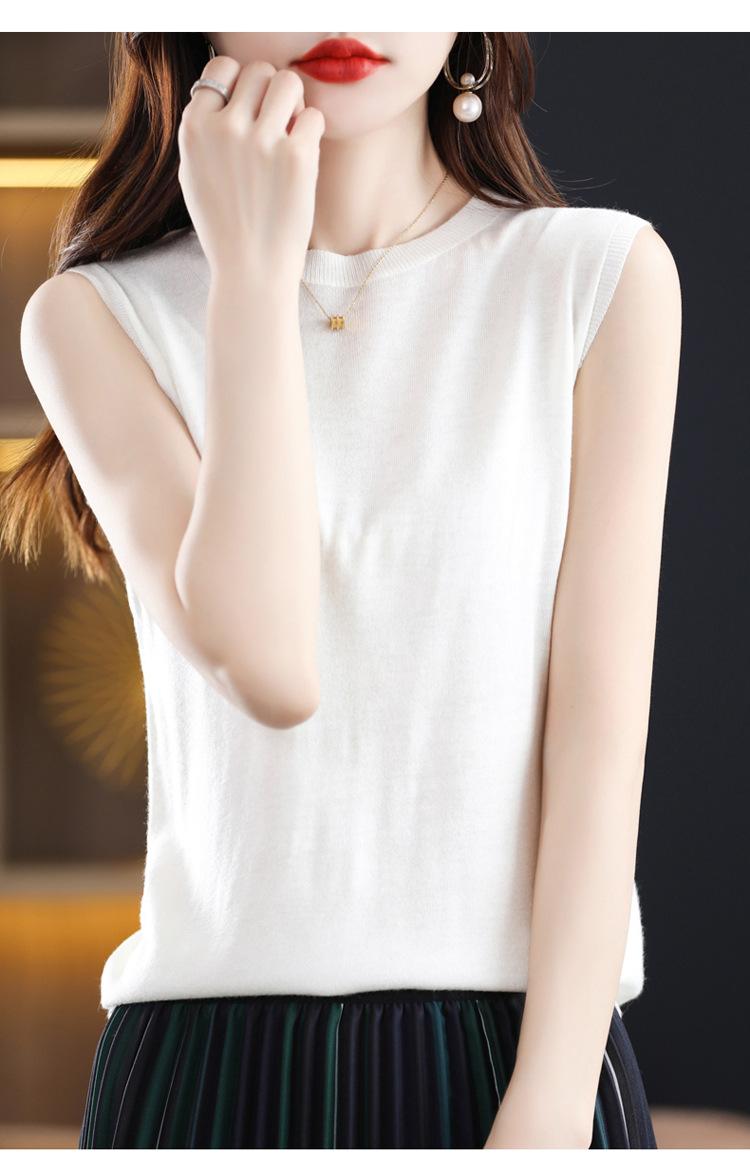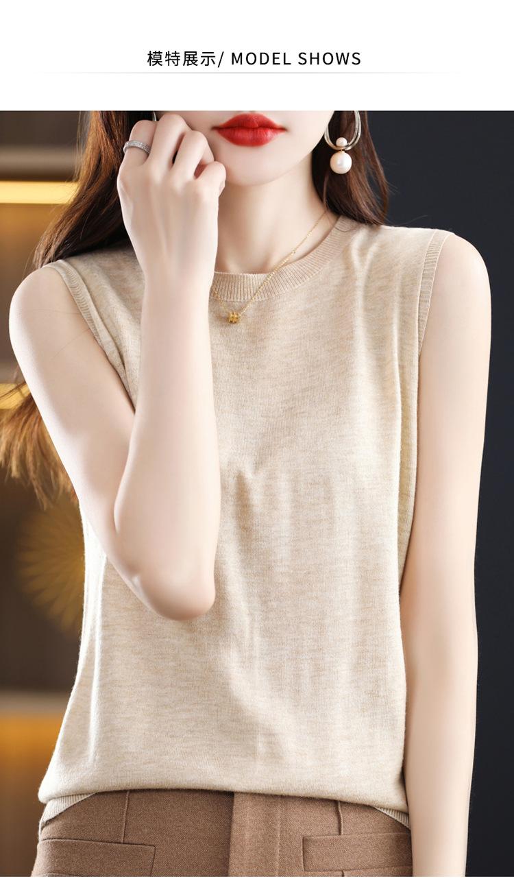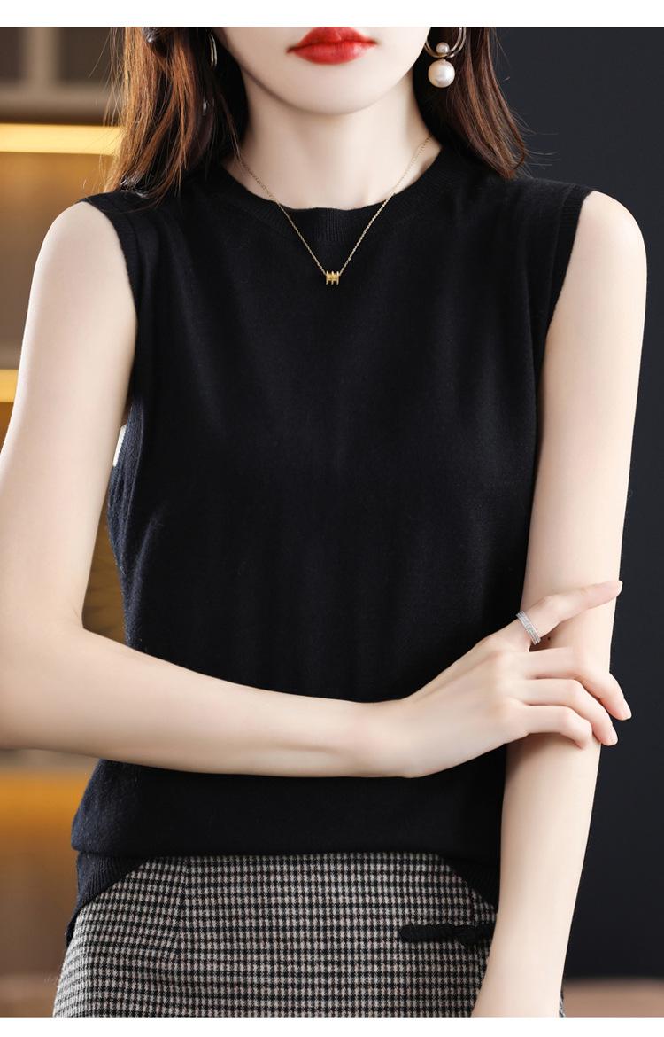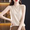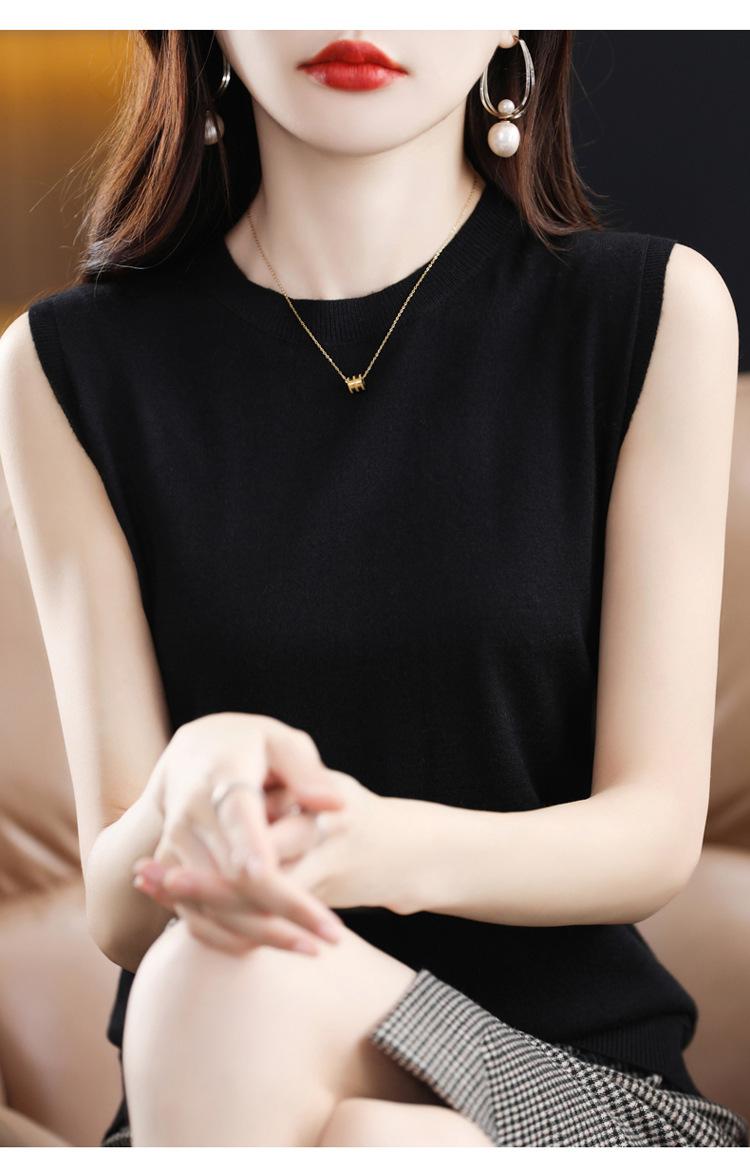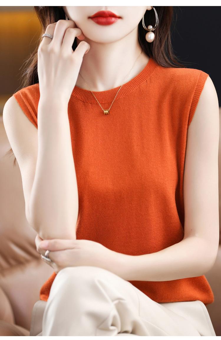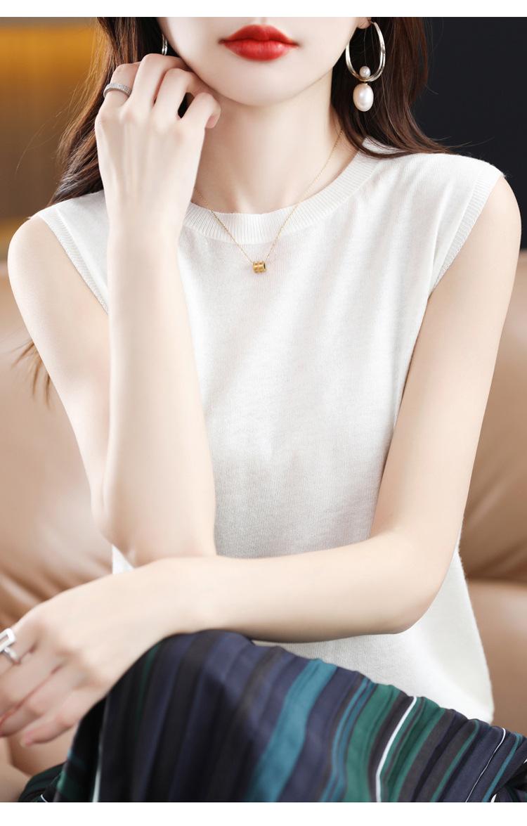 2025 Primavera y Verano Nuevo Cuello Redondo Color Puro Tejido Chaleco sin Mangas Ropa Exterior para Mujer Camiseta Delgada de Fondo Top Versátil