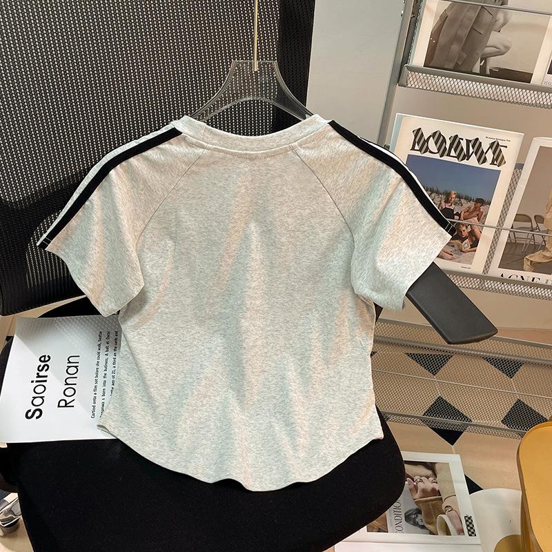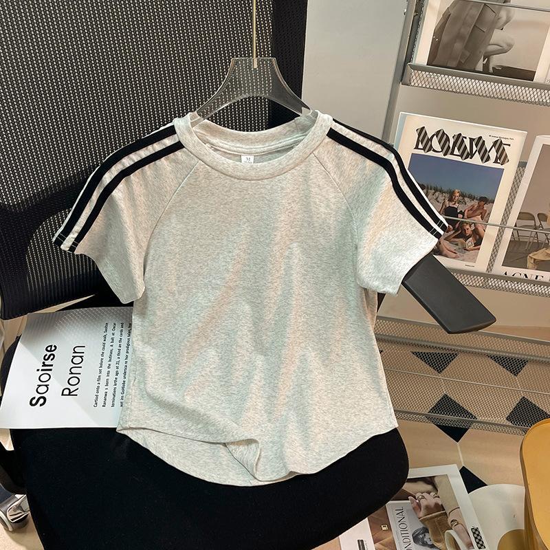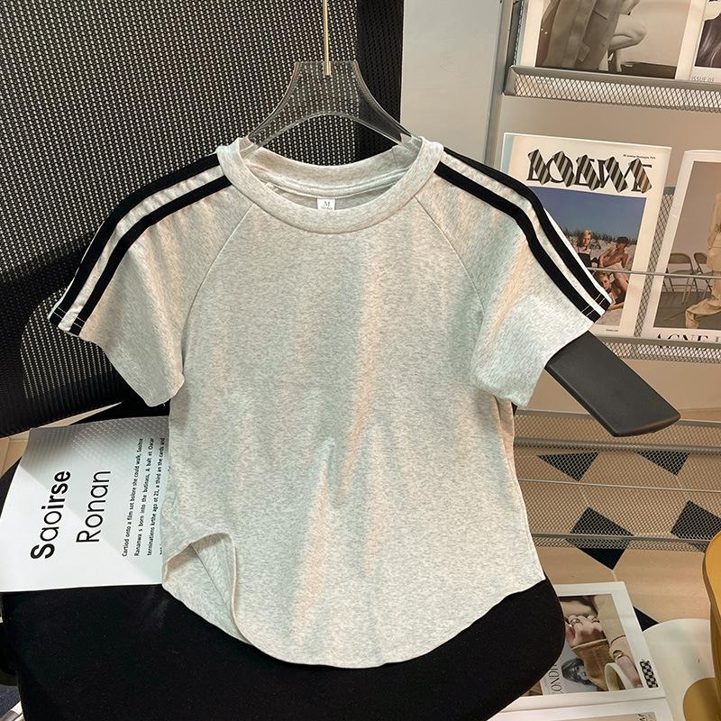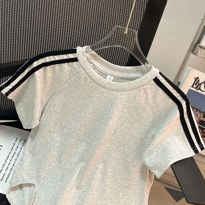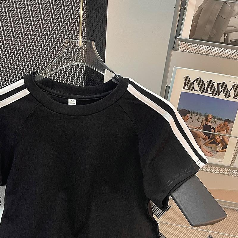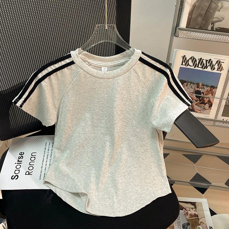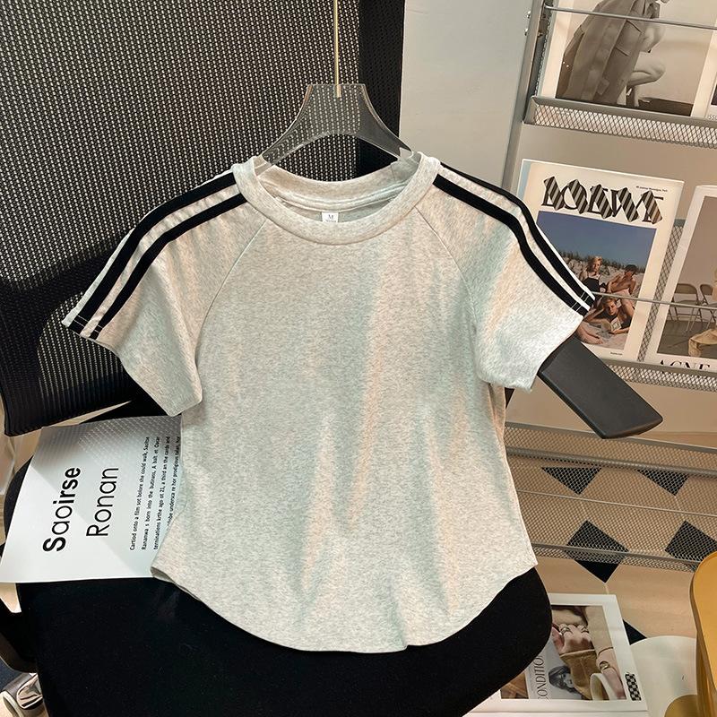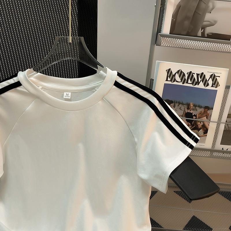 2025 Nueva Popular Verano Algodón Puro Manga Corta Camiseta para Mujer Marca de Moda Ins Chic de Alta Gama Top de Tres Rayas de Media Manga