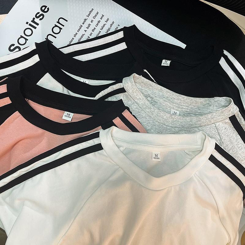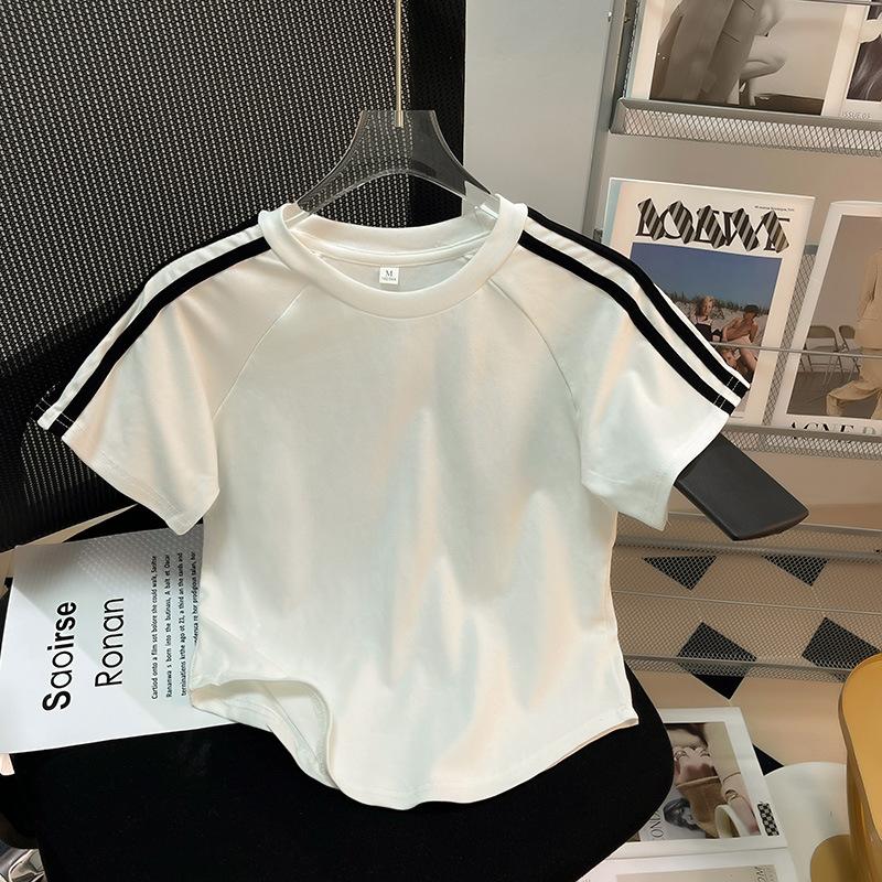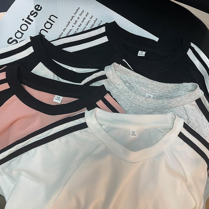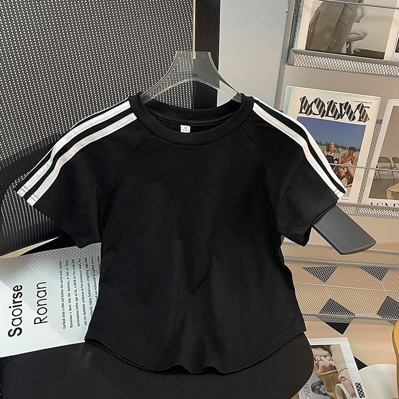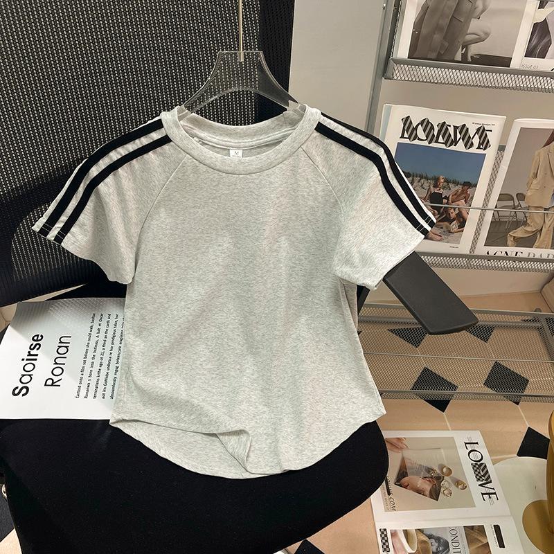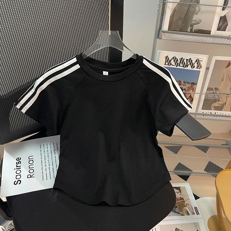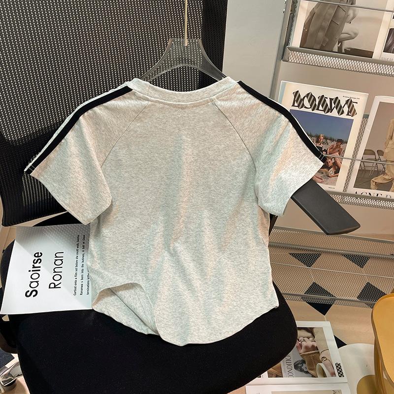 2025 Nueva Popular Verano Algodón Puro Manga Corta Camiseta para Mujer Marca de Moda Ins Chic de Alta Gama Top de Tres Rayas de Media Manga