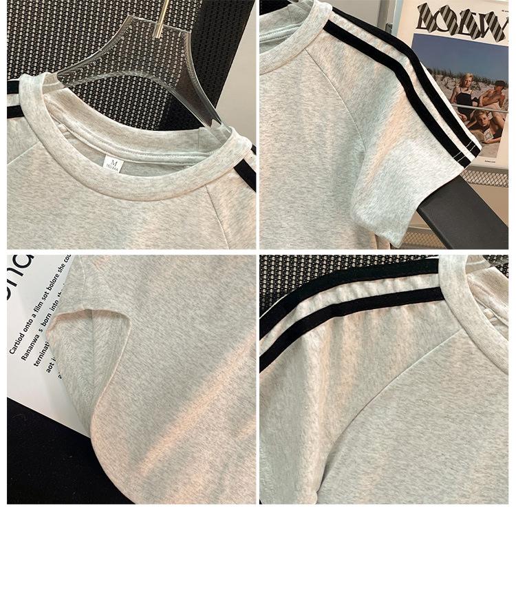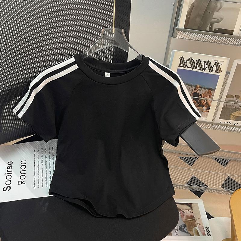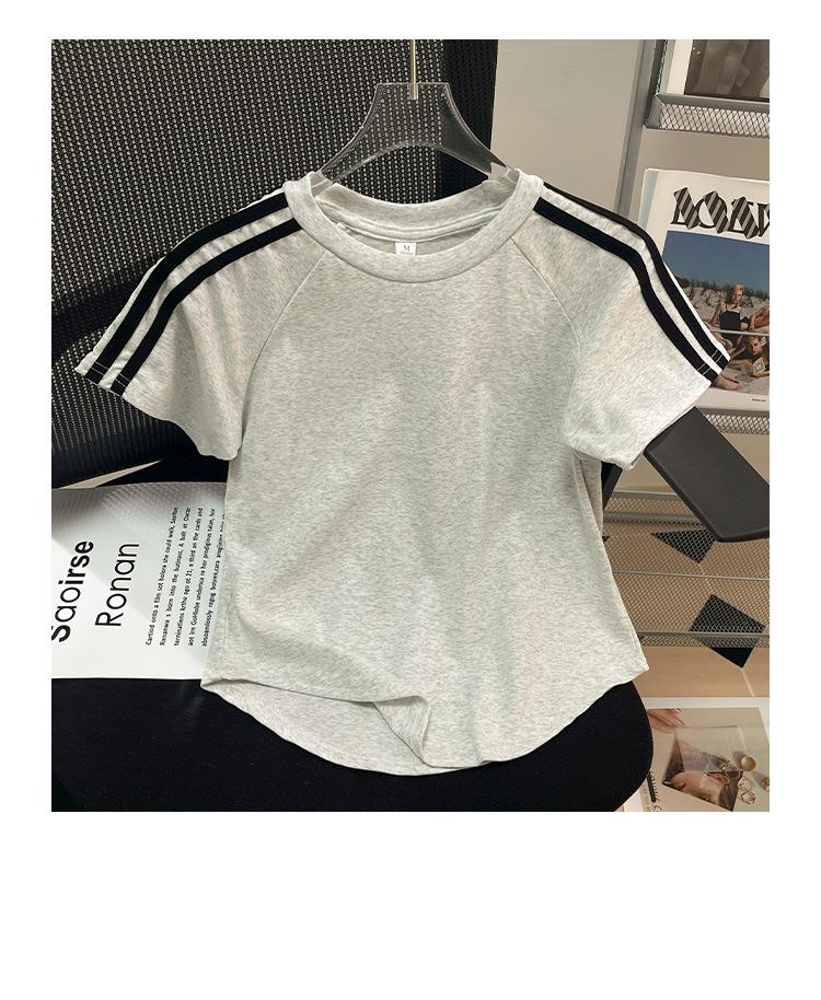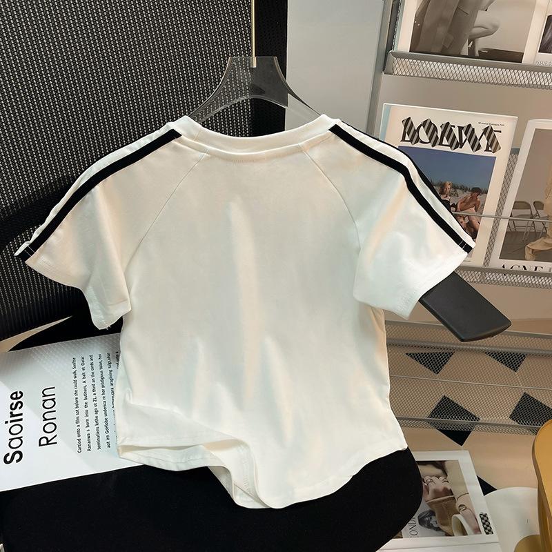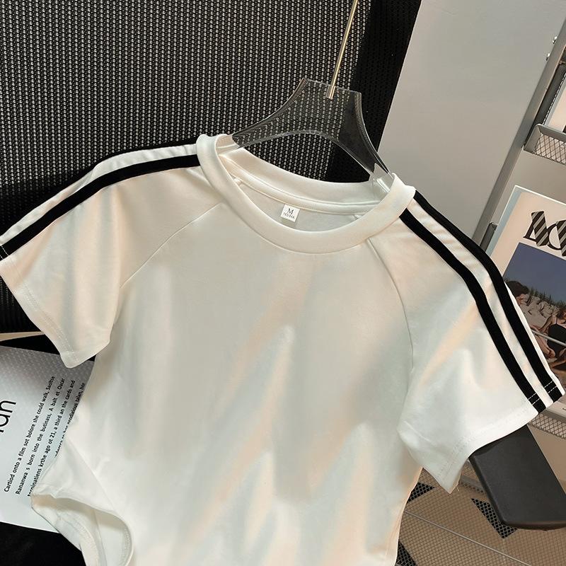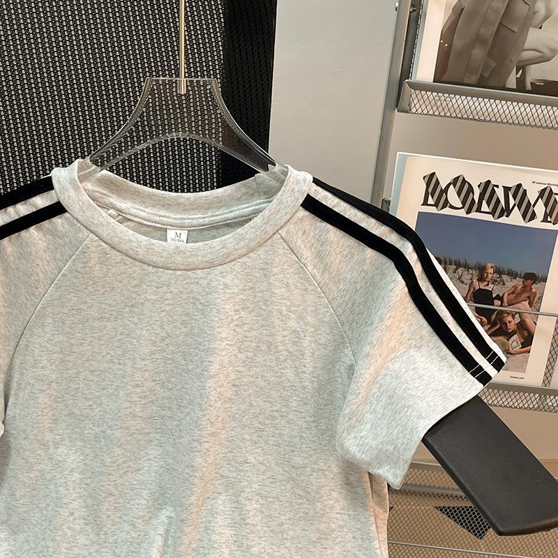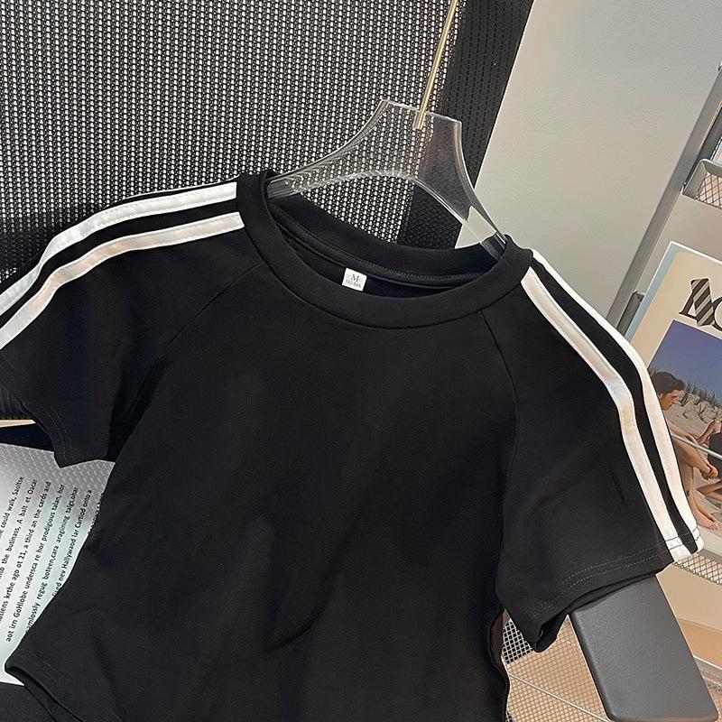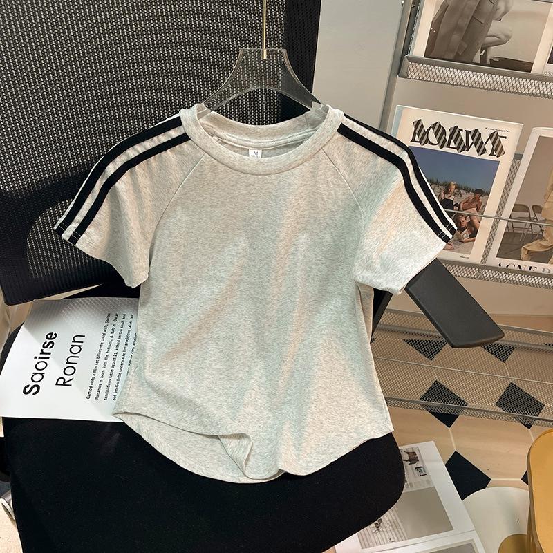2025 Nueva Popular Verano Algodón Puro Manga Corta Camiseta para Mujer Marca de Moda Ins Chic de Alta Gama Top de Tres Rayas de Media Manga