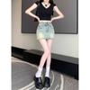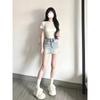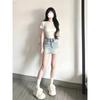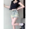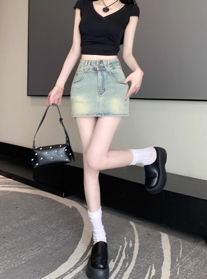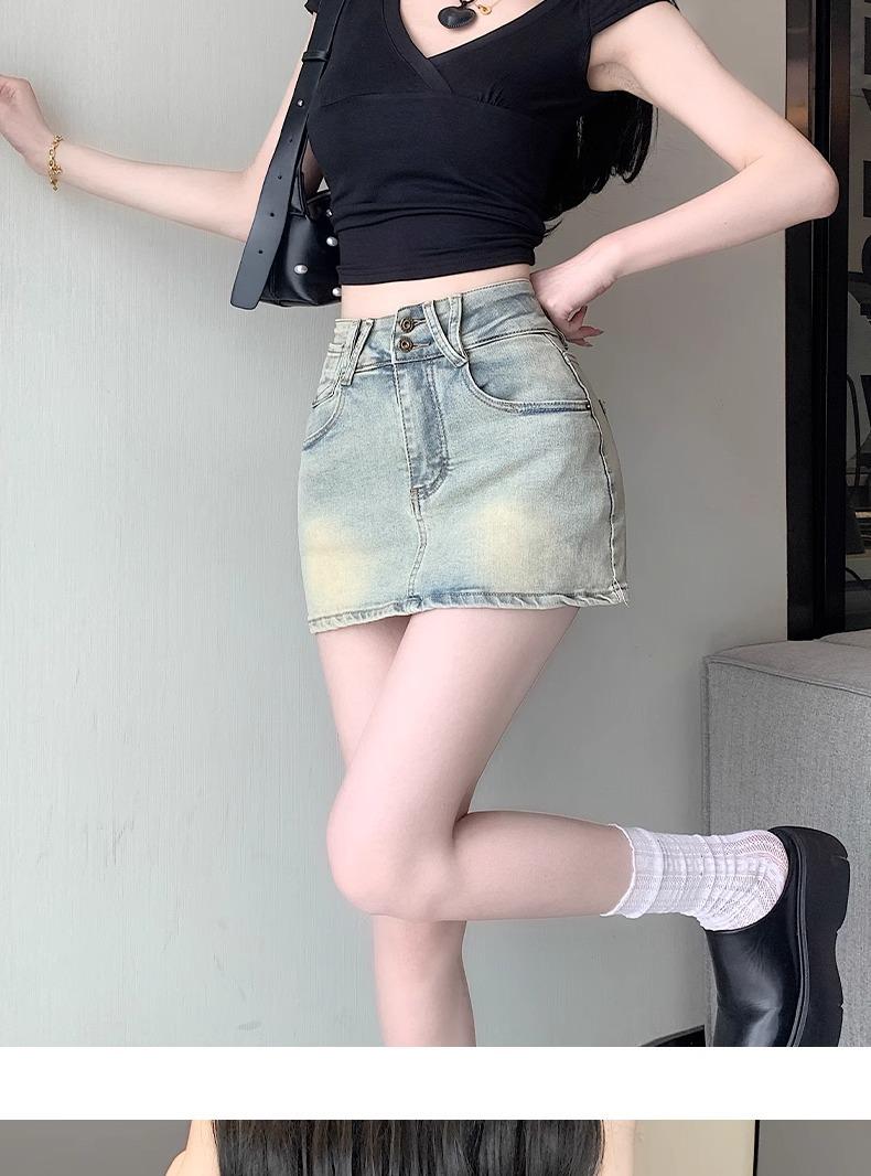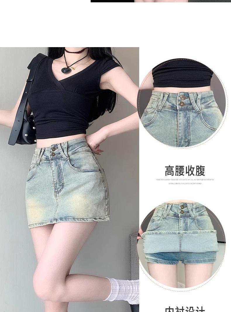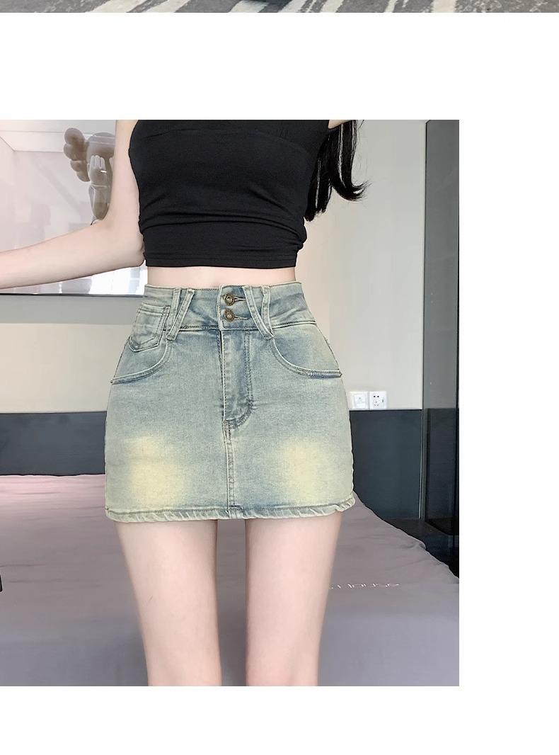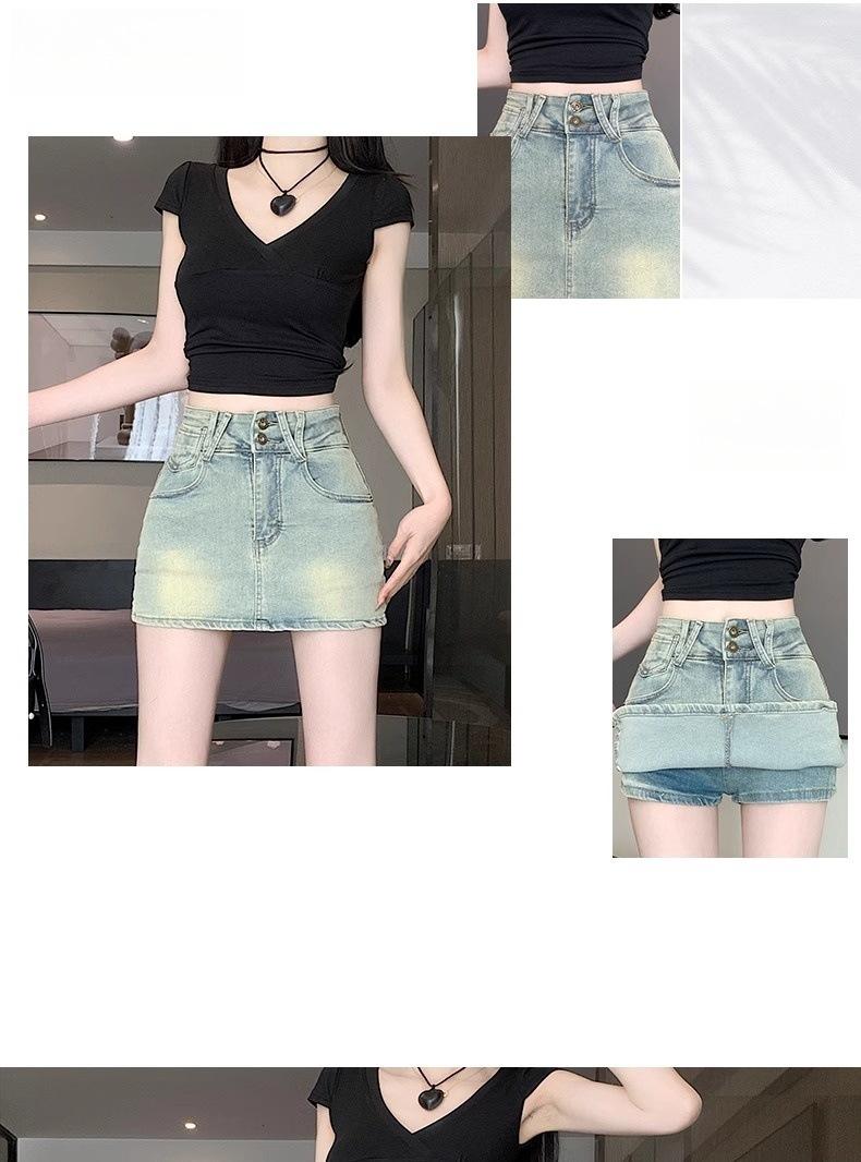 Falda de mezclilla de talle alto de talla grande para mujer 2025 Verano Nueva mm gorda Sexy Sexy Antiexposición Cadera Falda corta