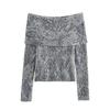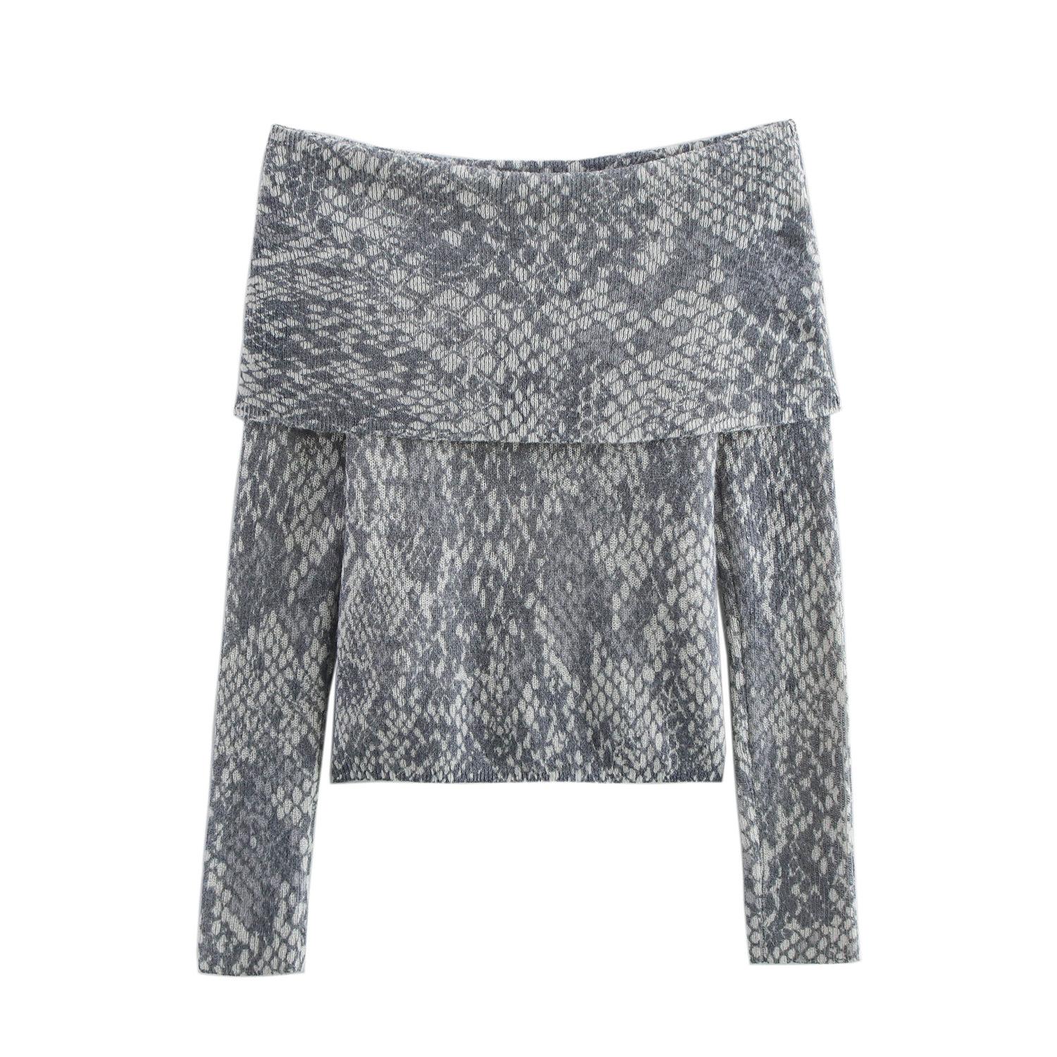 Ropa de Mujer al por Mayor para Exportación Transfronteriza 2025 Primavera y Verano Estilo Europeo y Americano Jacquard Animal Tejido de Punto con Hombros Descubiertos Tops para Mujer E3461