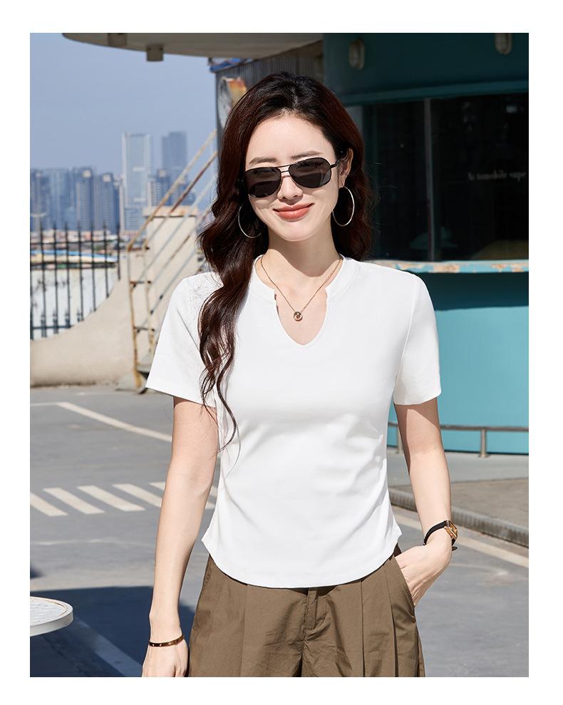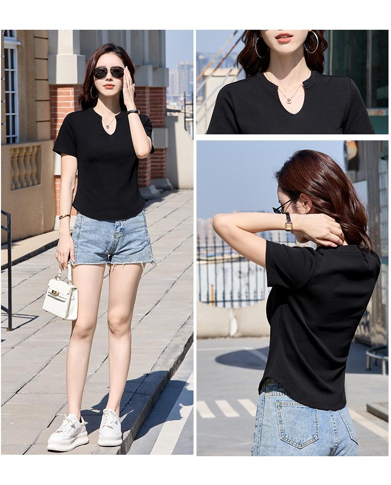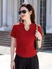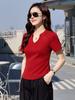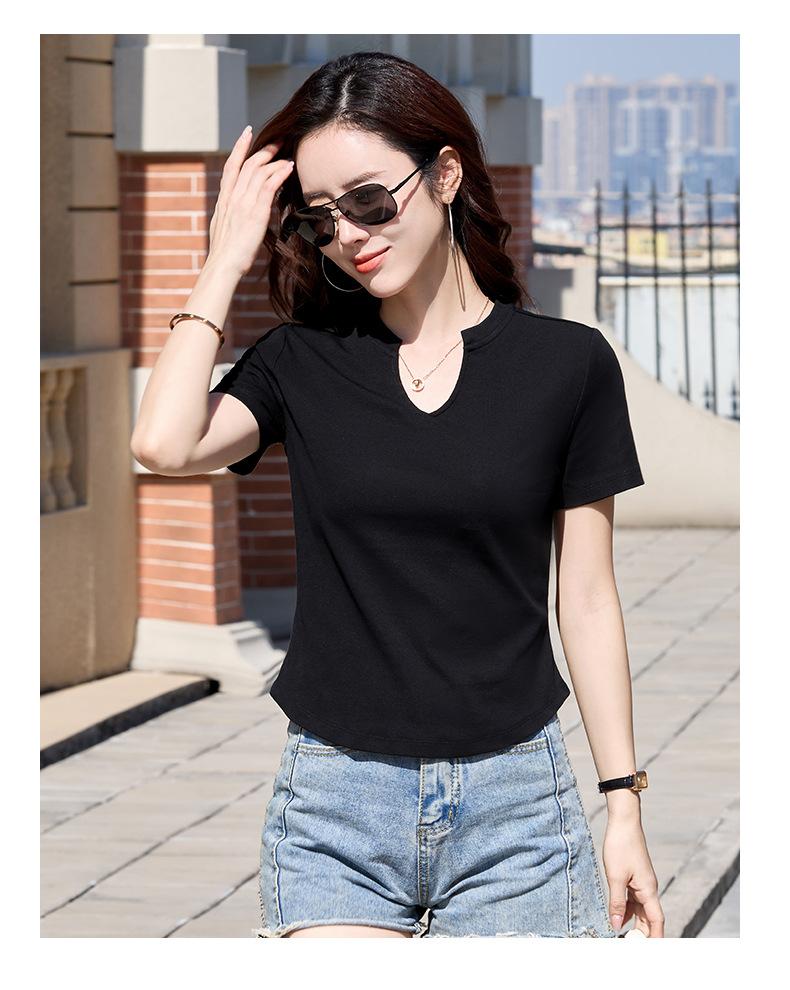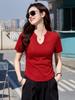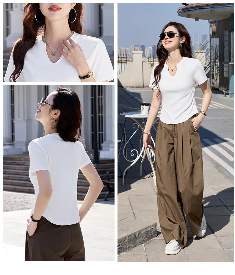Camiseta de Manga Corta para Mujer 2025 Nueva Cuello en V Ropa Pequeña de Mujer Moda Combinable Ajustada Cintura Alta Top de Mujer