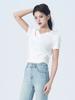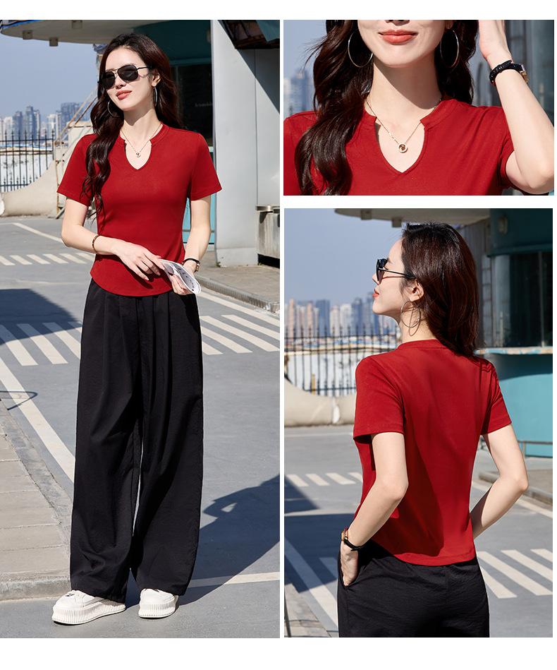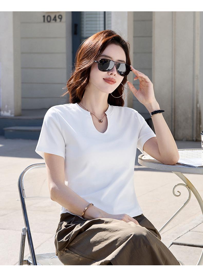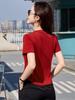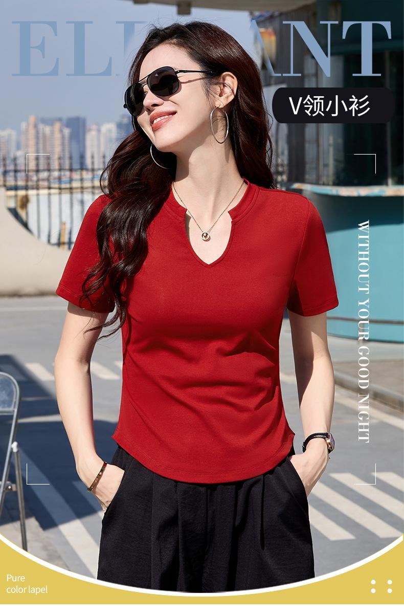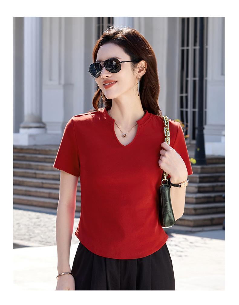 Camiseta de Manga Corta para Mujer 2025 Nueva Cuello en V Ropa Pequeña de Mujer Moda Combinable Ajustada Cintura Alta Top de Mujer