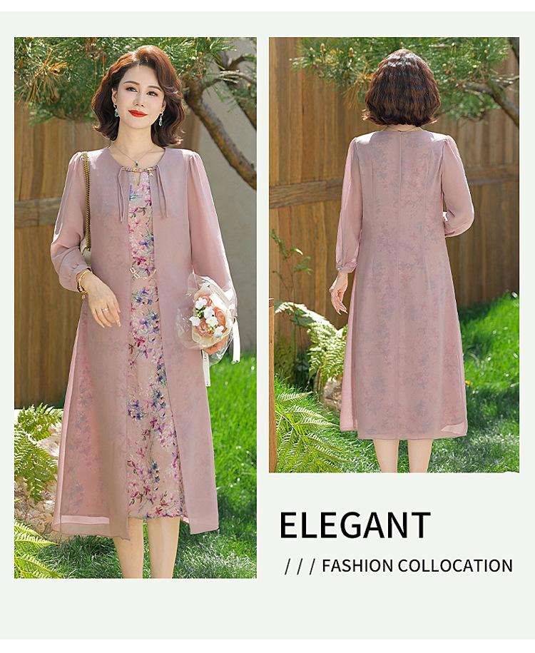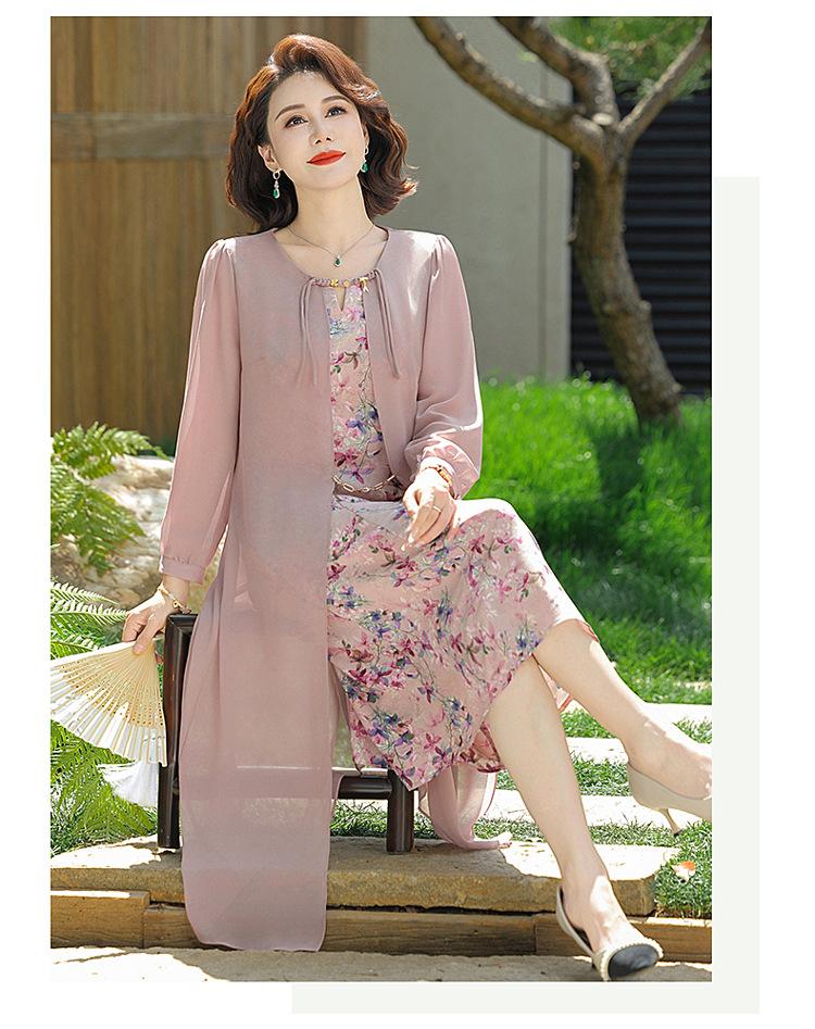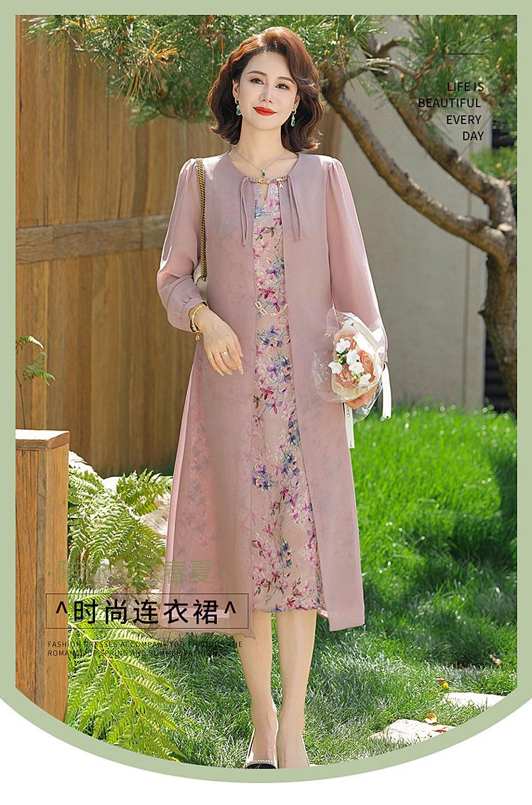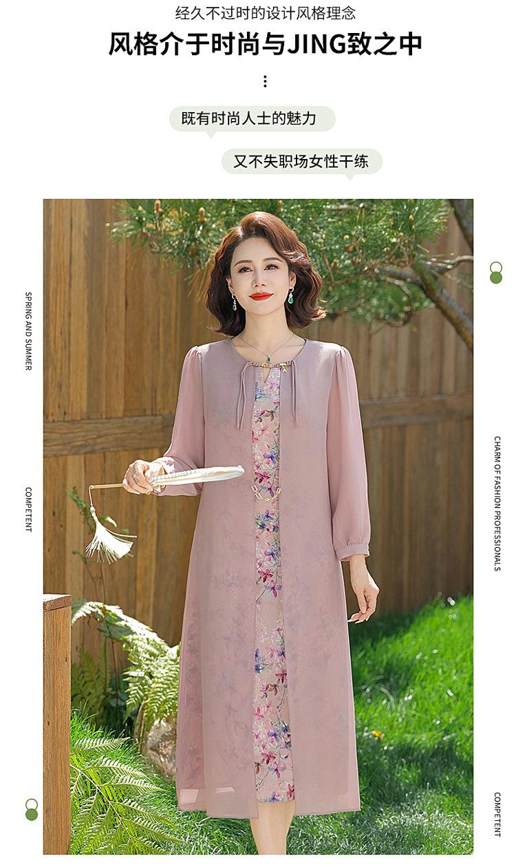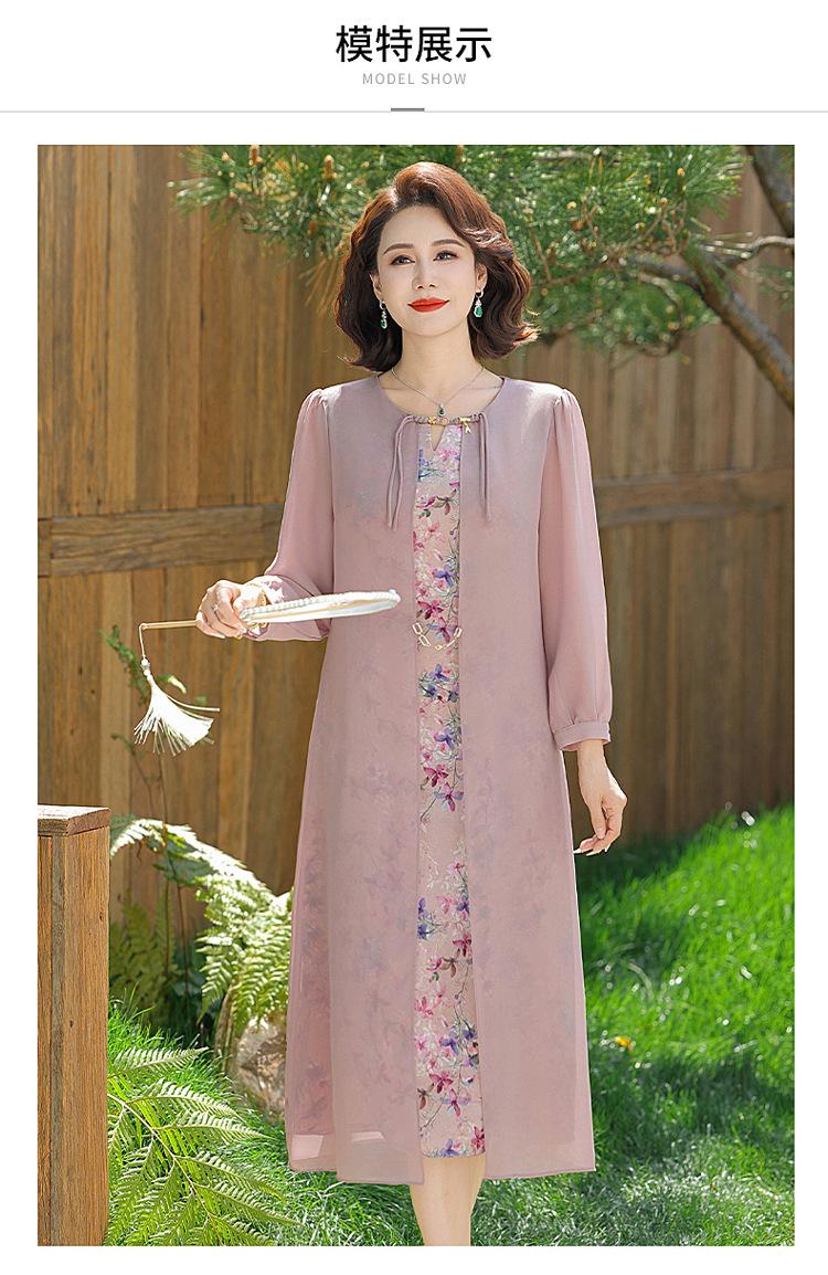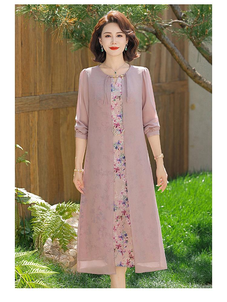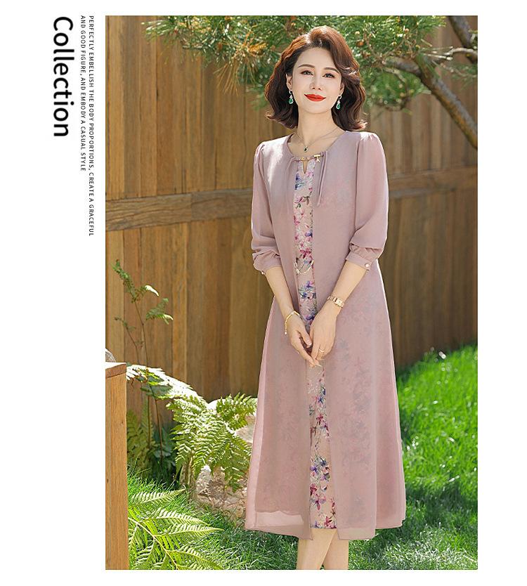 Vestido de gasa para mamá verano nuevo 40 años 50 mediana edad noble señora rica suelto vientre falso falda de dos piezas