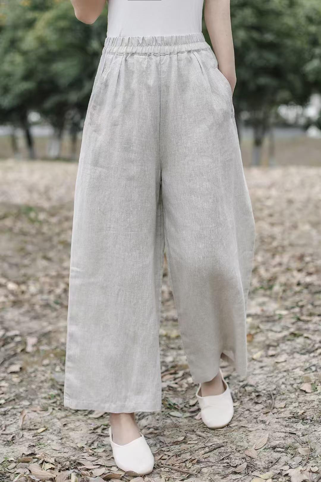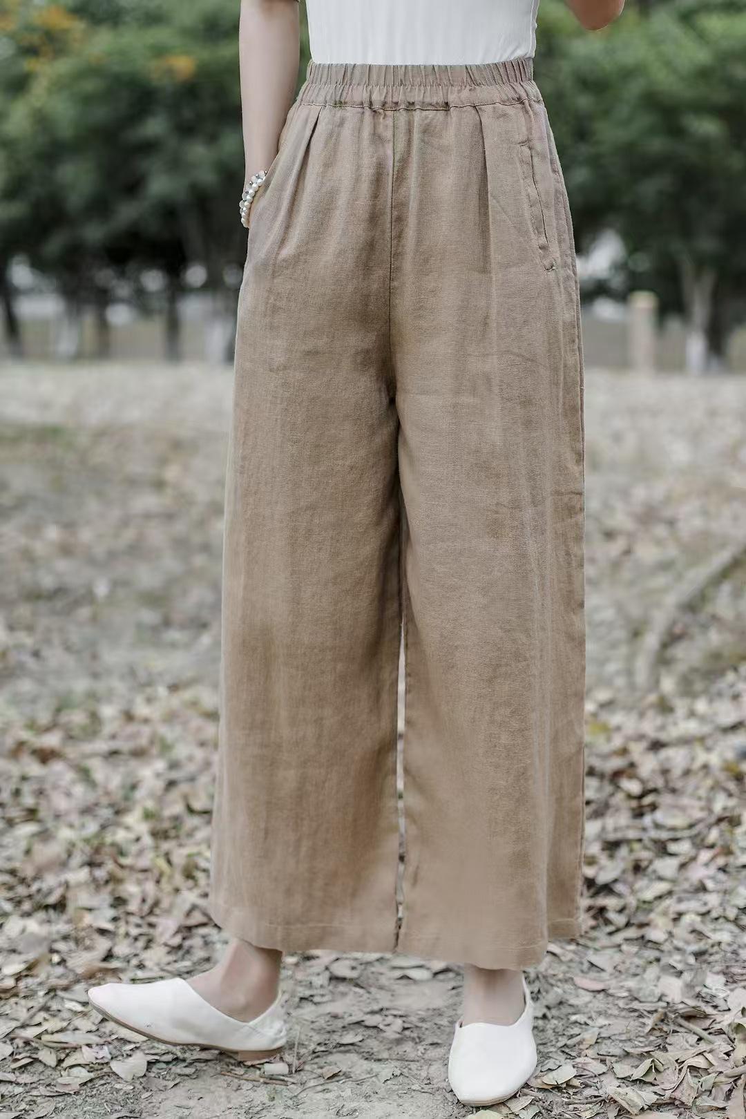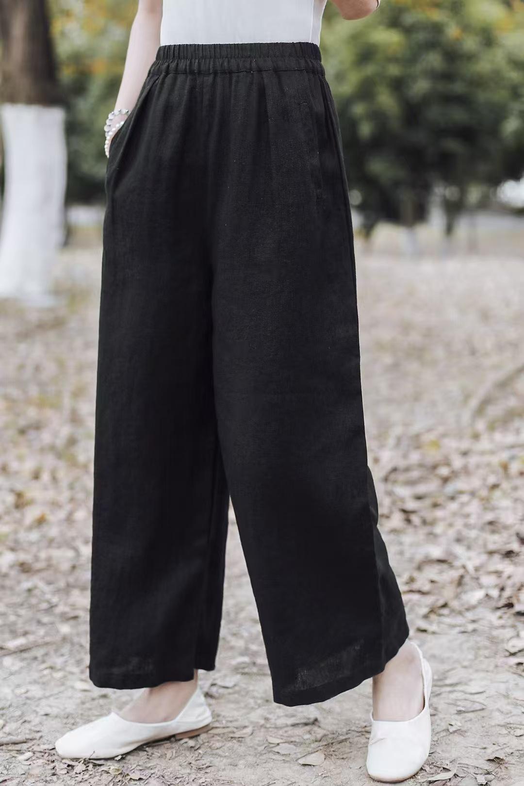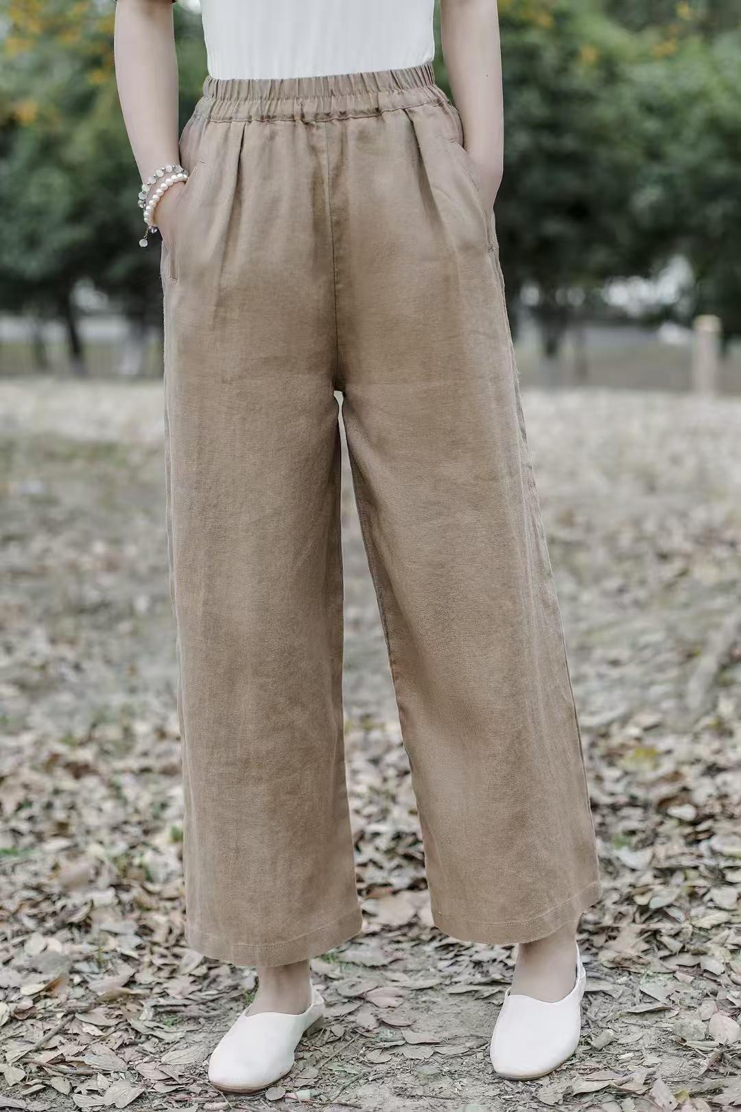 Pantalones anchos de lino sueltos artísticos nuevos de Primavera y Verano 2025 para mujer
