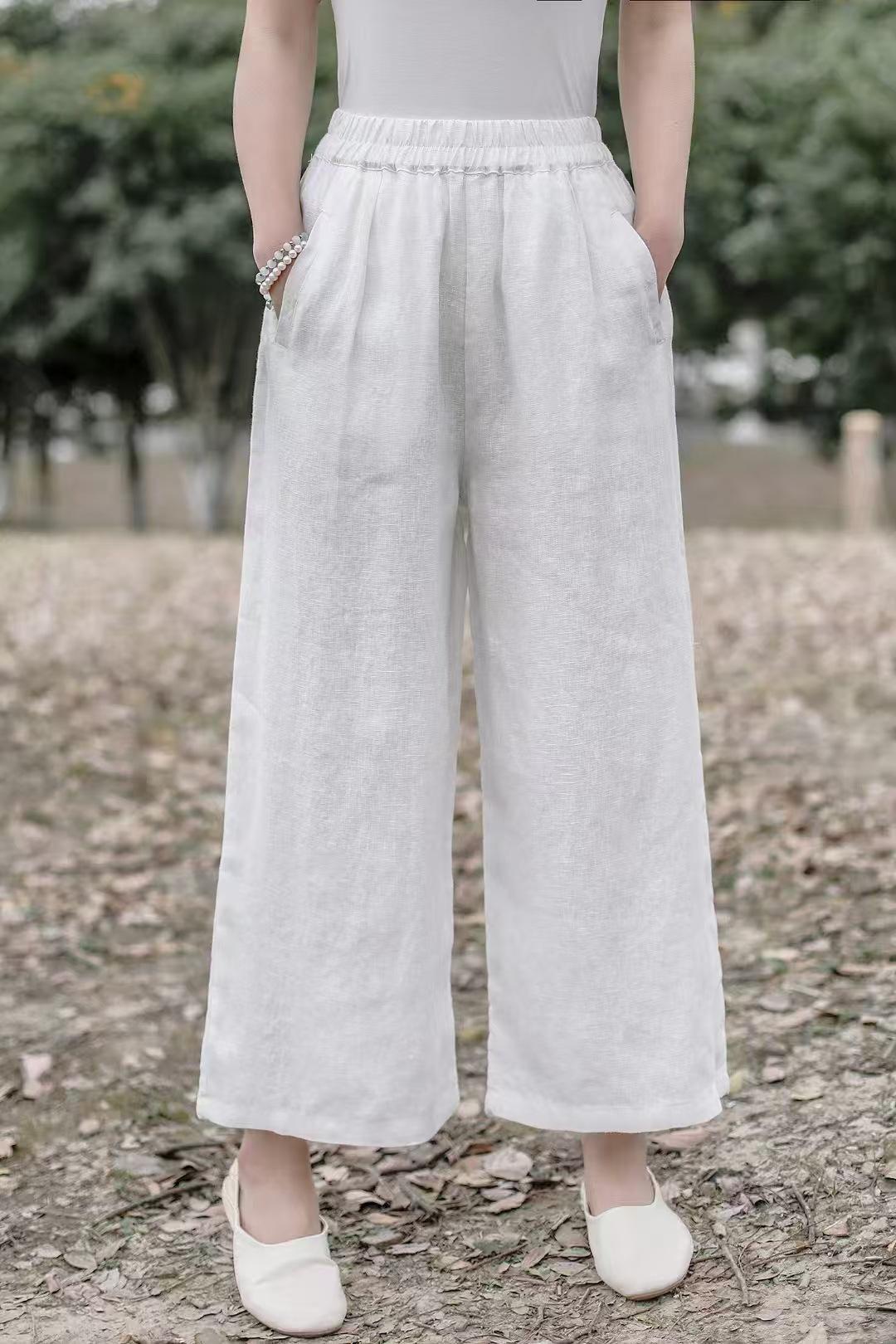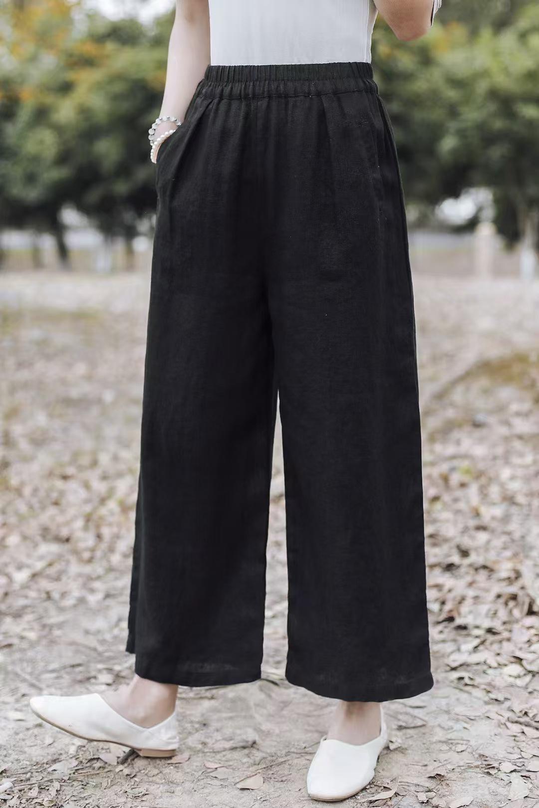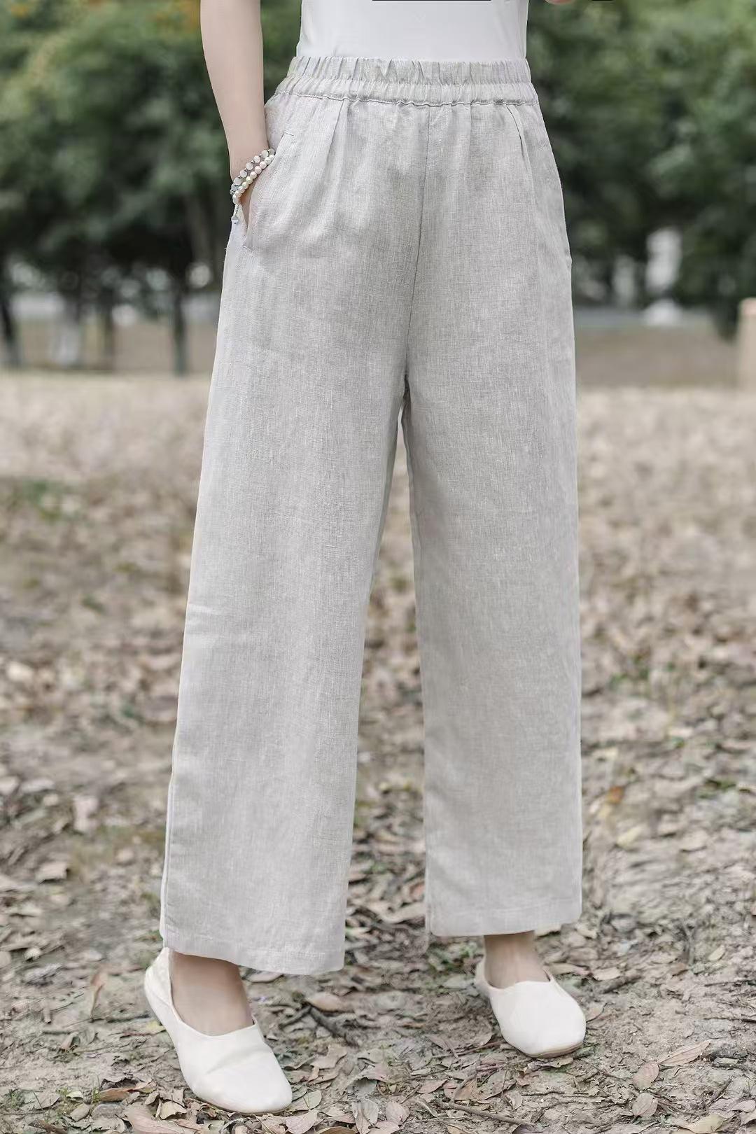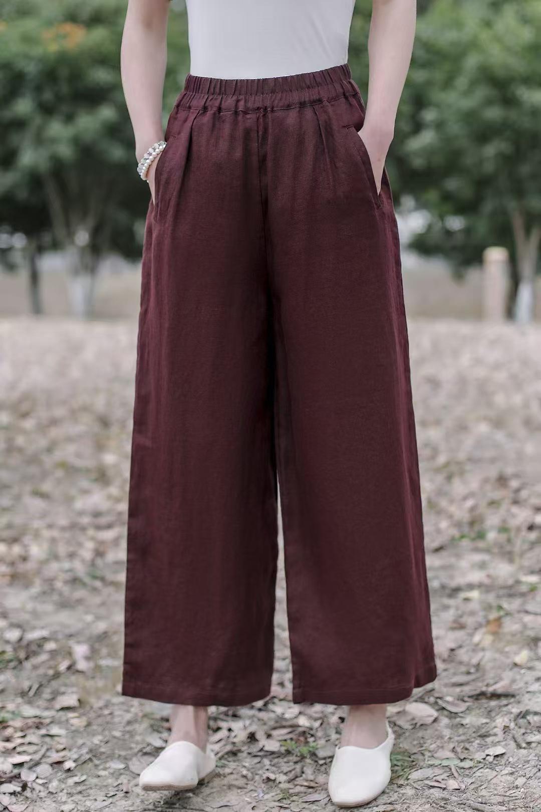 Pantalones anchos de lino sueltos artísticos nuevos de Primavera y Verano 2025 para mujer