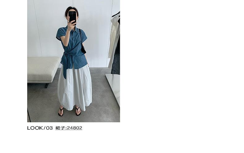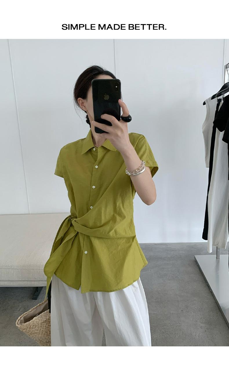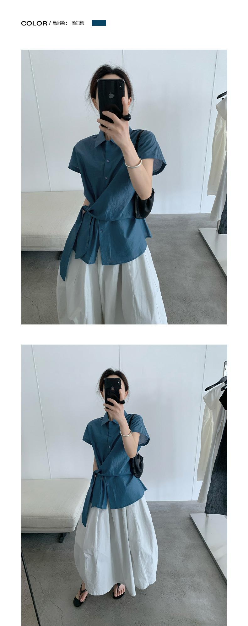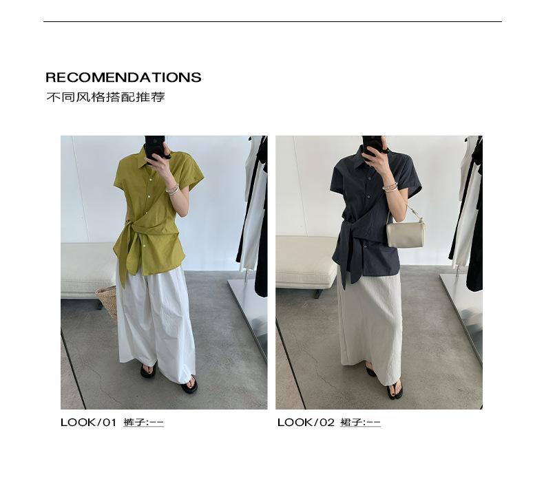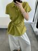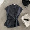 Tg Diseño Elegante Laterales con Tiras Afinado de Cintura Camisa para Mujer 2025 Verano Nuevo Top Manga Murciélago 24864