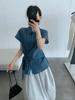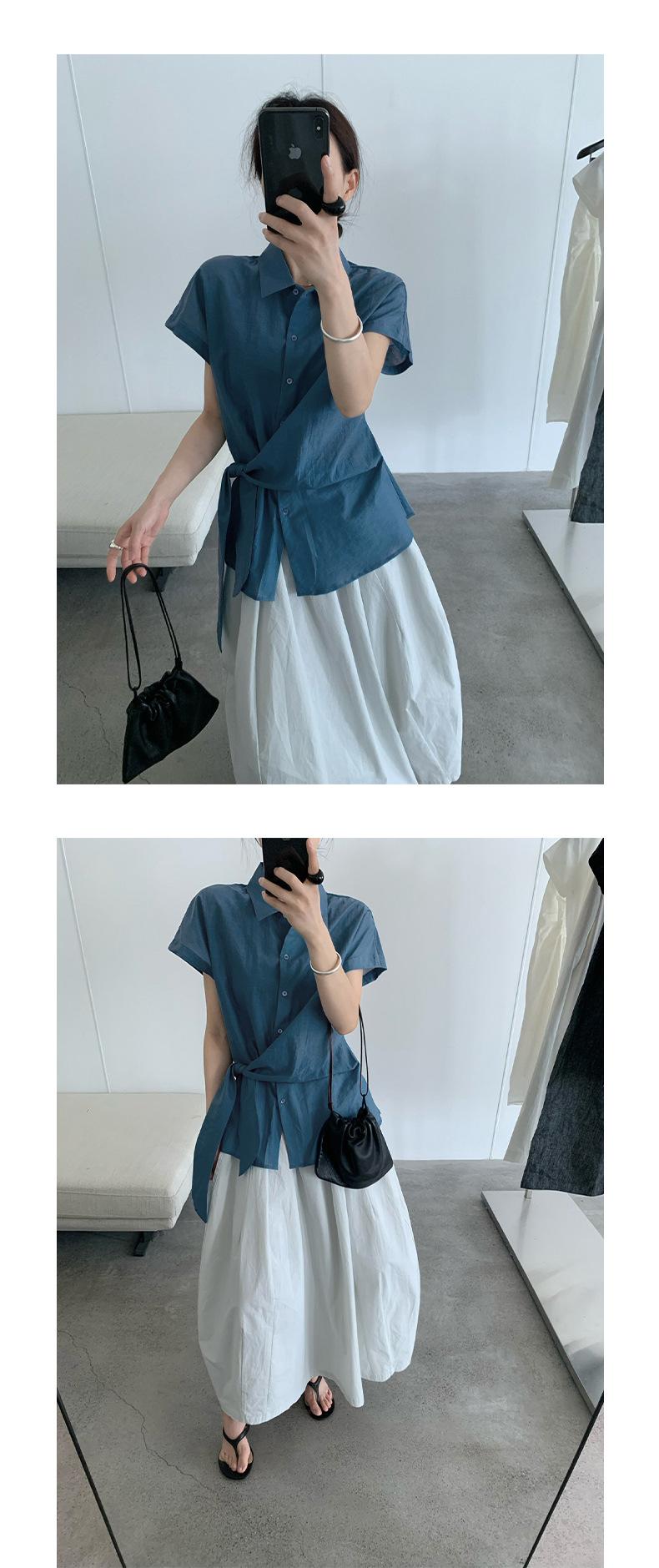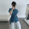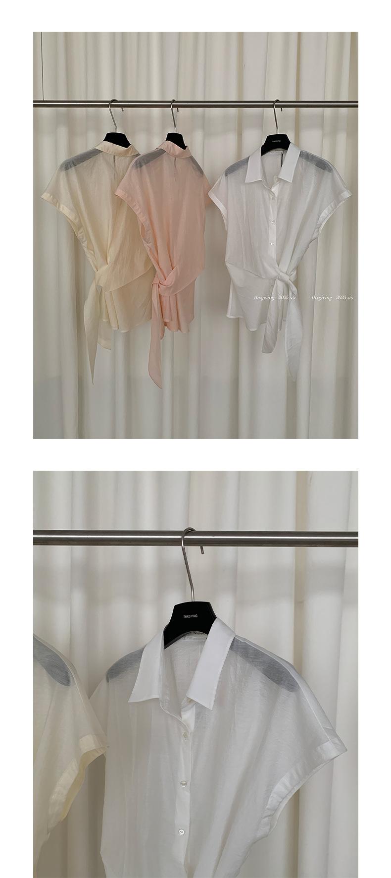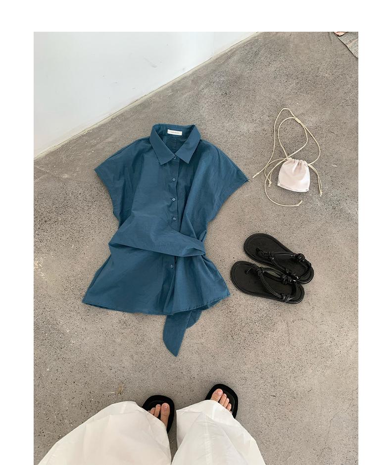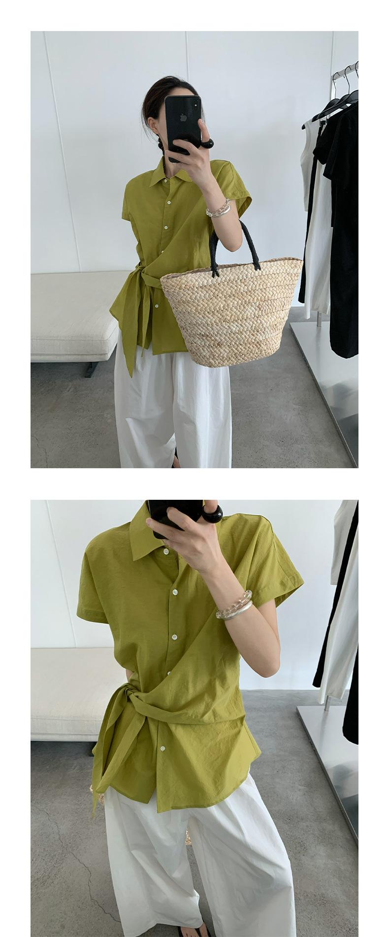 Tg Diseño Elegante Laterales con Tiras Afinado de Cintura Camisa para Mujer 2025 Verano Nuevo Top Manga Murciélago 24864