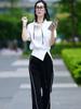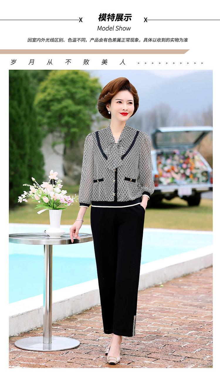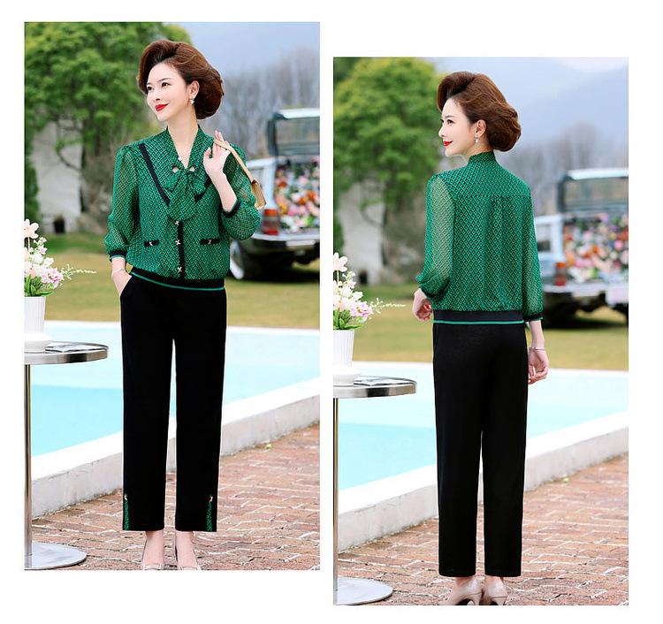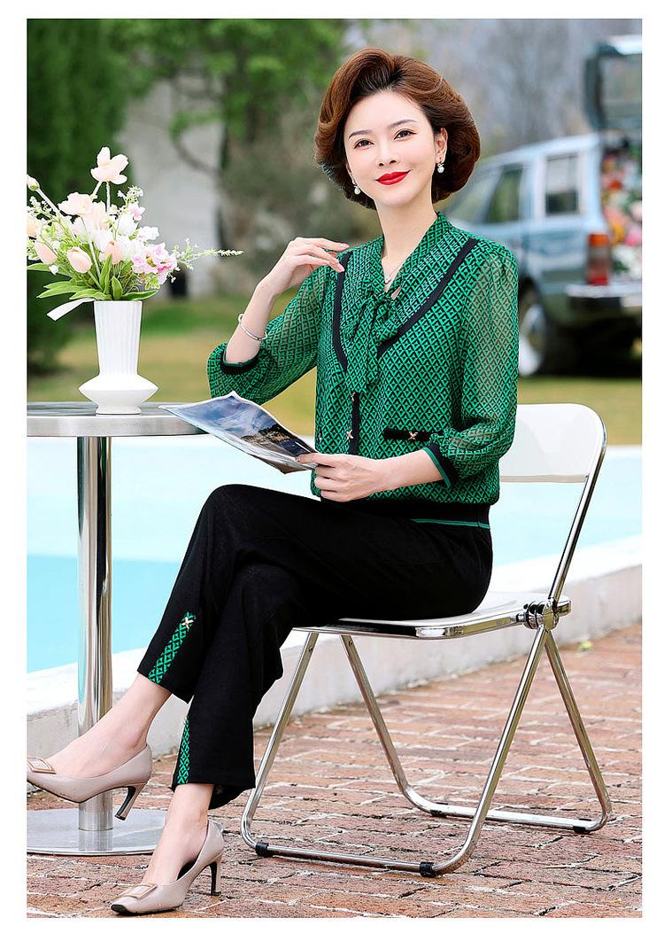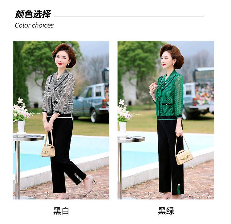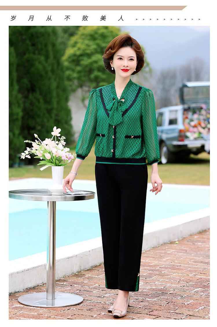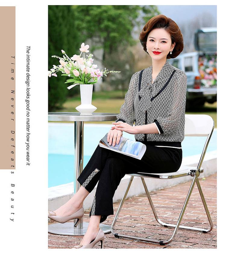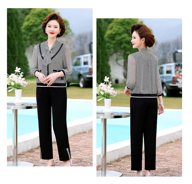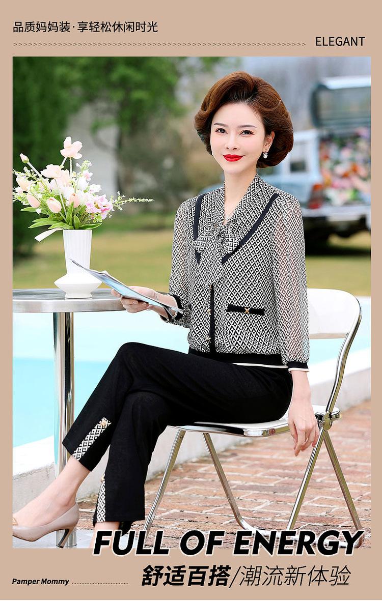 Verano Nuevo Traje Holgado de Mamá Camiseta Base Versátil Elegante Top de Mujer Camiseta de Manga Larga Conjunto de Dos Piezas