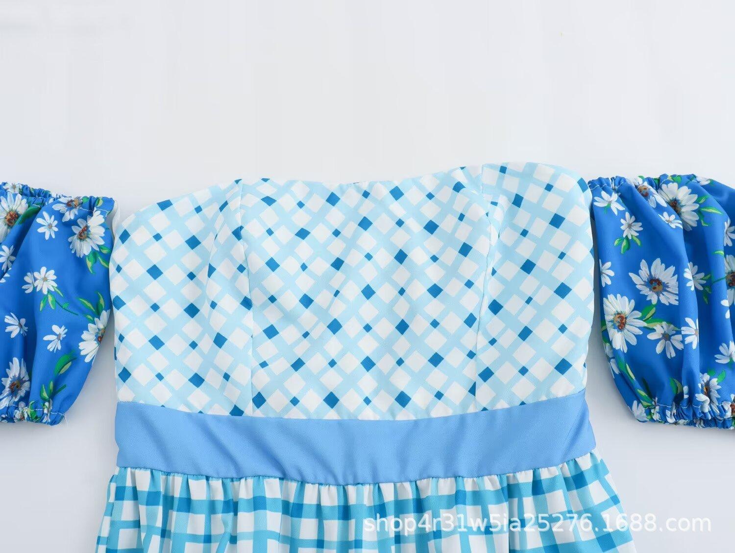 Ropa de Verano Nueva para Mujer Europea y Americana 2024 Vestido Tubo de Top de Manga Corta con Cuello de un Hombro Estampado con Posicionamiento Retro Francés al por Mayor