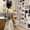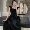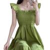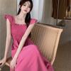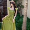 Vestido Plisado Estilo Francés Primavera y Verano Nuevo Estilo Hepburn Cuello Cuadrado Tirantes Vacaciones en la Playa