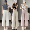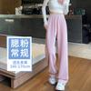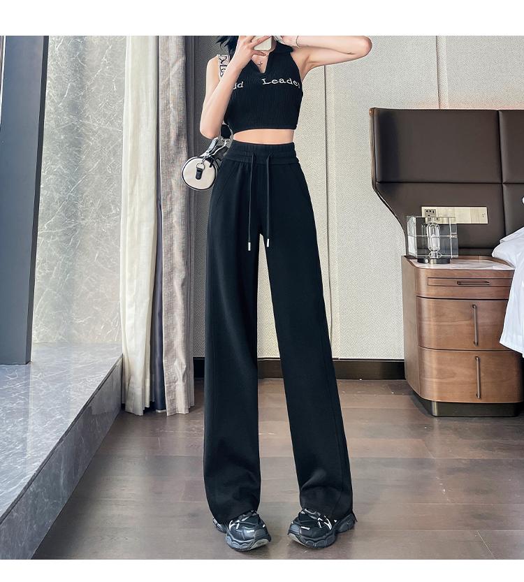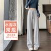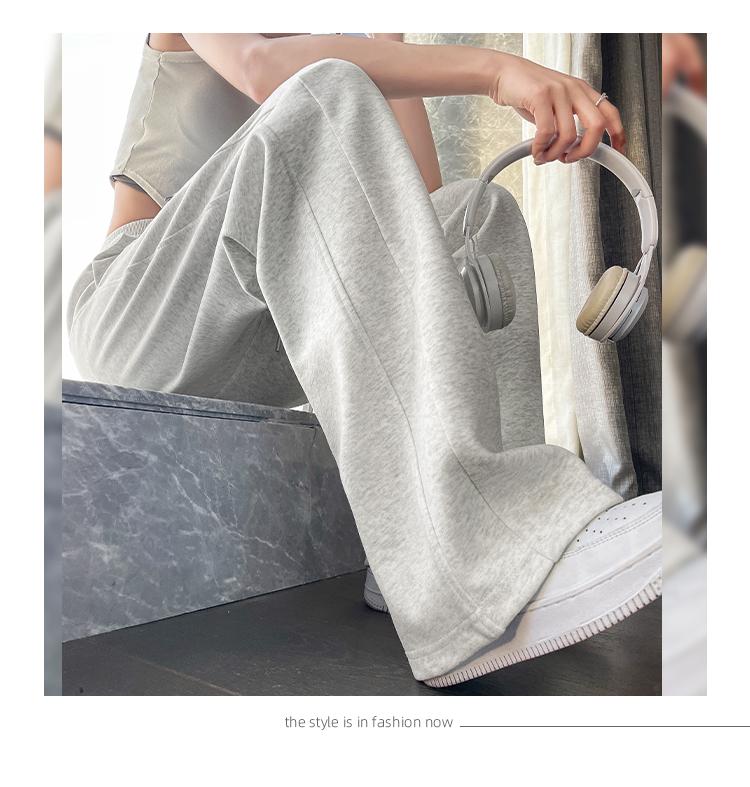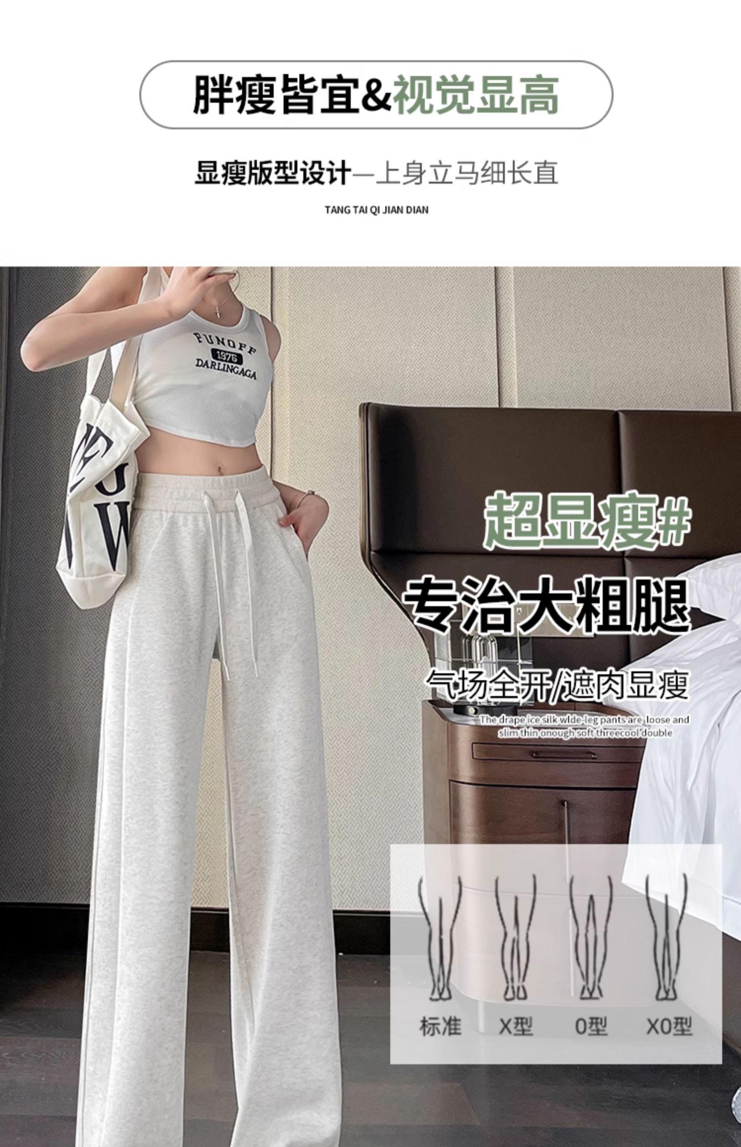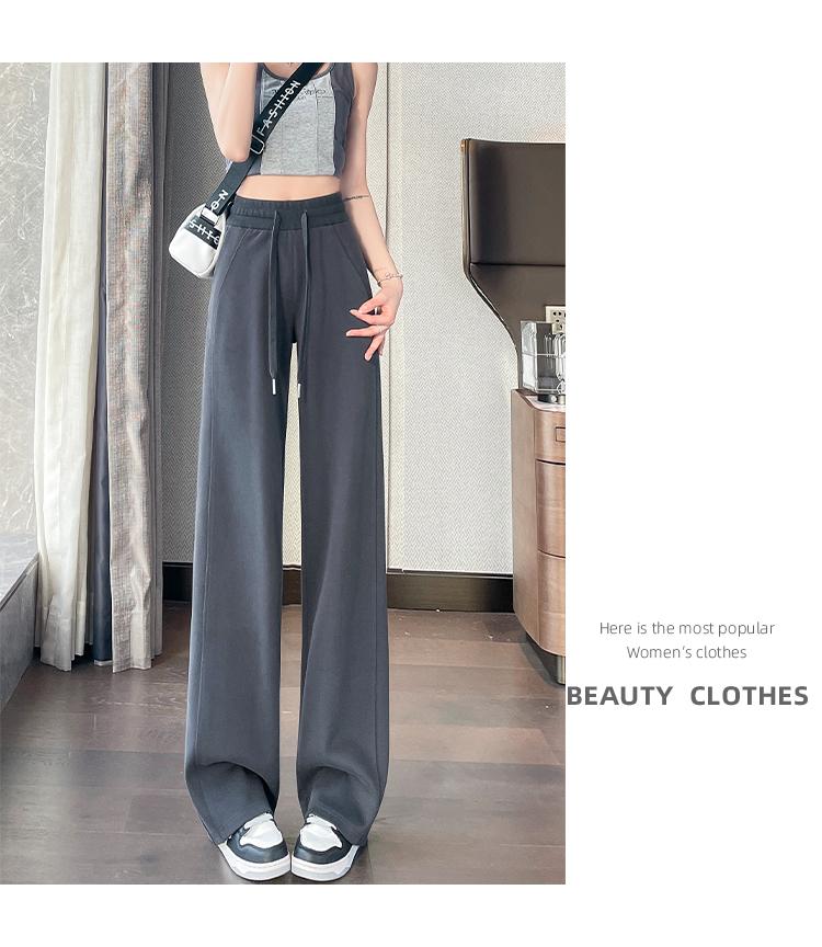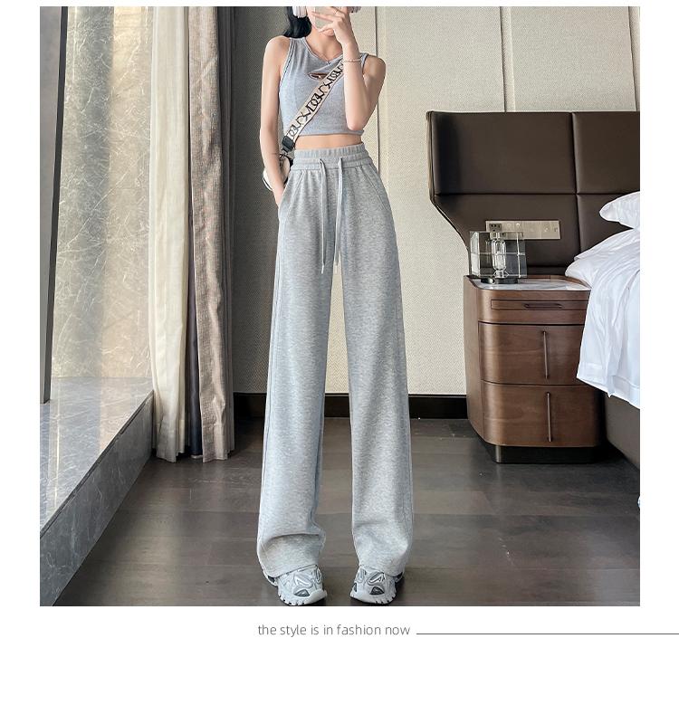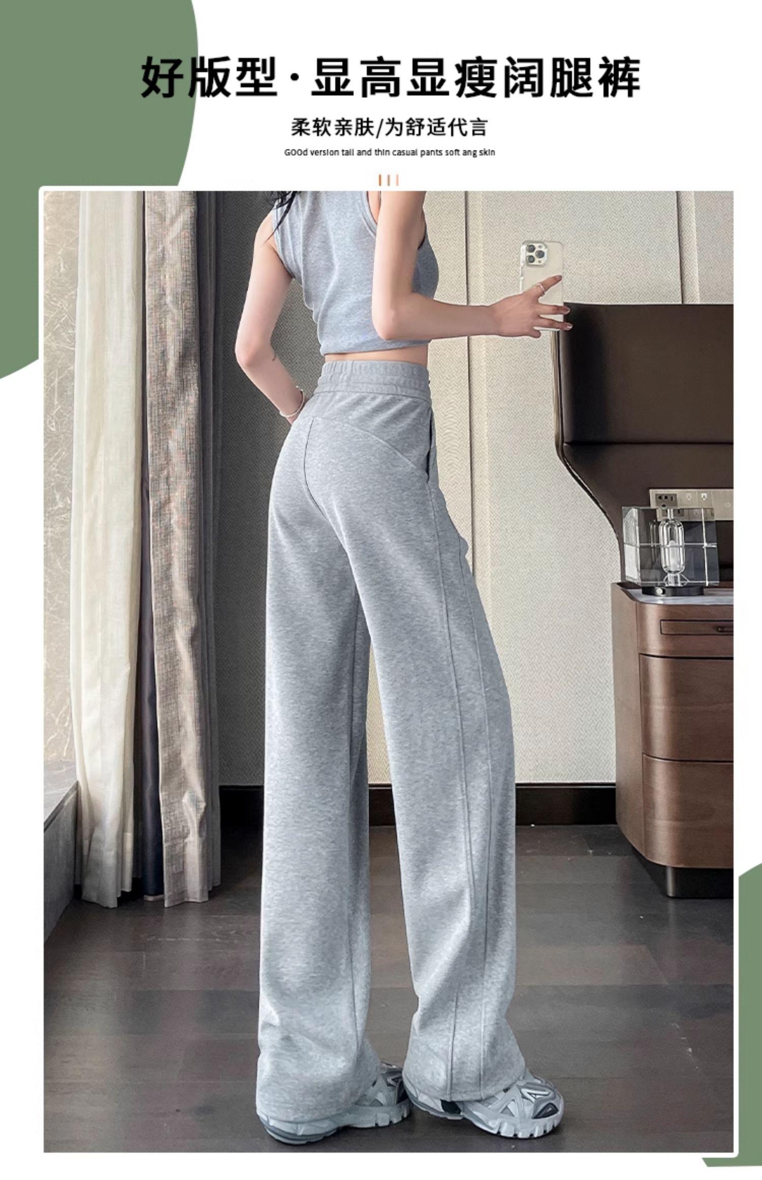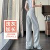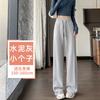 Pantalones de chándal grises para mujer para primavera, otoño y verano, delgados, estilo nuevo, holgados, de pierna ancha, rectos, de cintura alta, ajustados, informales