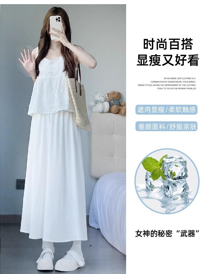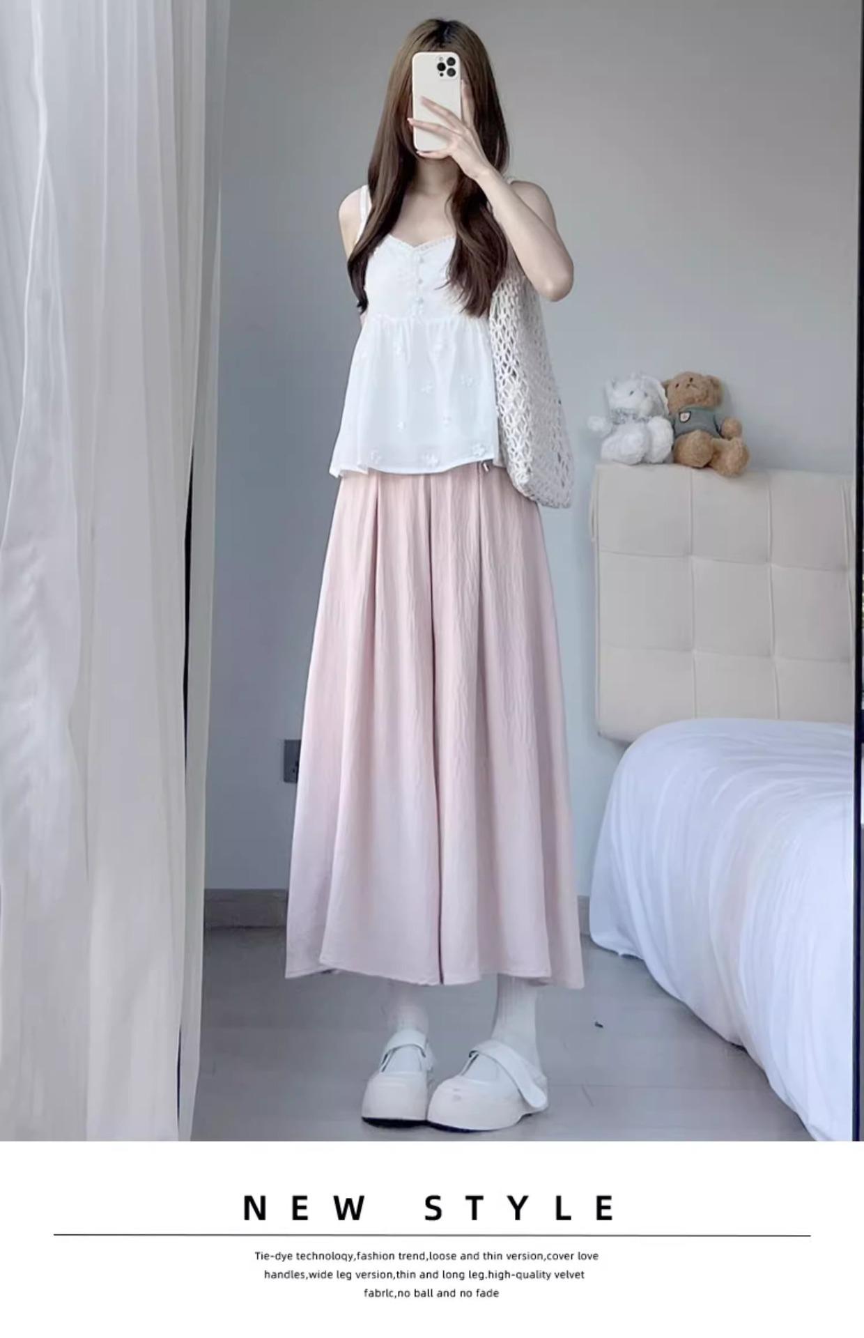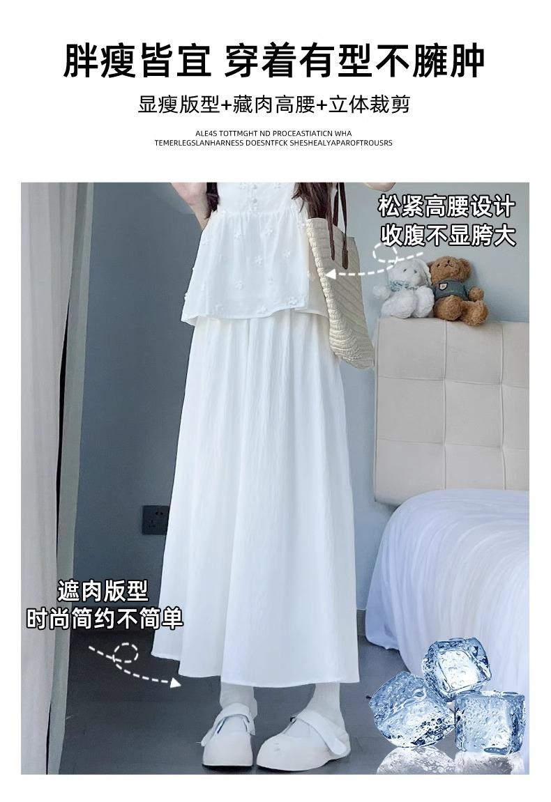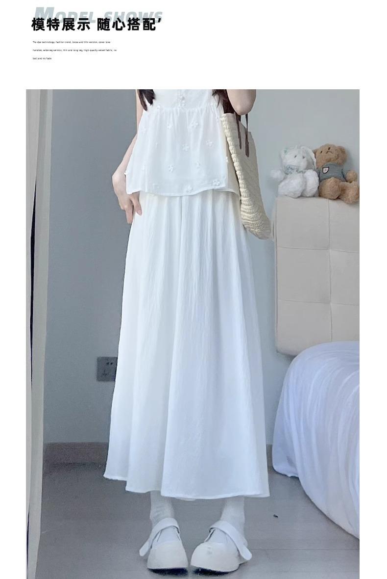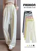 Pantalones Blancos de Seda de Hielo de Pierna Ancha para Mujer Primavera y Verano 2025 Nuevos Cintura Alta Sueltos Drapeados Casual Yamamoto Faldas Bustier