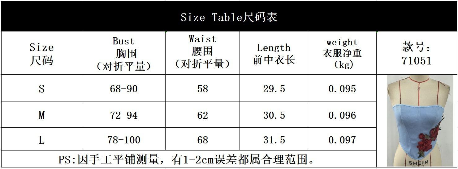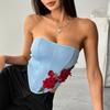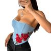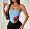 Exportación Transfronteriza Sexy Mezcla de Mezclilla Flor Rosa Envoltura de Pecho Sexy Moldeado Ballena Encaje Top 71051
