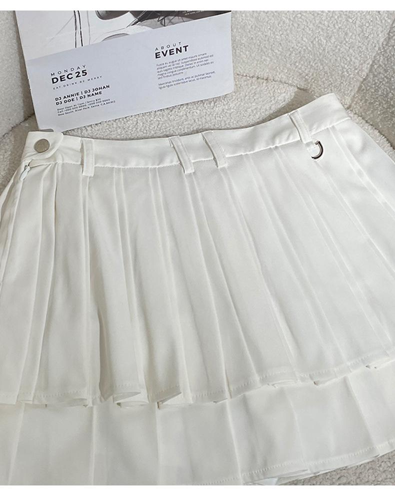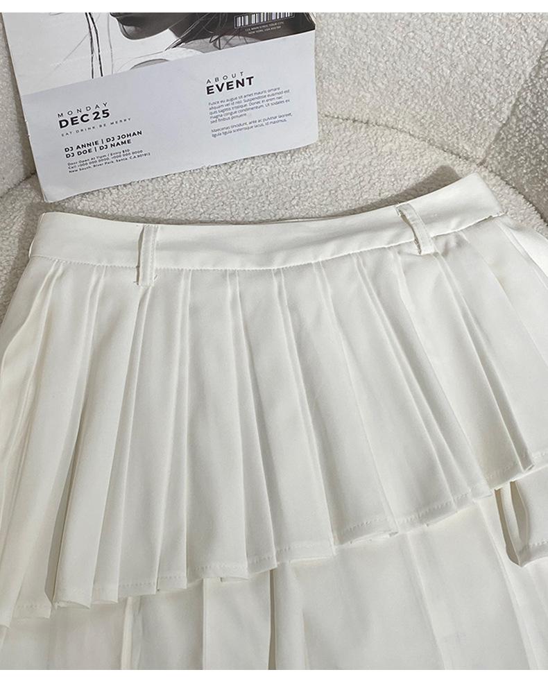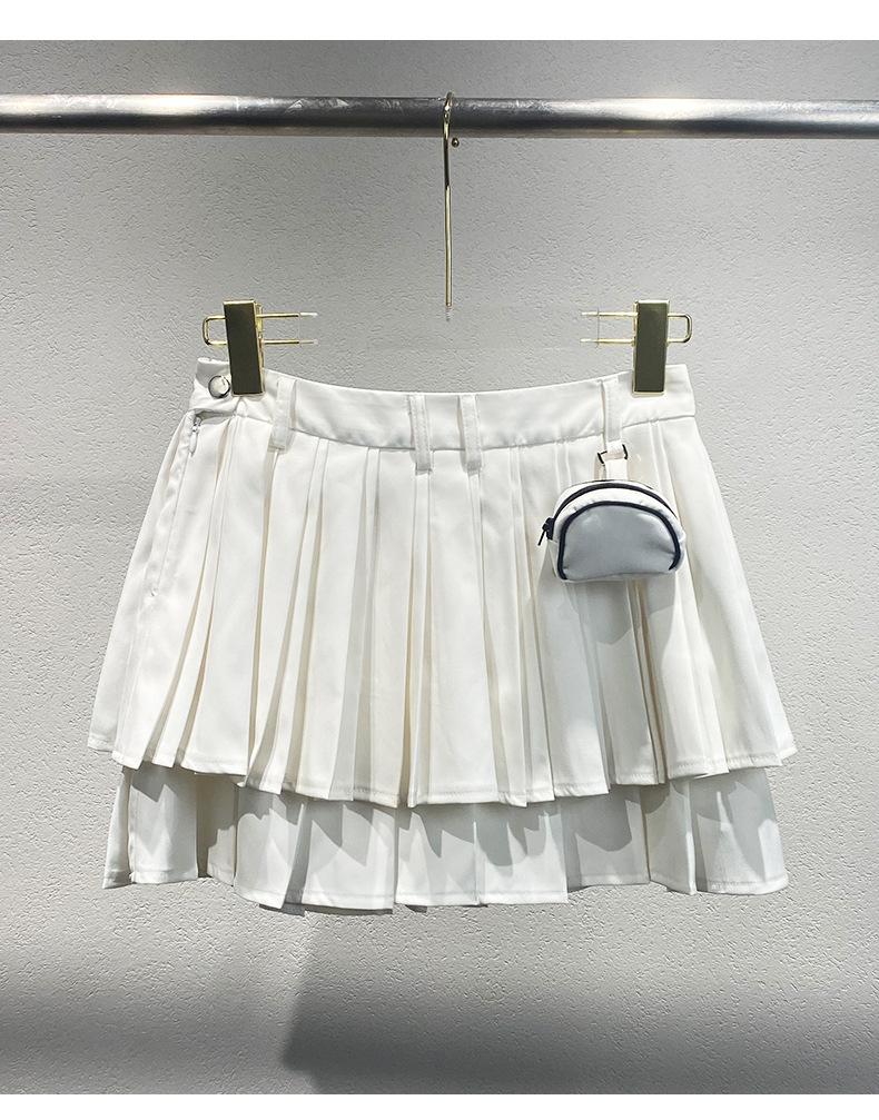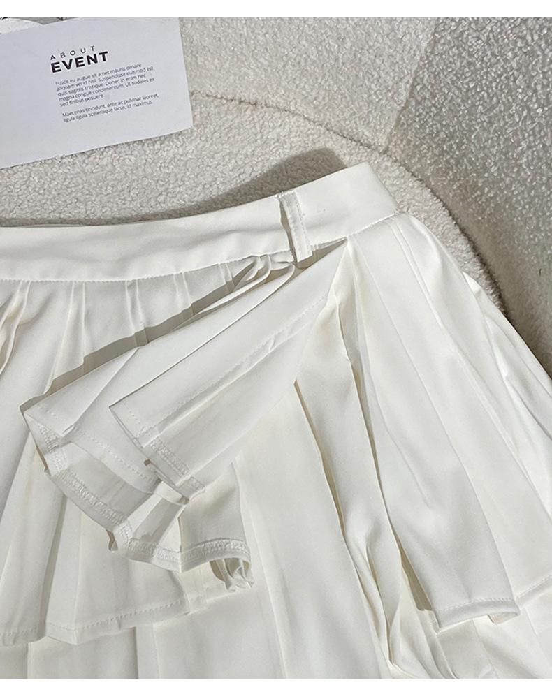 Nicho 2024 Primavera y Otoño Nuevo Color Sólido Falda Plisada Irregular con Bolsa de Bola Falda Corta para Mujer