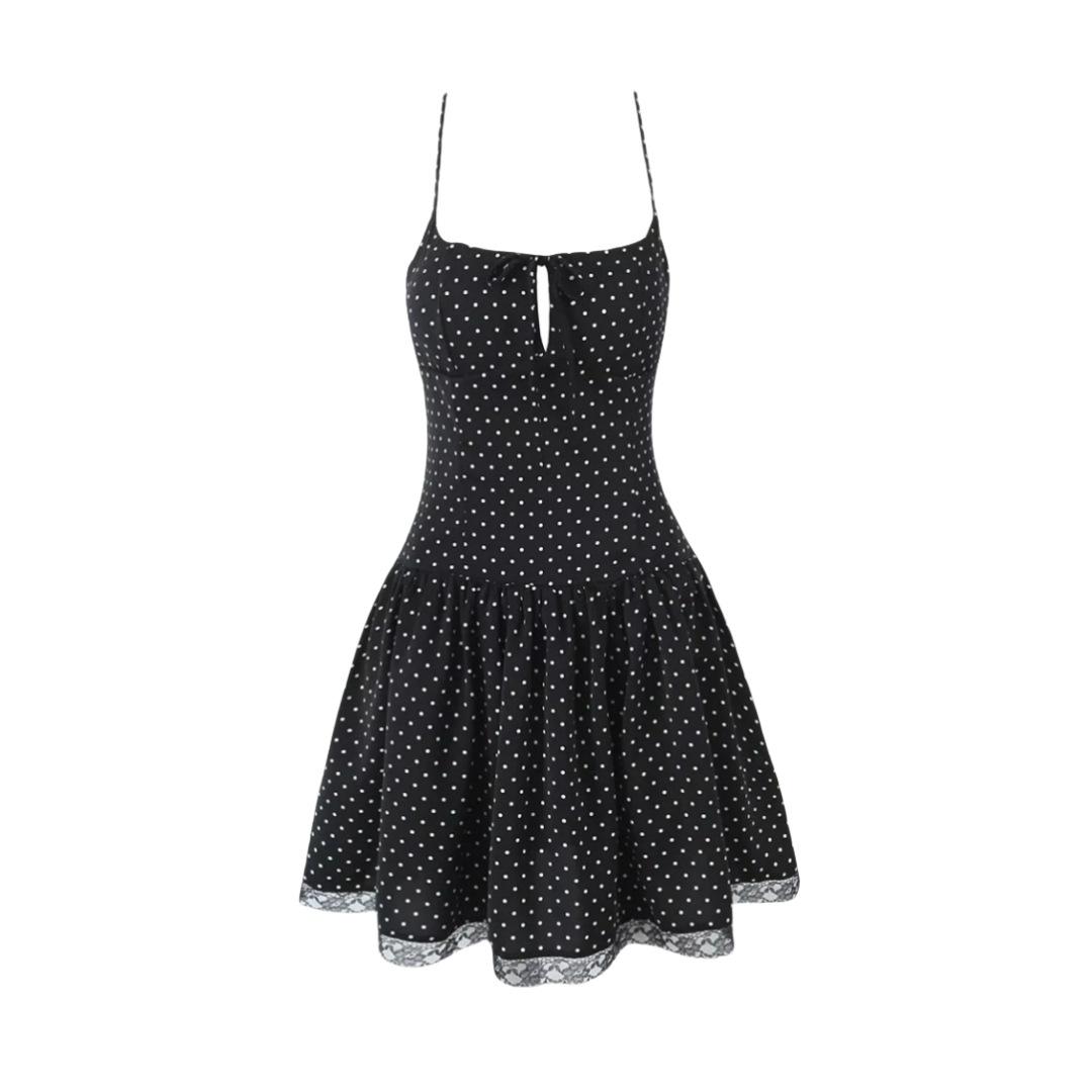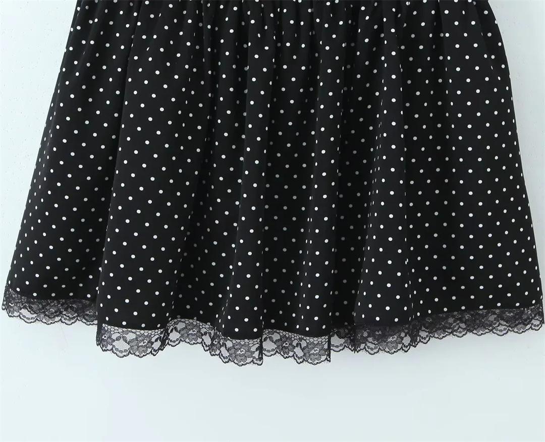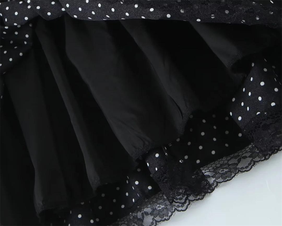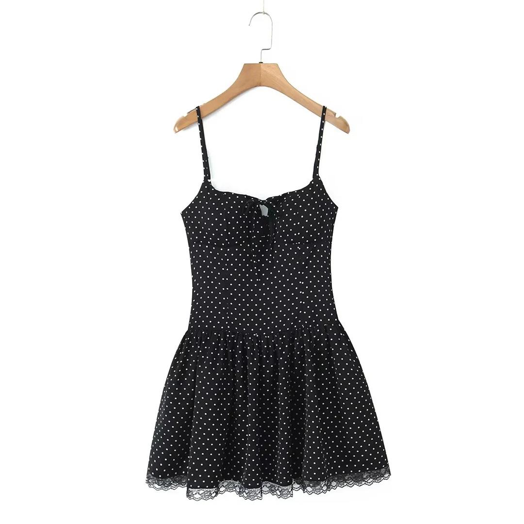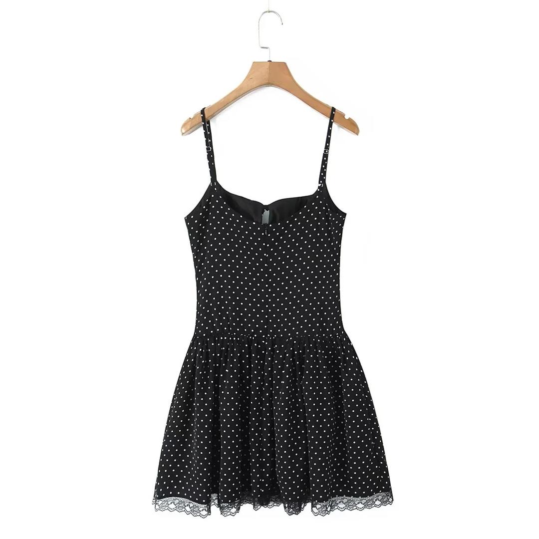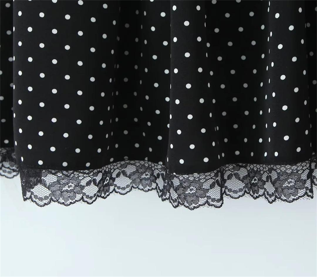 Falda de Tirantes de Lunares Europea y Americana, Pura Lujuriosa Sexy Sexy Retro Diseño Slim Empalme Encaje Vestido Pomposo