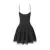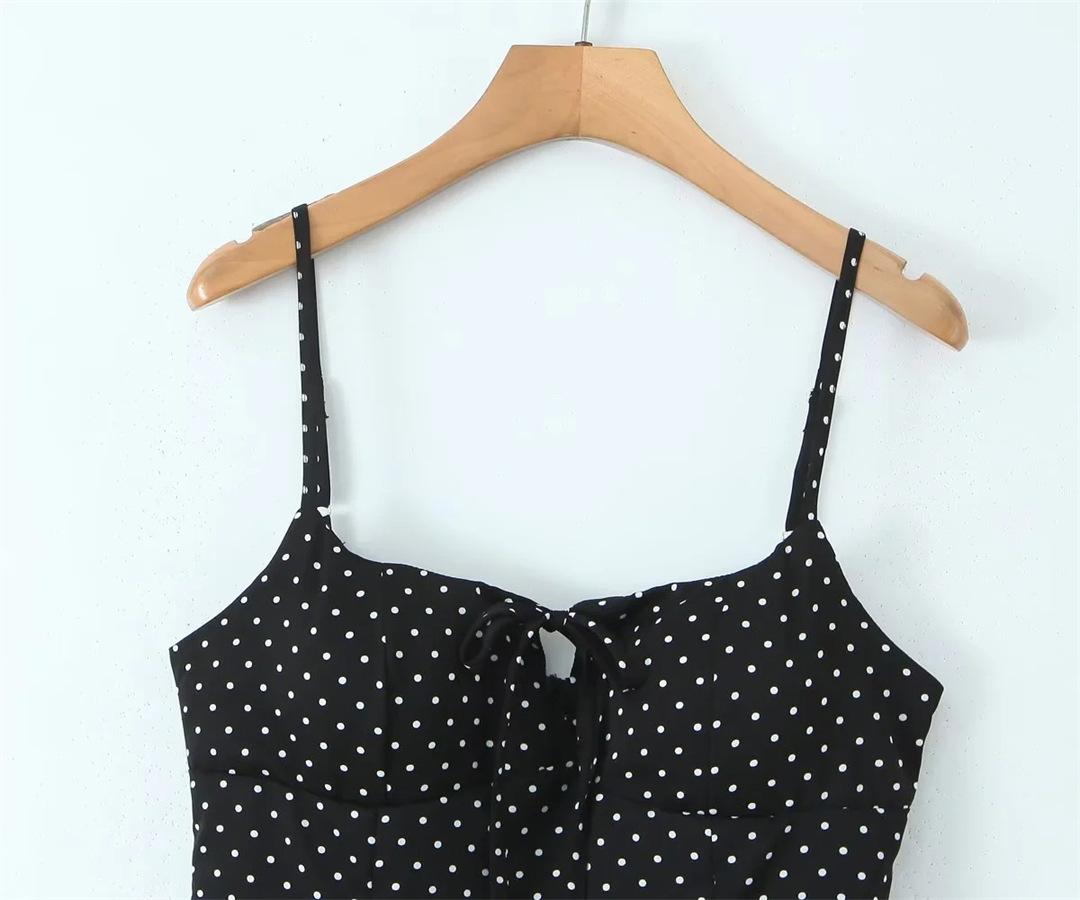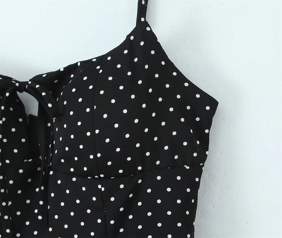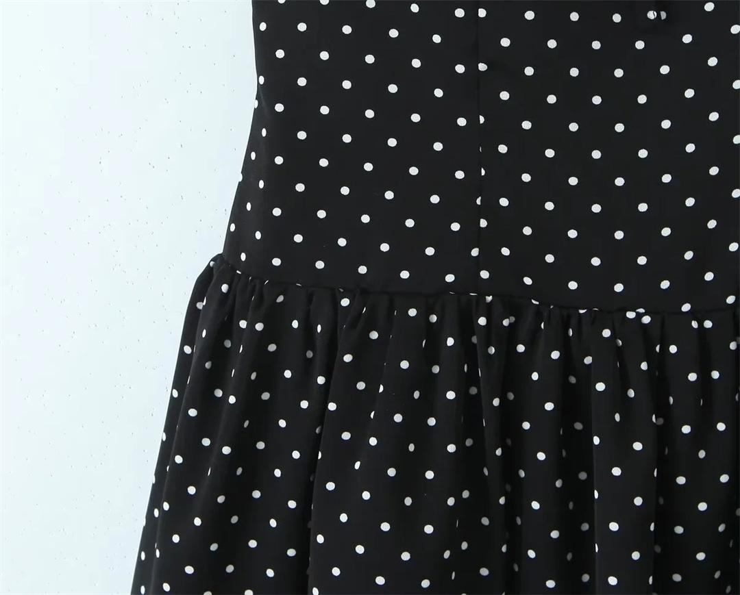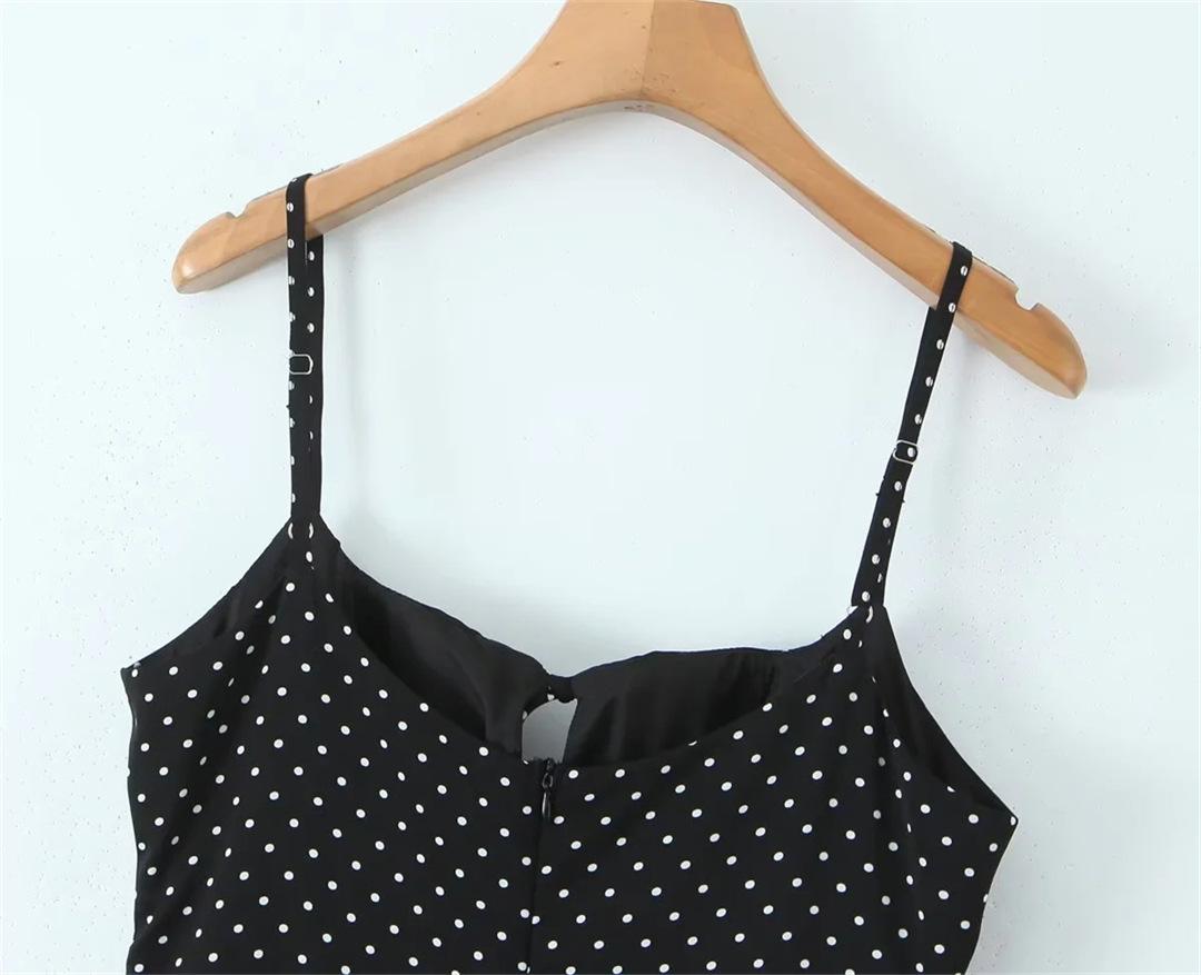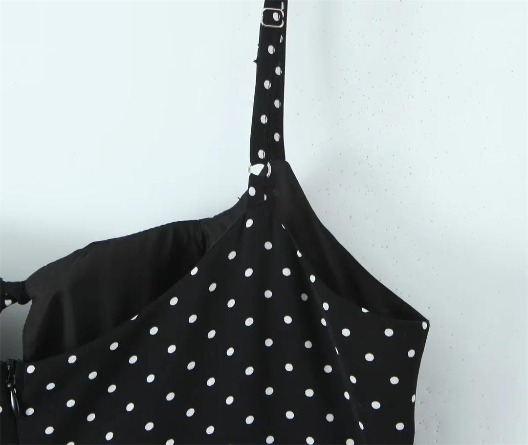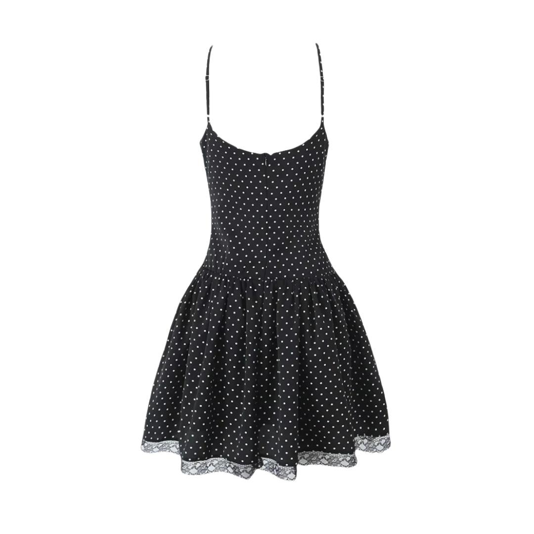Falda de Tirantes de Lunares Europea y Americana, Pura Lujuriosa Sexy Sexy Retro Diseño Slim Empalme Encaje Vestido Pomposo