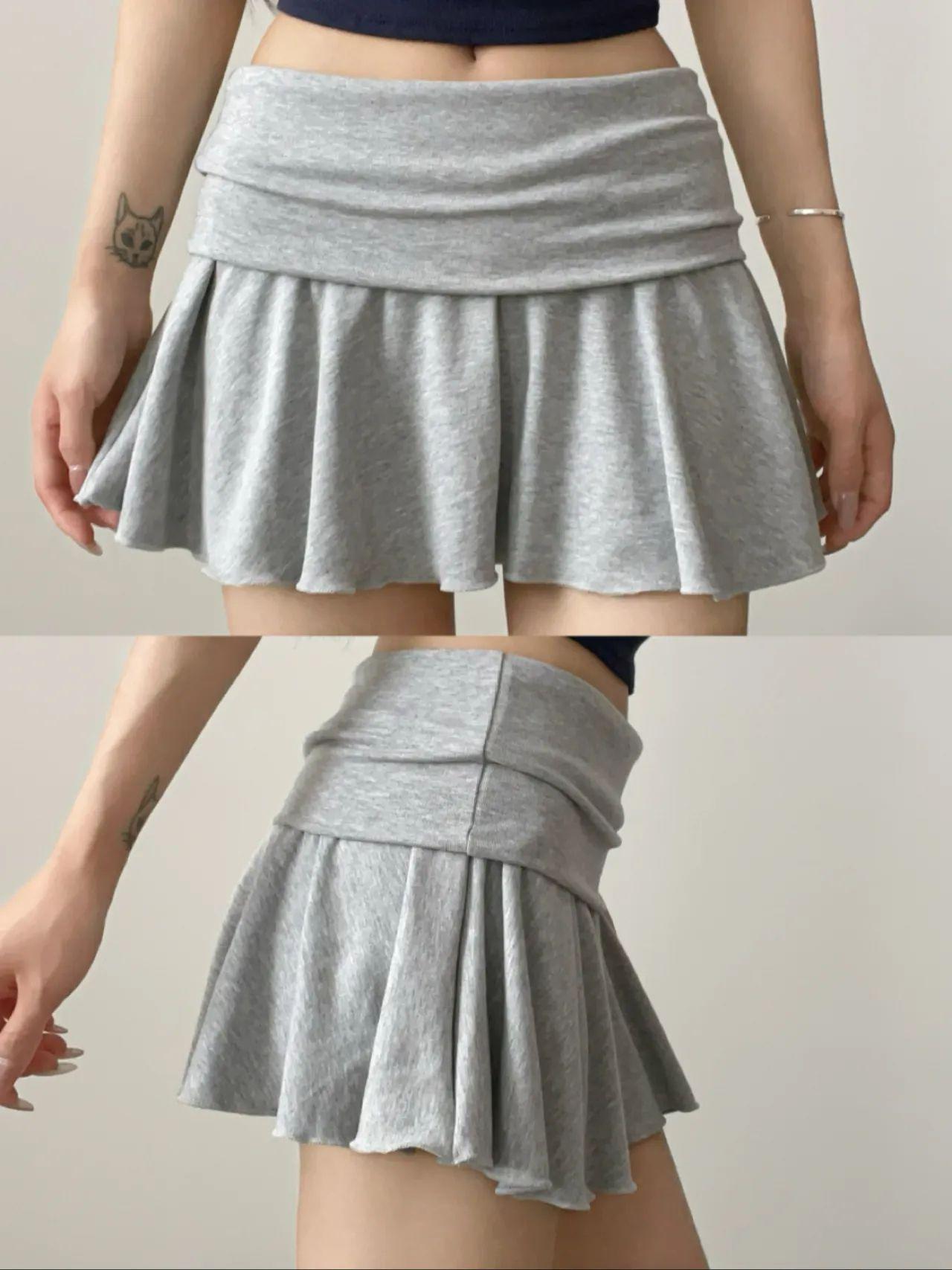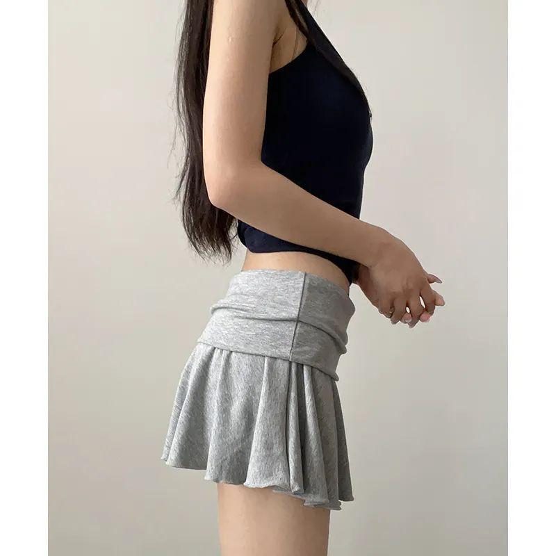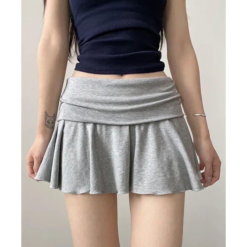 Falda de Tenis Turn-Over para Mujer 2025 Verano Nuevo Línea A Anti-Exposición Cubre-Caderas Versátil Color Puro Casual Falda Deportiva