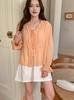 Camisa de punto de oreja de madera vintage francesa de tiro real con cuello en V delgada microtransparente de manga larga top ropa de mujer 2 colores
