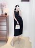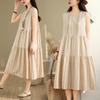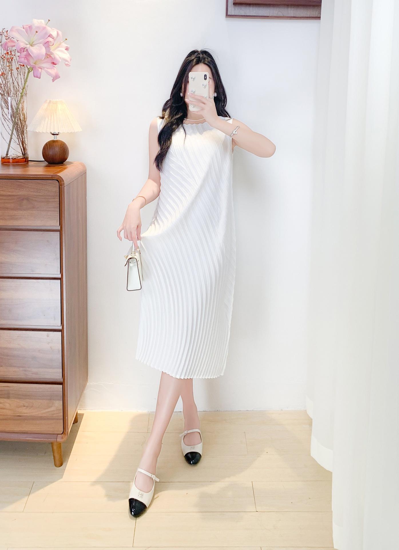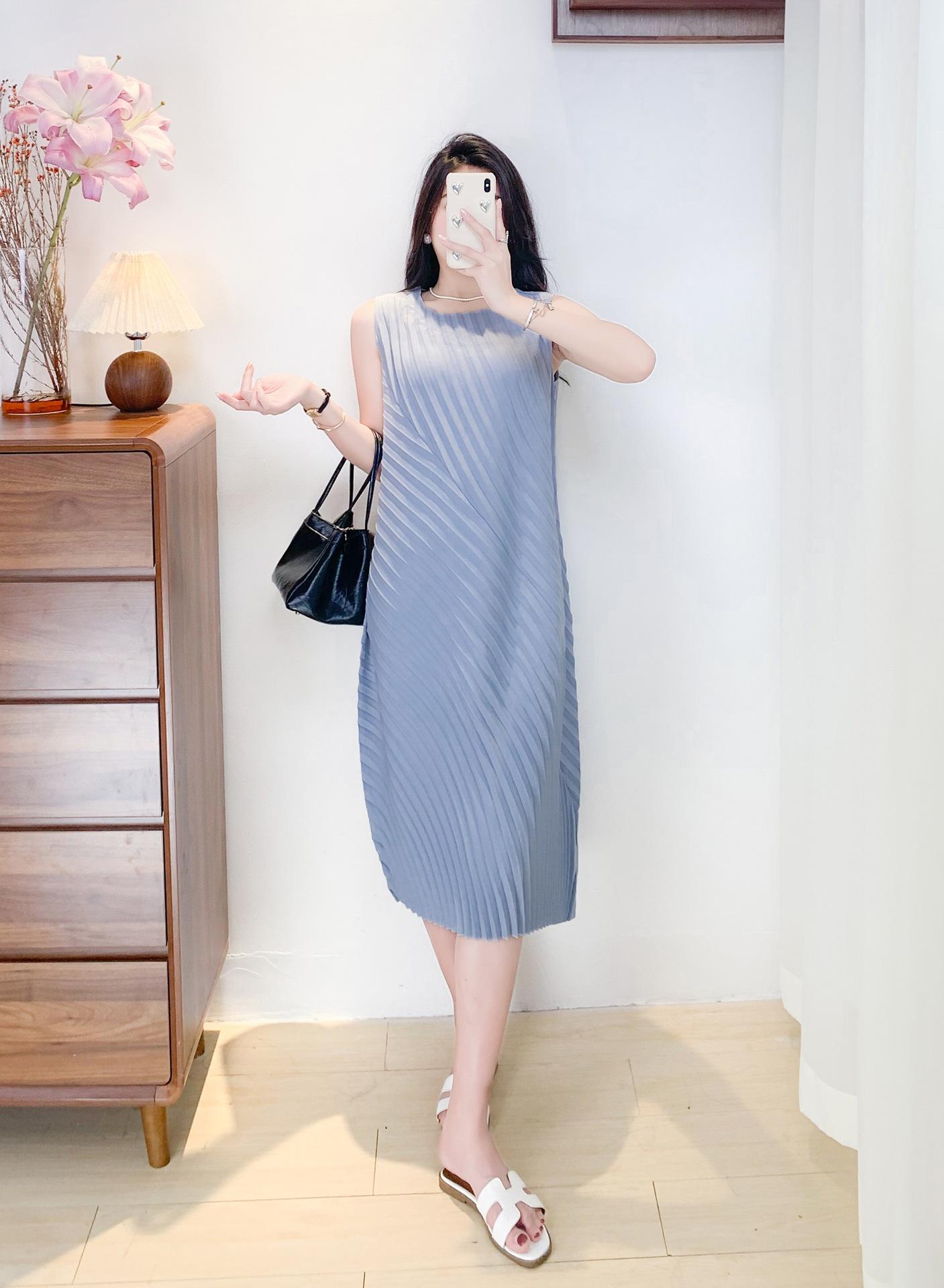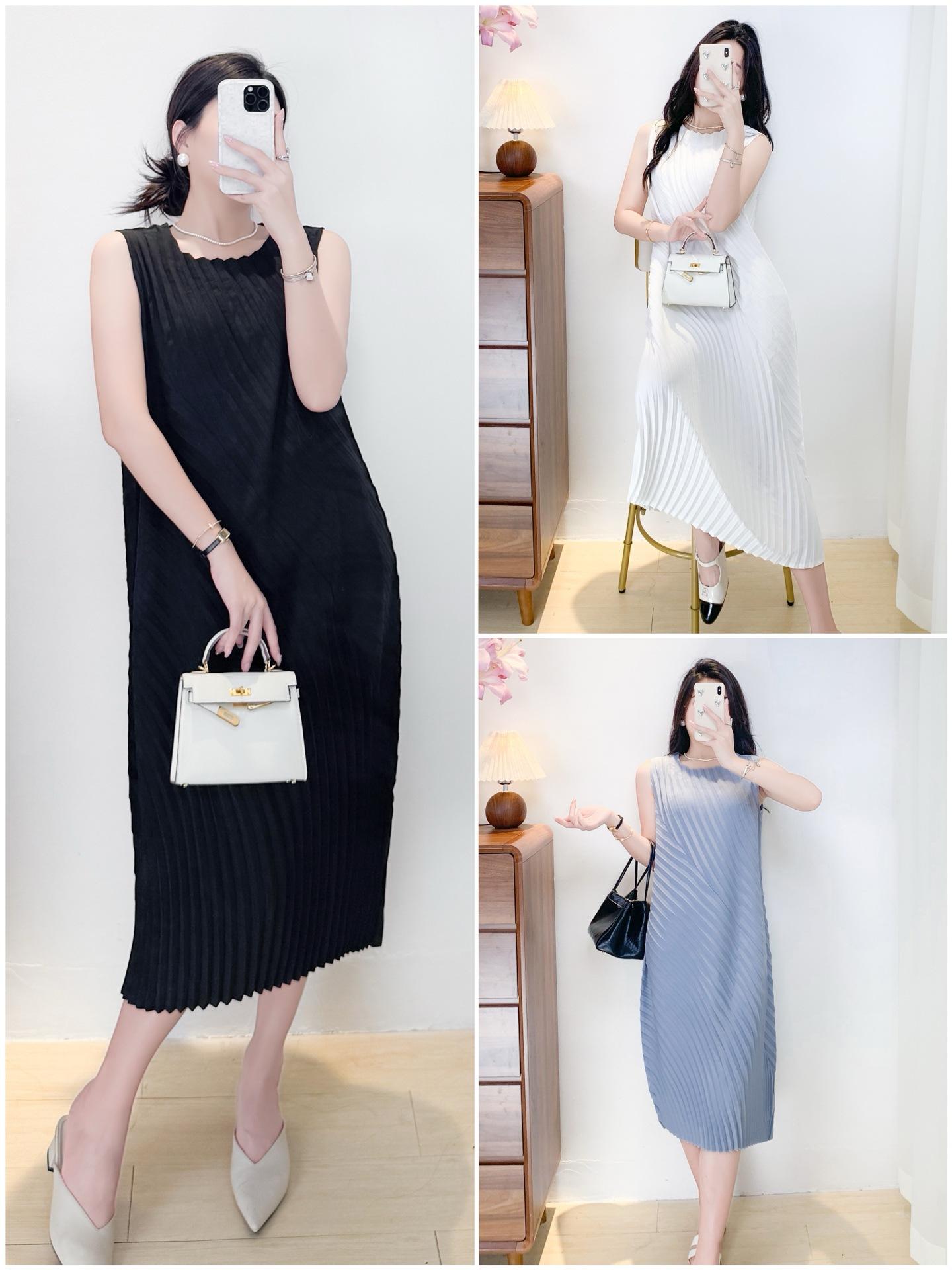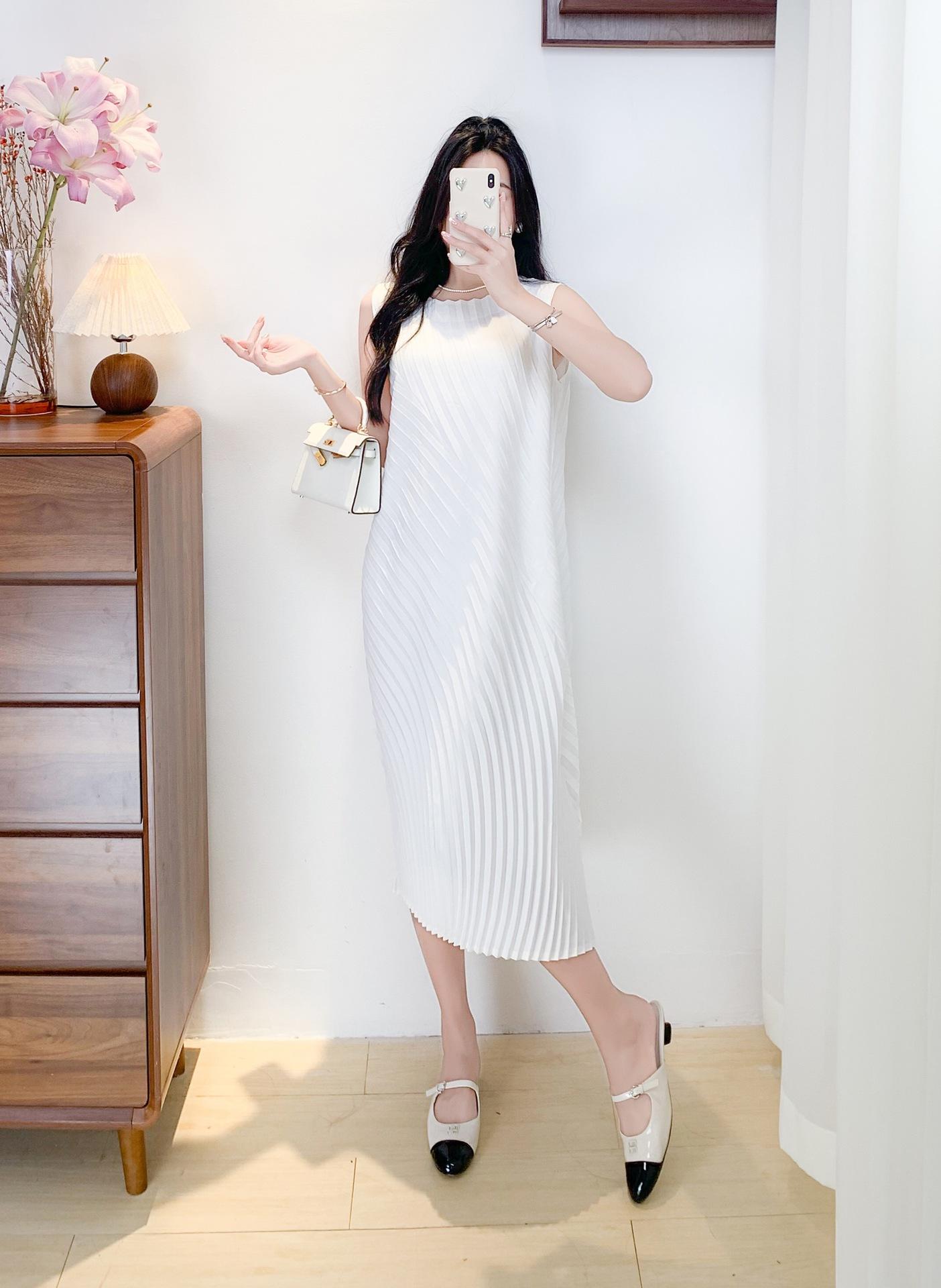 Vestido Plisado Miyake Sin Mangas Casual Cuello Redondo Suelto Elegante Verano Midi Elegante Delgado Elegante Falda Larga