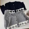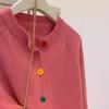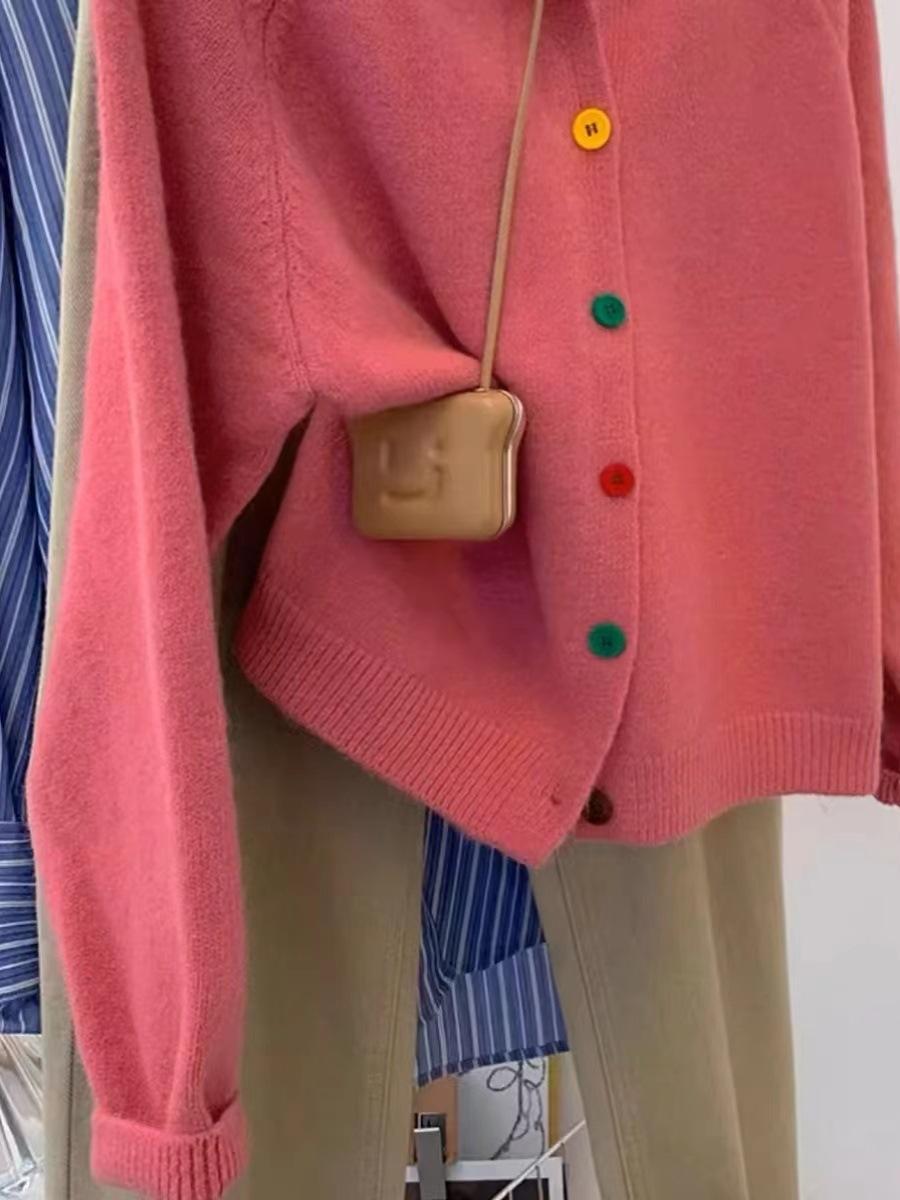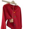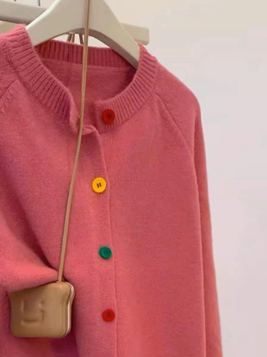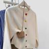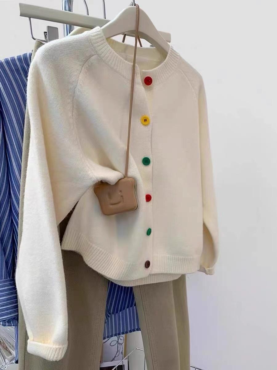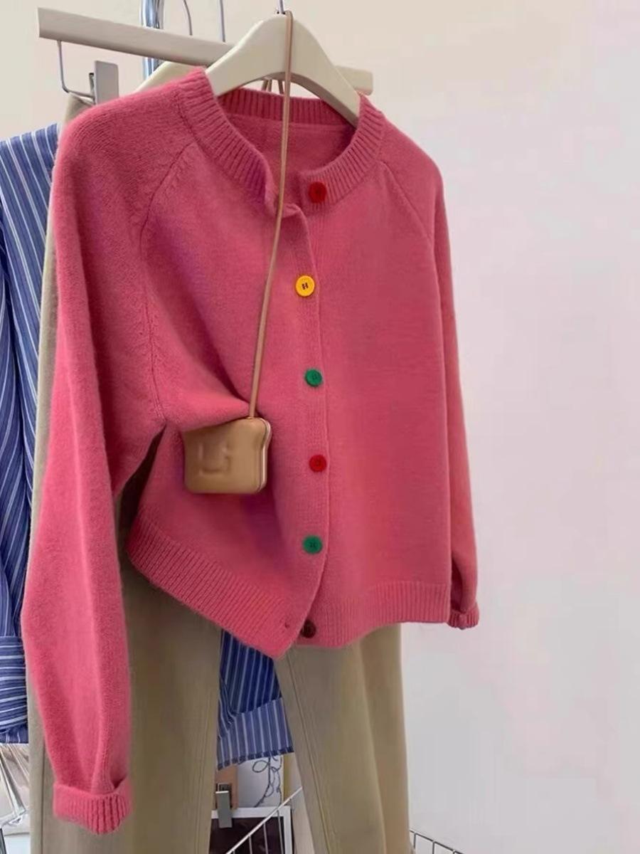 Abrigo Suéter de Botones de Color Retro Francés para Mujer Primavera y Otoño Cuello Redondo Top Corto Suave Cera Cárdigan de Punto Nicho