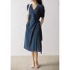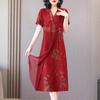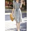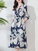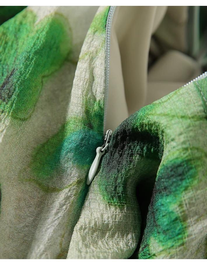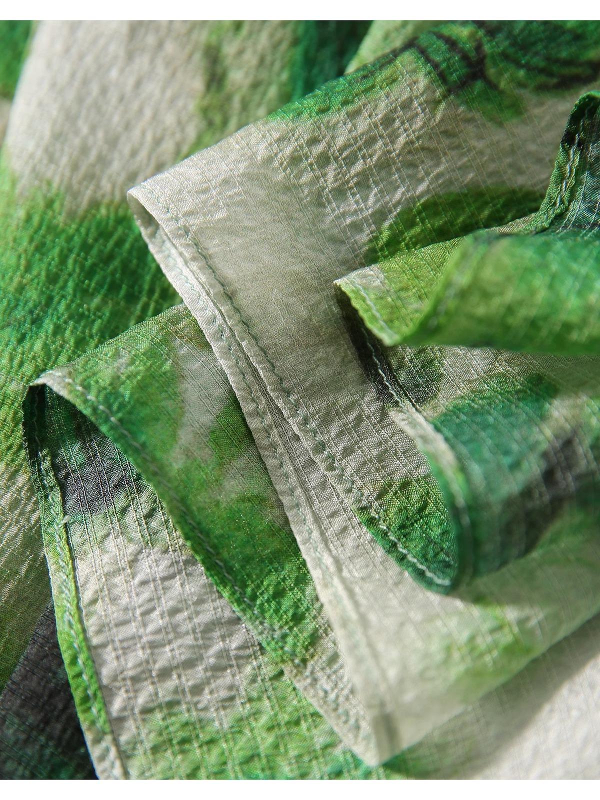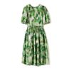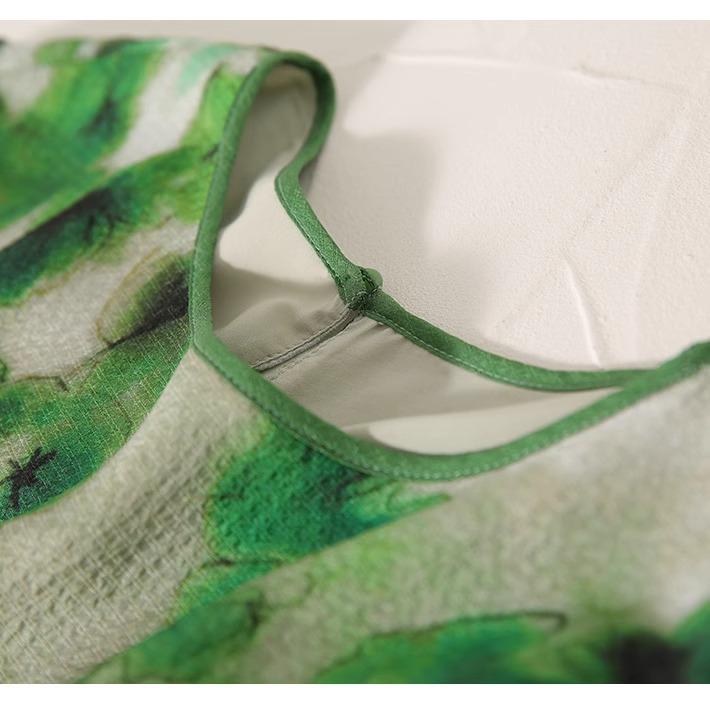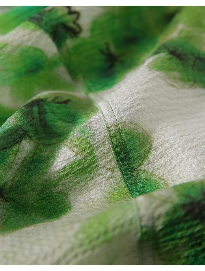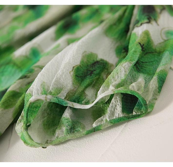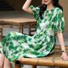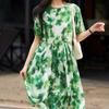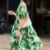 Vestido Romántico de Flores Estilo Vacacional de Alta Gama Seda de Morera Falda de Seda Floral Verde Cuello Redondo Verano de Mujer